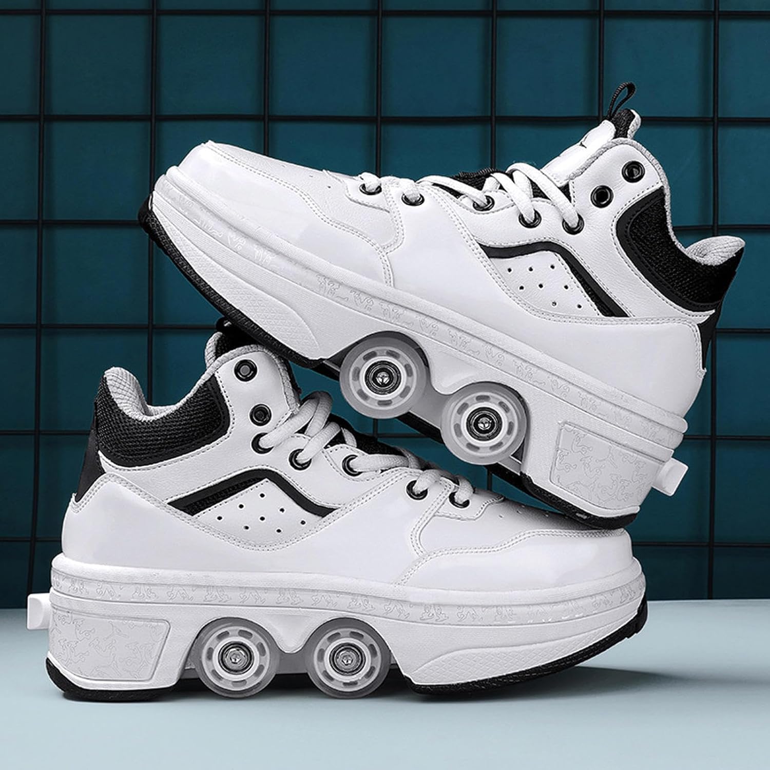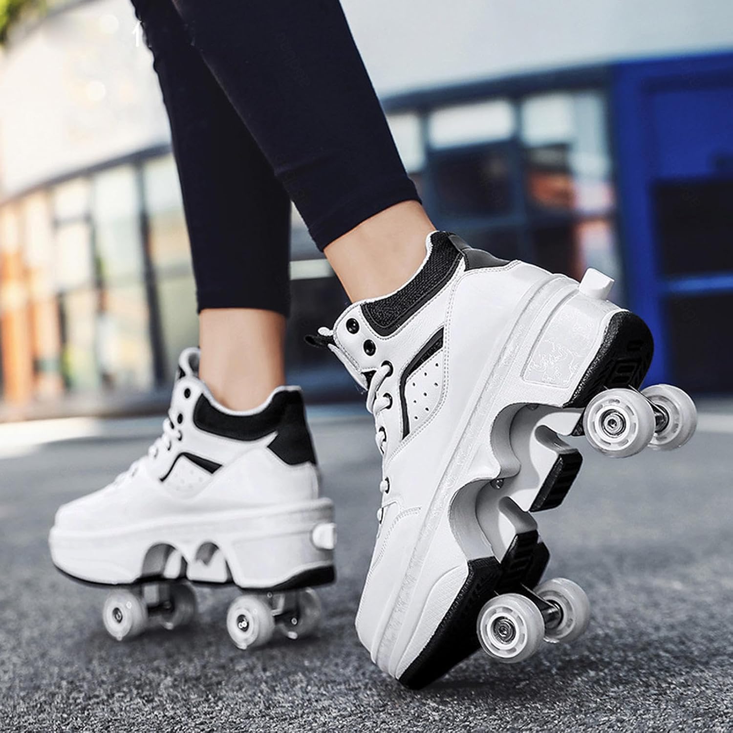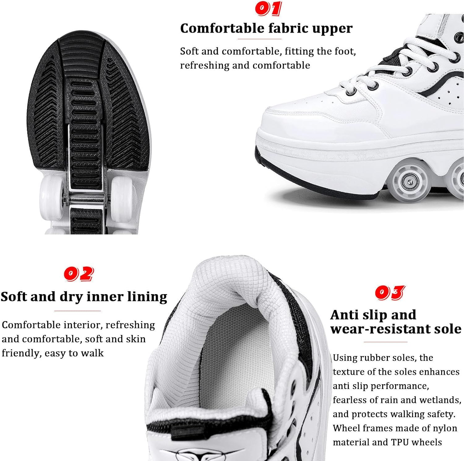 【Scarpe deformanti】 I pattini multiuso regolabili sono diversi dai tradizionali pattini a rotelle sul mercato. Le ruote nascoste possono essere nascoste come normali scarpe sportive, permettendoti di regolare i pattini a rotelle che possono non solo pattinare ma anche correre. 【Buon tessuto】 I pattini a rotelle sono realizzati con tessuti confortevoli di alta qualità e design di ventilazione. I pattini a rotelle hanno una forte funzione di dissipazione del sudore, morbidi e confortevoli, dissipazione del calore. 【Design a doppia fila】 I nostri pattini a rotelle a doppia fila sono più sicuri e più stabili dei pattini a rotelle dritti, ideali per principianti e donne o uomini che vogliono imparare facilmente il pattinaggio a rotelle. I pattini a rotelle sono dotati di staffe ad alta resistenza ispessite e temprate, che sono leggere, resistenti nella capacità portante e non facili da deformare. 【Ampie applicazioni】 I nostri pattini da ghiaccio sono disponibili in una varietà di stili e dimensioni, adatti per sport indoor e outdoor, aspetto elegante, comodi, traspiranti e resistenti. Puoi scegliere la taglia più adatta a te in base alla nostra tabella delle taglie, ottimo regalo per adulti, uomini, donne, bambini. 【Servizio post-vendita】 Trattiamo ogni cliente con prodotti di alta qualità e un servizio perfetto, puoi acquistare con fiducia. Se avete domande, contattateci. Risponderemo entro 24 ore.