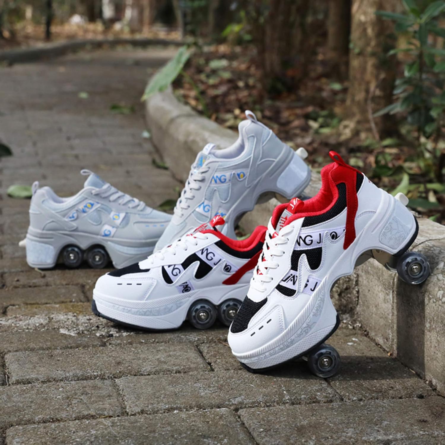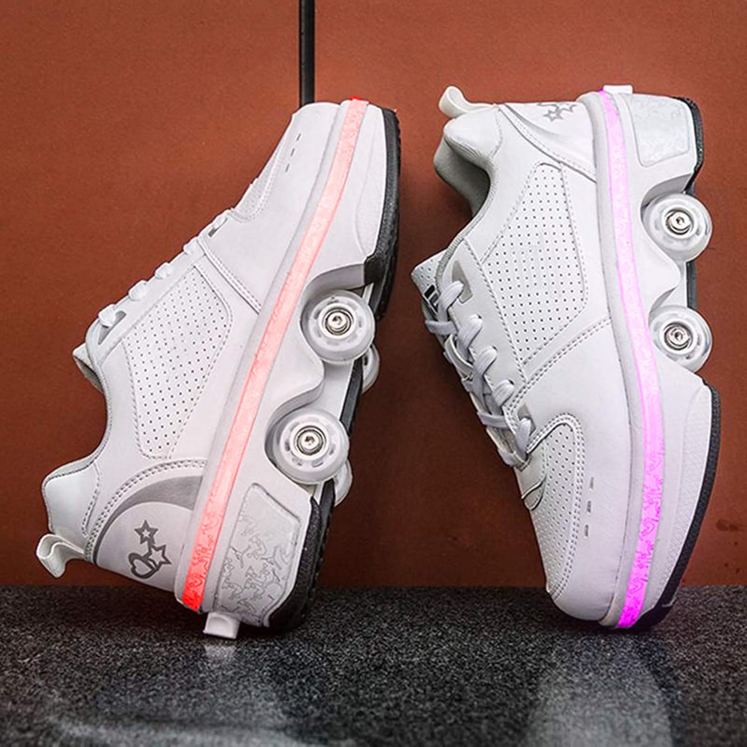✔ Materiale della scarpa: I pattini a rotelle multifunzionali e regolabili sono realizzati in microfibra, la suola in gomma e le ruote in pu. Prestiamo attenzione non solo alla capacità di carico delle ruote, ma anche alla selezione del materiale del materiale della tomaia per produrre pattini a rotelle di alta qualità. ✔ Pattini a rotelle due in uno: I pattini a rotelle multifunzionali regolabili differiscono dai pattini a rotelle convenzionali sul mercato. Le ruote nascoste possono essere come normali scarpe sportive dopo essersi nascoste, quindi puoi regolare i pattini a rotelle, i pattini non solo possono pattinare ma anche correre. ✔ Protezione del piede: I pattini a rotelle multifunzionali regolabili utilizzano lacci convenzionali. Come le scarpe da ginnastica, puoi regolare i lacci per una sensazione più confortevole. Tuttavia, ti consigliamo di allacciare i lacci delle scarpe quando pattini per garantire la tua sicurezza. ✔ Test meccanico: In base al design meccanico, il supporto del tallone offre una forza di smorzamento aggiuntiva e un elevato fattore di sicurezza, che è molto adatto per i principianti che pattinano. ✔ Design unico del pulsante invisibile per impedire l'apertura accidentale, c'è un pulsante sul retro della scarpa, premilo e la ruota si aprirà. Tenere premuto il pulsante, spingere la ruota nella piastra inferiore e rilasciarla
