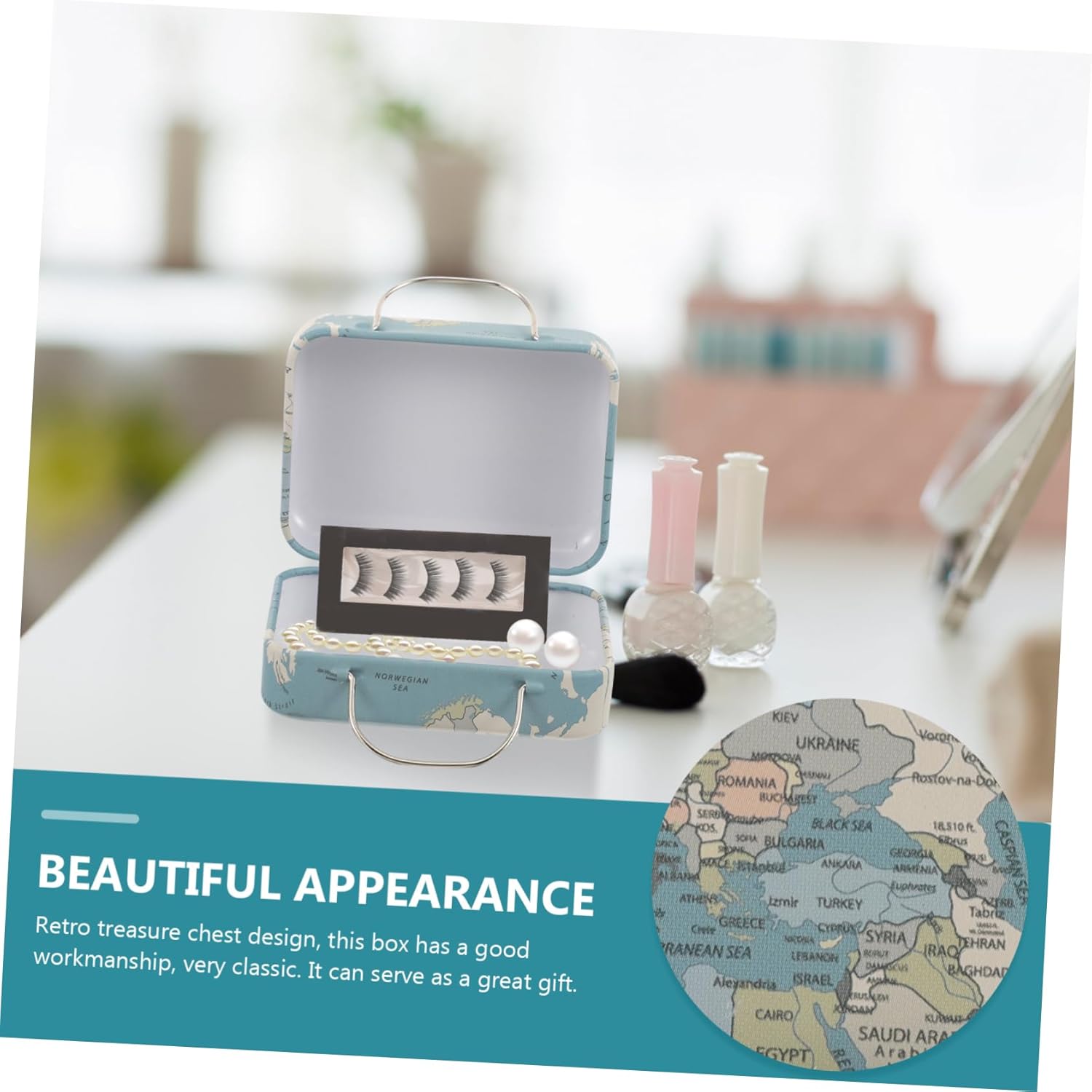 Custodia per ciglia finte: struttura semplice, facile da aprire o chiudere, ottiene un migliore effetto decorativo e offre una sensazione di applicazione soddisfacente. Valigia per ragazze - Questa scatola portaoggetti ha un design retrò chic e può essere posizionata sulla scrivania come decorazione. Custodia per ciglia finte: la lavorazione dettagliata e l'aspetto della mappa del mondo rendono questo portagioie popolare e pratico. Piccola valigia da viaggio: con capacità sufficiente, può essere utilizzata per riporre gioielli ma anche altri piccoli oggetti di cui hai bisogno. Mini valigia retrò: dimensioni compatte e peso leggero, occupa molto spazio sul tavolo o sulla cassettiera.