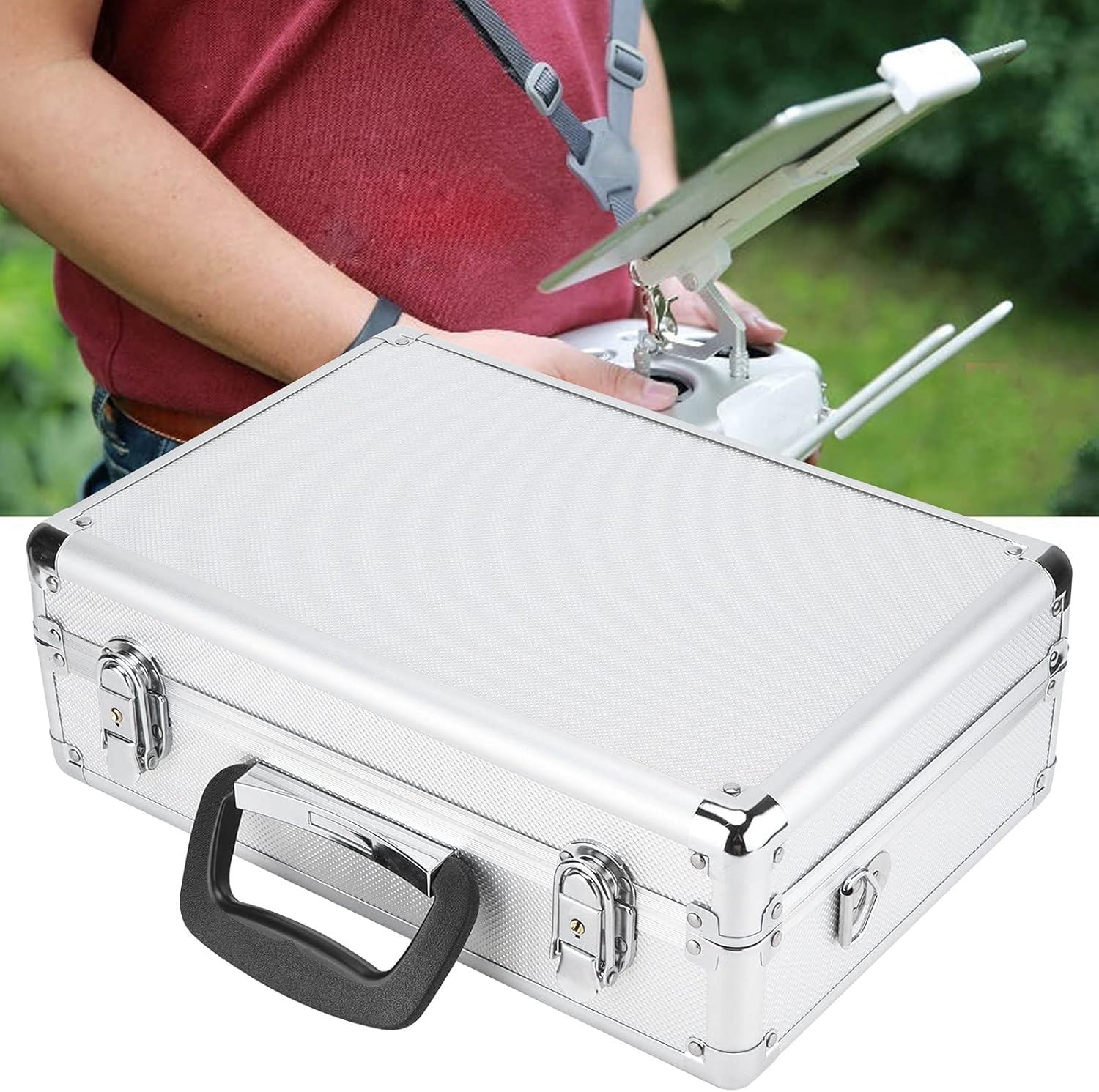 Protezione esterna: la scatola del telecomando presenta un guscio esterno in pelle di alluminio duro, foderato con una spugna di alta qualità per offrire una migliore protezione per il controller Interni spaziosi: con spazio riservato per 5 servi posizioni e 2 posizioni del ricevitore, la scatola ospita anche le batterie del trasmettitore e del ricevitore con ampio spazio per la conservazione Design robusto: il robusto guscio di alluminio è rivestito con strato protettivo, dotato di un chiavistello chiuso a blocchi e raccordi interni in schiuma ad alta densità per fissare l'attrezzatura Facile trasporto: questa scatola di stoccaggio include i piedi protettivi e le comode binari a maniglia, rendendolo ideale per il trasporto di attrezzature all'aperto senza preoccuparsi del danno Aspetto elegante: progettata con artigianato raffinato, questa scatola ha un aspetto bello ed elegante, adatto per l'uso con controller come JR, Futaba e Flysky