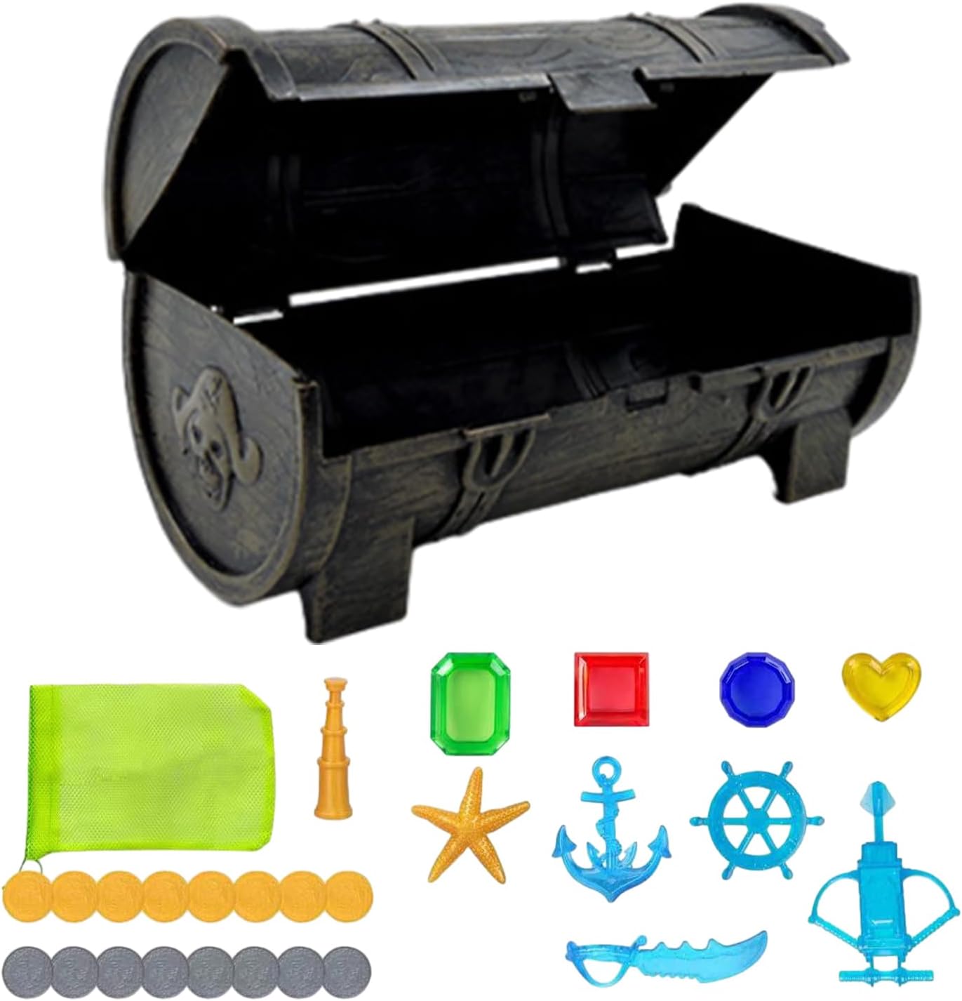 Ultima produzione: il nostro giocattolo Treasure Box è realizzato in materiale ABS, che garantisce una finitura durevole e robusta che non si rompe facilmente. La sua texture lucida contribuisce al suo fascino estetico, rendendola un'ottima aggiunta alla collezione di giocattoli di un bambino. Sorprese uniche: puoi scegliere tra diversi scrigni del tesoro, ognuno con una quantità diversa e una selezione di giocattoli. Sia che tu voglia una piccola scatola con alcune sorprese o una grande scatola con molti tesori, puoi trovare l'opzione perfetta per tuo figlio. Vieni in un ampio utilizzo: questo giocattolo Treasure Box è una scenografia versatile che raccoglie decorazioni o un regalo per bambini e adulti. La costruzione robusta e il design affidabile lo rendono perfetto anche per la memorizzazione di oggetti personali. Amerai l'aspetto realistico e il fattore divertente che questa scatola porta in ogni occasione. Gioco di ruolo come i pirati: esplora i sette mari con il nostro giocattolo Treasure Box! Mentre giochi a pirati di ruolo, puoi trovare nei nostri tesori che soddisfano le tue aspettative di tempo di gioco emozionante e interessante. Lascia libera la tua immaginazione e scopri più possibilità con ogni scoperta emozionante. Collabora con divertimento: aumenta la tua caccia al tesoro dei pirati con questo giocattolo Treasure Box progettato per un'avventura di gruppo. Perfetto per feste a tema pirata, compleanni e riunioni in piscina estiva. Sorprendi il tuo equipaggio con l'eccellente regalo di più intrattenimento!