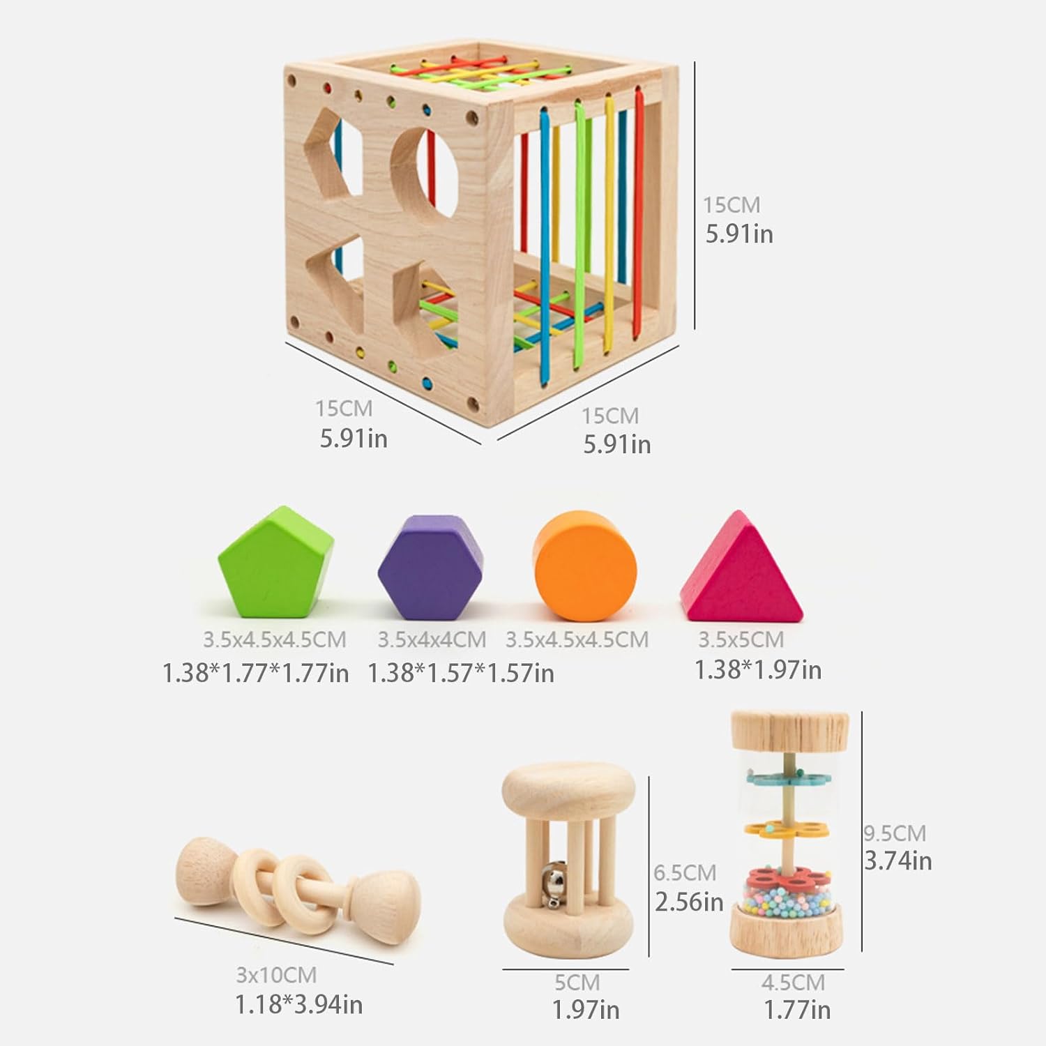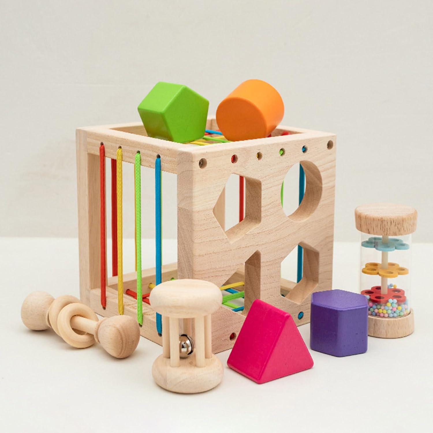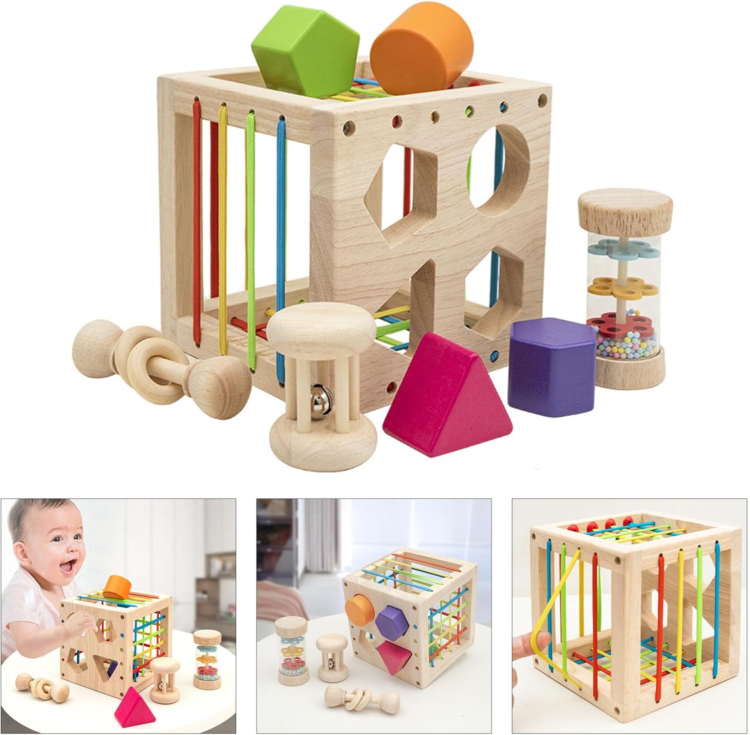 Il versatile giocattolo multifunzionale di ordinamento della forma è un must per i genitori che vogliono migliorare lo sviluppo cognitivo e fisico dei loro figli. Artigianato in legno, questo giocattolo presenta blocchi di forma diversa che stimolano l'immaginazione e la creatività del bambino. Adatto per bambini dai 18 mesi ai 3 anni, questa tavola è per i genitori che vogliono fornire ai loro bambini un giocattolo interattivo ed educativo. Semplice ma molto educativo, molto adatto per coltivare le capacità motorie dei bambini, le abilità motorie e la destrezza e iniziare a cogliere il concetto di dimensione. Con le sue strutture robuste e molteplici funzioni, il giocattolo fornirà sicuramente ore di divertimento e apprendimento per il tuo bambino.