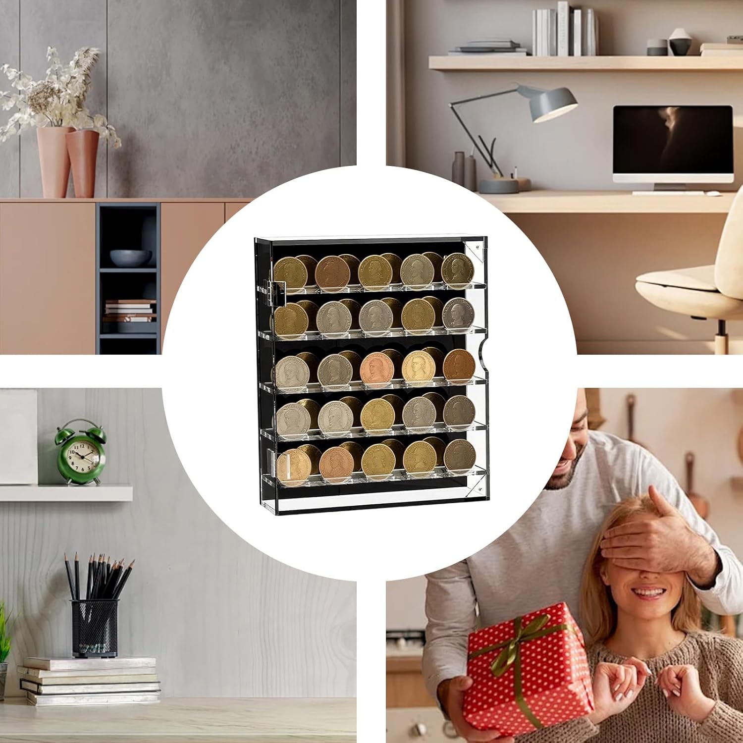 Presentazione pratica: la disposizione rotonda delle carte garantisce una chiara visualizzazione delle collezioni di badge, enfatizzando il senso dello stile pur mantenendo un'elevata visibilità degli oggetti esposti Barriera visiva completa: il design trasparente consente una visione illimitata con protezione a 360 gradi dalle influenze ambientali Sistema organizzativo flessibile: i divisori rimovibili con spazio di archiviazione a più livelli consentono di risparmiare spazio sulla scrivania in modo efficiente. Fornisce spazio organizzato per varie monete e carte in una disposizione sistematica. Protezione dal ribaltamento: la base antiscivolo stabile elimina il rischio di incidenti, fornisce un appoggio sicuro e un supporto affidabile per esporre sfide preziose. Presentazione adattabile: la sospensione integrata consente il montaggio a parete o la posizione su tavolo indipendente, si adatta facilmente a diversi stili di decorazione e offre disposizioni variabili per scopi espositivi in diversi spazi.