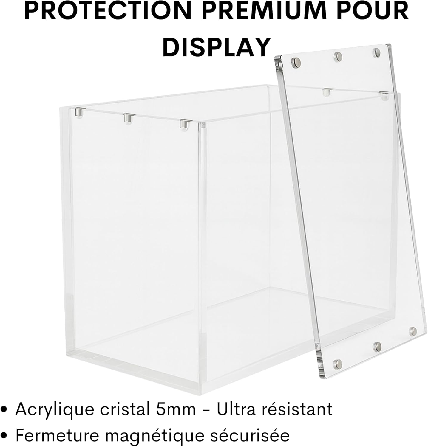 PROTEZIONE OPTIMALE: la scatola acrilica rigida da 5 mm offre un'eccellente protezione contro urti, graffi e polvere. TRASPARENZA CRISTALLINA: Vetrina espositiva premium che offre una visibilità perfetta dei tuoi Displays. CHIUSURA MAGNETICA: Chiusura discreta e affidabile per proteggere la tua collezione. DESIGN PRECISE: Dimensioni su misura per un perfetto adattamento ai Displays ufficiali. Qualità Premium: acrilico di alta qualità per robustezza e presentazione elegante.