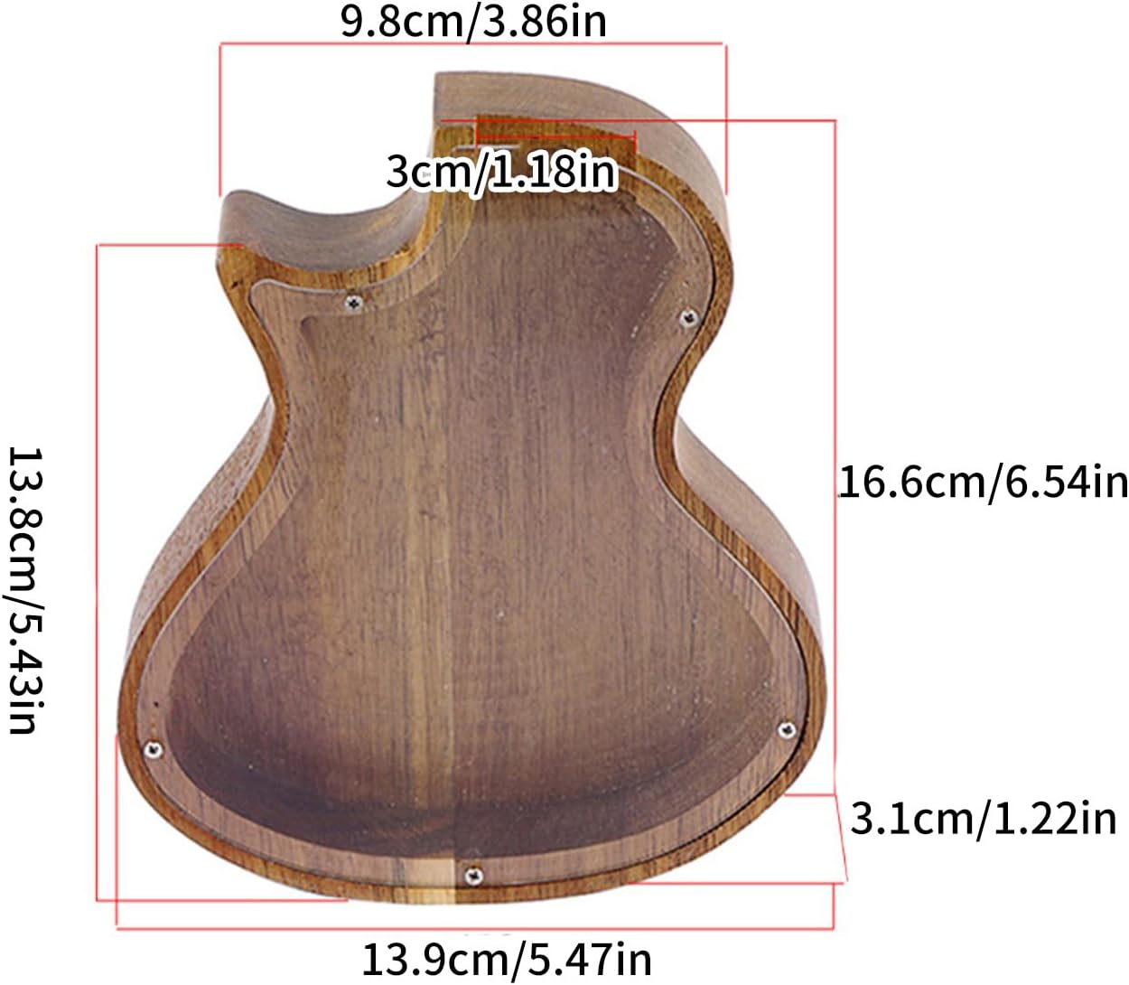 Il barattolo per monete presenta l'aspetto della chitarra, che è bello e interessante, possiede una buona funzione decorativa Adatto per casa, camera da letto, ufficio, soggiorno e così via, pratico e decorativo Realizzato principalmente in legno naturale, resistente all'usura e durevole, per un uso a lungo termine Il barattolo per monete con corpo trasparente consente agli utenti di conoscere il numero interno della moneta Le banche in legno si adattano a scrivania, comodino o libreria, possono essere un ottimo regalo per doccia, battesimo o compleanno