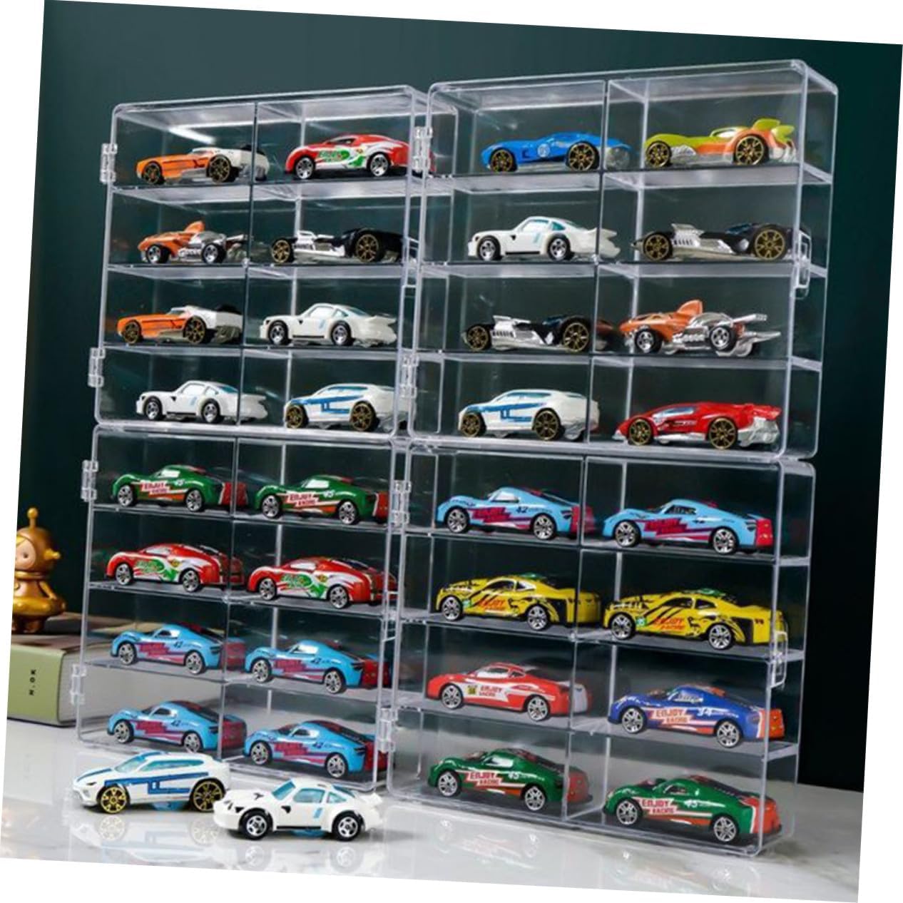 Vetrine per modelli: i bordi del fondo sono dotati cuscinetti antiscivolo, consentono alla vetrina stare in piedi sul desktop in stabile, non facile da far scivolare o girare, vetrina per modelli Vetrina per figurine: ti aiuterà a organizzare e mostrare i tuoi modelli per rendere desktop pulito e ordinato, esposizione modellini auto Espositore per auto: puoi anche usarlo per esporre i tuoi modelli preferiti come una scatola espositiva da collezione, pratica da usare, vetrina per modellini auto Vetrine: la scatola portaoggetti è realizzata in materiale qualità, liscio e facile da pulire, mini vetrina Vetrina: la vetrina è progettata con sufficiente per usi conservazione e visualizzazione, custodia per modellini auto pressofuse