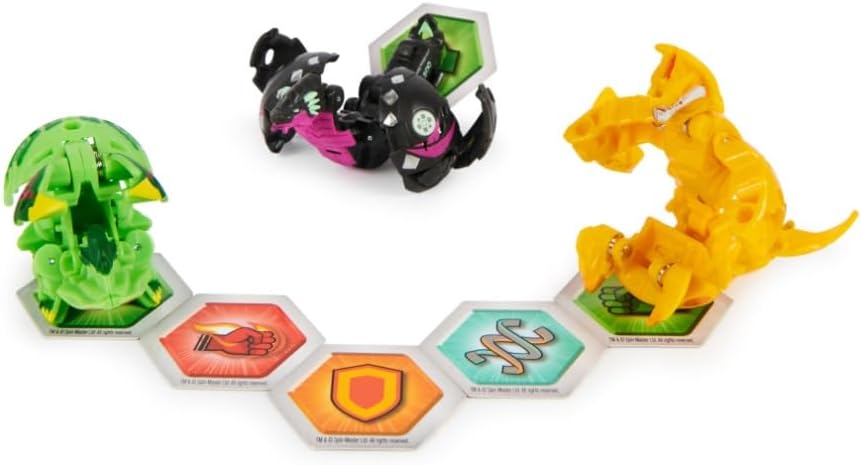 Bakugan Evolutions - Starter Pack: Serpillious Ultra, Colossus, Neo Dragonoid.. Il Bakugan Starter Pack include tutto ciò di cui hai bisogno per essere pronto all'azione. Aggiungi due epici Geogan Rising Bakugan, un temibile Ultra Bakugan, sei potenti BakuCores, oltre a carte Personaggio e Maestria collezionabili (tutte incluse) alla tua collezione. Fai rotolare il tuo Bakugan sui BakuCores inclusi per lanciare un'azione Baku saltante o scegli il tuo Bakugan Ultra per eseguire un'epica trasformazione in salto. Inoltre, utilizza la carta Portal inclusa per scoprire ancora più modi di giocare e guadagnare bonus. Riunendo personaggi nuovi e familiari, tutta la stagione 3 di Bakugan presenta dettagli e personaggi eccezionali. Età: da 6 anni in su