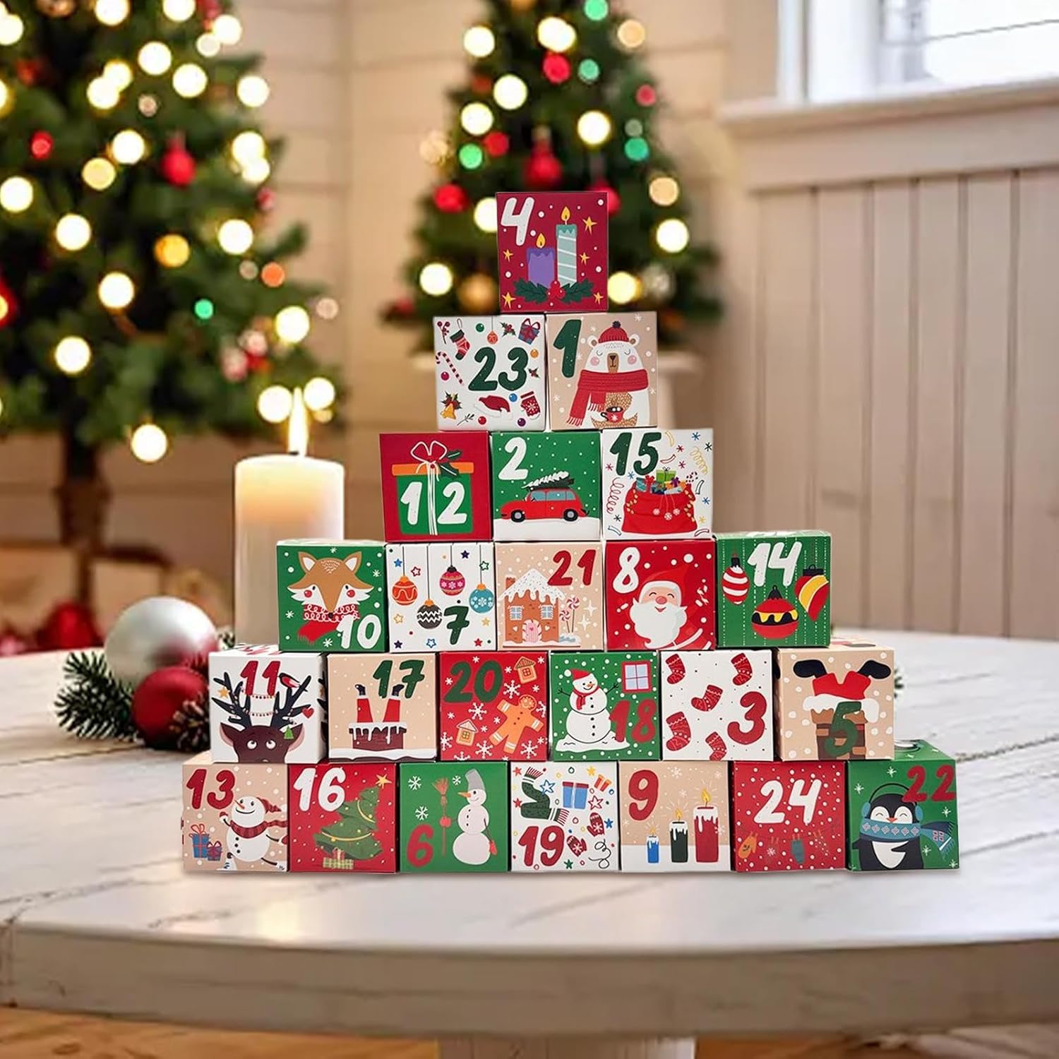 Design dai colori festivi: i colori natalizi e i motivi dettagliati in rilievo conferiscono a questa scatola per il conto alla rovescia un aspetto elegante che arricchisce composizioni regalo e vassoi da dessert con eleganti accenti di fiocco e diffonde uno scintillio festivo. Utilizzo spensierato: grazie ai materiali adatti agli alimenti e alla consistenza uniforme, il calendario per il conto alla rovescia di Natale offre una superficie sicura per le attività dei bambini e le idee regalo con un'esperienza utente rilassante a tutto tondo. Compatibilità versatile: la struttura quadrata mantiene le cartoline e le decorazioni dell'albero di Natale organizzate, funge da elemento decorativo da esposizione o regalo stagionale, con funzione impilabile e riutilizzabile per le celebrazioni natalizie annuali Organizzazione flessibile: divisori regolabili e zone ermetiche aiutano a conservare ordinatamente i dolci in scomparti a più livelli, ideali per feste e incontri sociali Facile da usare e compatta: la scatola del calendario dell'Avvento leggera e portatile con chiusura magnetica intuitiva e funzionamento semplice è ottimizzata per gli snack e offre una comodità unica per presentazioni di Natale o uso privato