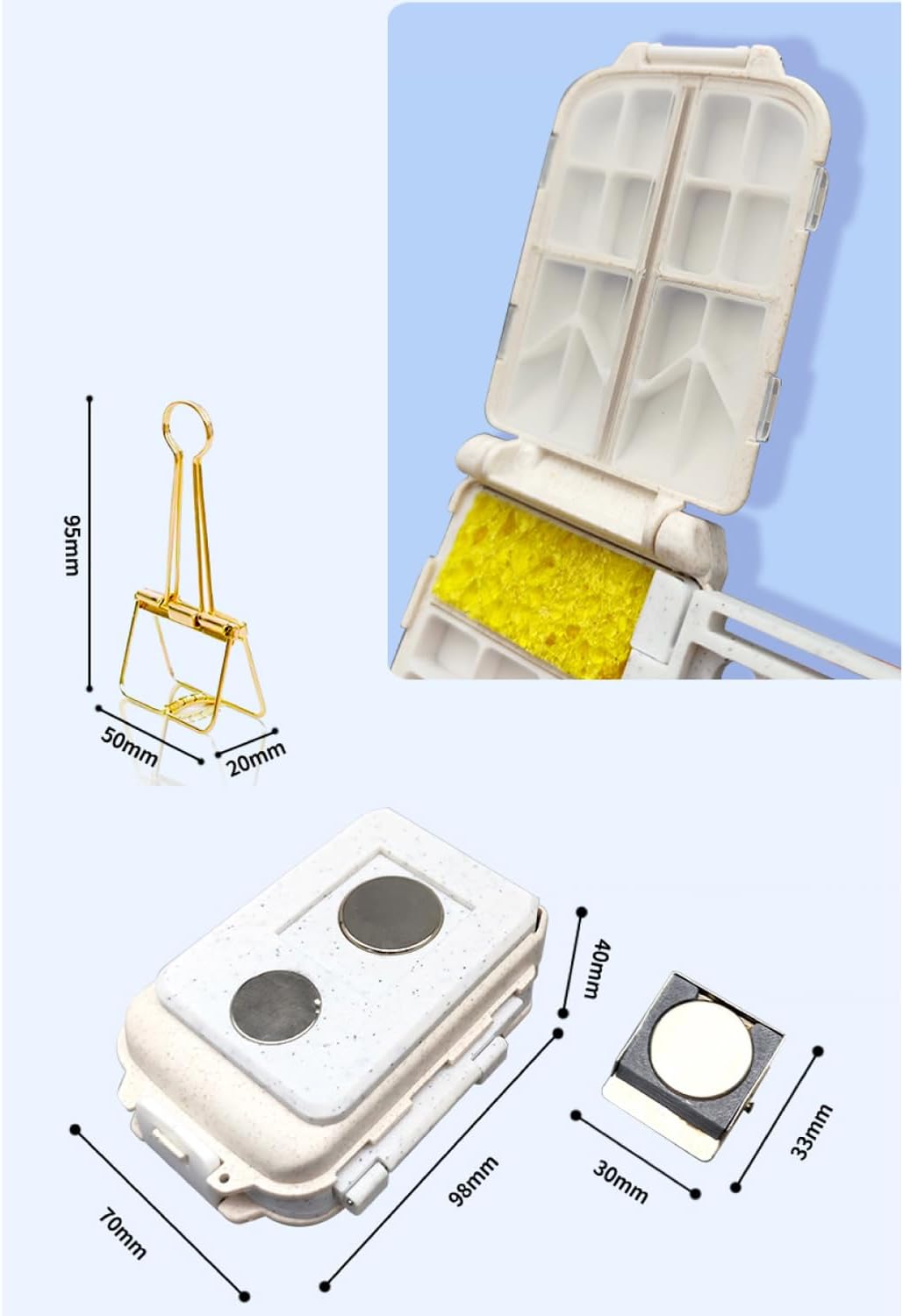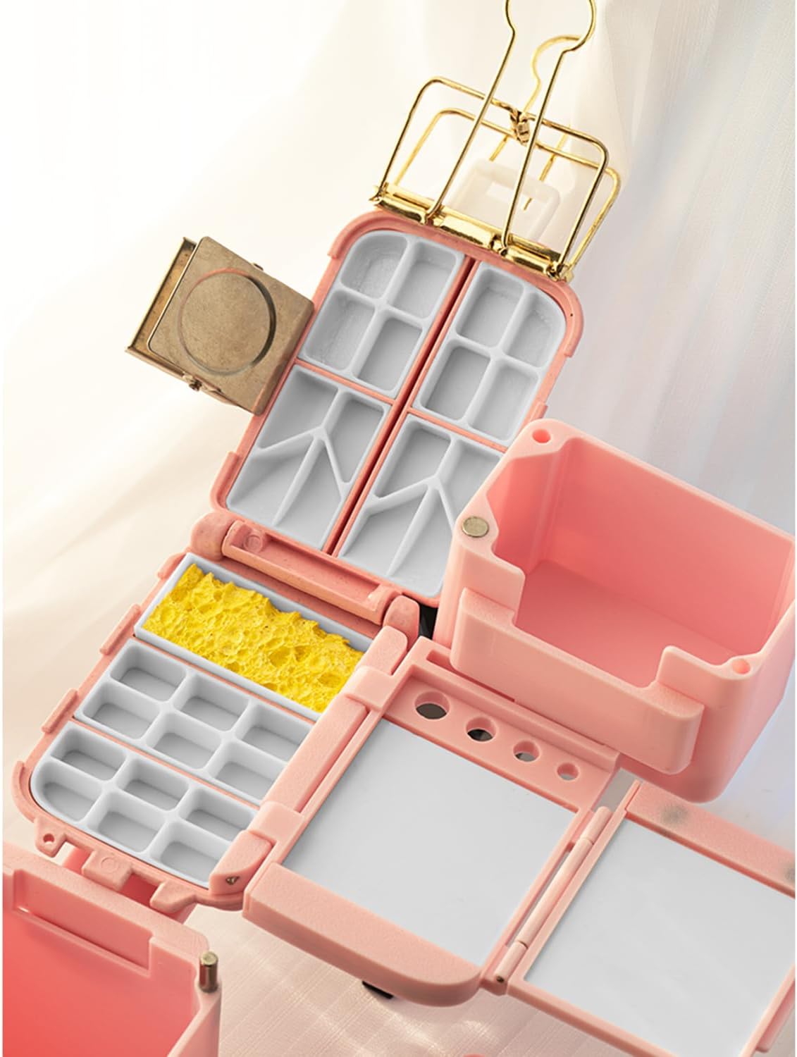 [ORGANIZZAZIONE PERFETTA]: Caratterizzata da un design integrato, questa custodia include una tavolozza, un portapenne, un secchiello, una spugna e colori. Non c'è bisogno di portare con sé accessori extra: apri e inizia a dipingere, chiudi e vai. [CODICE COLORI PROFESSIONALE]: Realizzata in PETG spesso di alta qualità con tecnologia di stampa 3D, vanta una struttura robusta, resistente alla pressione e all'usura, che la rende perfetta anche per i viaggi più impegnativi. Il coperchio si chiude ermeticamente, rallentando efficacemente l'evaporazione e trattenendo l'umidità per un'idratazione duratura, garantendo che i colori siano umidi e pronti all'uso ogni volta che apri la custodia. [SCOMPARTI PER COLORI MULTIFORMATO]: 34 scomparti per colori progettati meticolosamente e individualmente, ognuno con dimensioni strategicamente proporzionate, possono contenere sia colori grandi che piccoli, perfetti per conservare sia i pigmenti di uso frequente che quelli speciali più preziosi. L'ampia area di miscelazione e gli scomparti chiaramente definiti impediscono la contaminazione incrociata, rendendo la miscelazione un gioco da ragazzi e ispirando infinite possibilità creative. [CLIP UNIVERSALE]: La custodia è dotata di una clip robusta, universale e regolabile, compatibile con la maggior parte delle tavole da disegno, album da disegno e persino libri. La forte forza di serraggio garantisce una presa stabile e stabile, assicurando che la tavolozza rimanga saldamente in posizione mentre dipingi, fornendo una piattaforma stabile e affidabile per il tuo lavoro. [VIAGGIO LEGGERO]: Progettato per la creatività in movimento, il suo design leggero e pieghevole lo rende compatto e si adatta facilmente a uno zaino. Che tu stia facendo un'escursione in montagna, esplorando la città o viaggiando all'estero, è il tuo "studio portatile" definitivo, che ti assicura di non perdere mai un momento di paesaggi mozzafiato o di ispirazione.