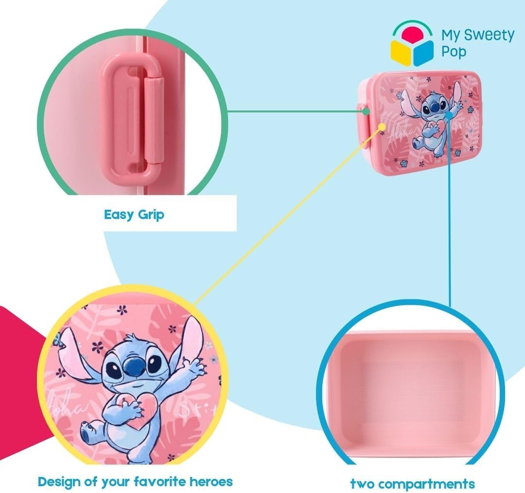 COMPOSIZIONE: Scatola per merenda rosa con effigie di Stitch. Questo è il pranzo box adatto per i bambini dell'asilo. La scatola per il pranzo è chiusa ermeticamente e facile da aprire sui lati. Dimensioni: 16 x 13 x 5 cm. LEGGERO: la scatola per bambini è facile da pulire, è realizzata in plastica resistente. La scatola per bambini è perfetta per i bambini dell'asilo o per le vacanze. AGE RACCOMANDA: Il pranzo box è perfetto per i bambini dai 3 anni in su. Questa adorabile scatola Stitch è un regalo perfetto per i bambini.