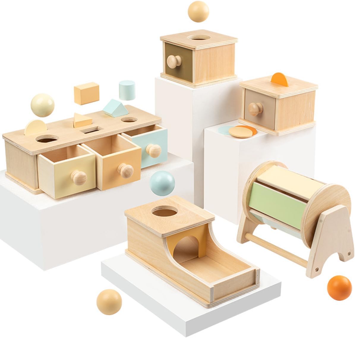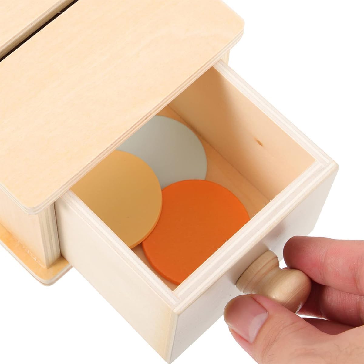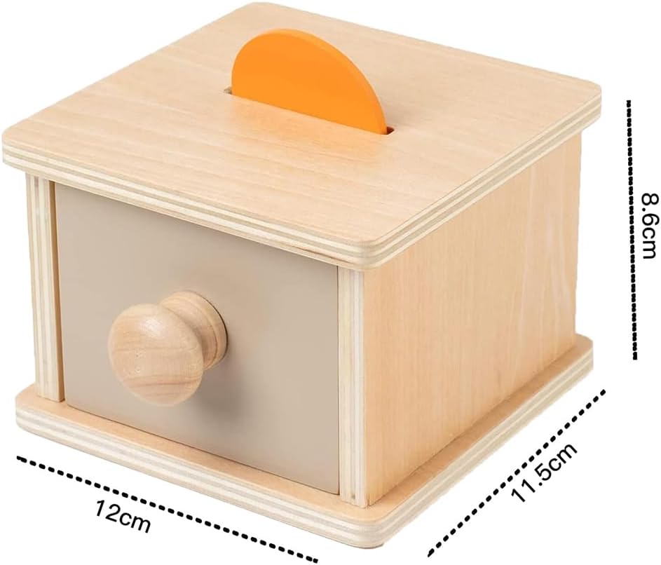Apprendimento e intrattenimento: giocando con questa scatola, i neonati e i bambini piccoli non solo impareranno la permanenza degli oggetti, ma svilupperanno e miglioreranno anche le capacità motorie fini e la coordinazione occhio-mano. Materiale: realizzato in compensato, senza angoli, liscio e senza sbavature. Applicato con coloranti a base d'acqua, senza colla, sicuro Montessori Toys: Great Montessori Toy. Questo classico materiale Montessori può essere introdotto ai bambini non appena riescono a stare seduti in modo indipendente ed è una naturale evoluzione da esso. Giocattoli per le abilità motorie fini: prendi la moneta o la pallina dalla scatola e mettila nella fessura. Chiedi loro dove si trova la moneta, apri la scatola e mostra di nuovo la moneta o la pallina, dicendo: eccola. Giocattolo educativo: adatto a qualsiasi classe Montessori, a casa o a scuola, questo è un ottimo strumento Montessori per insegnare la permanenza degli oggetti sensoriali, la coordinazione occhio-mano e la relazione causa-effetto. (Il prodotto è destinato a persone dai 14 anni in su.)