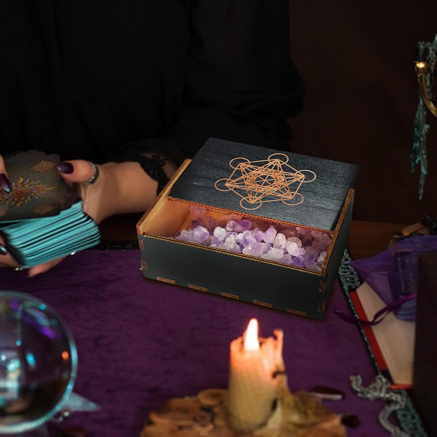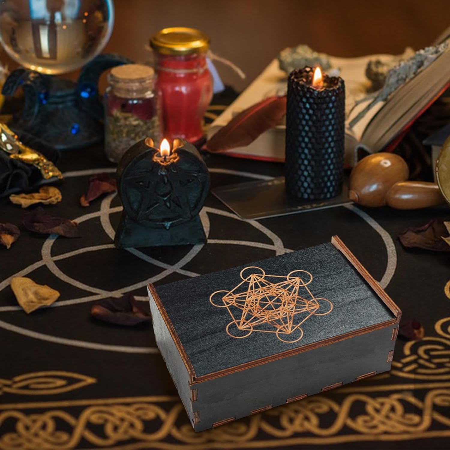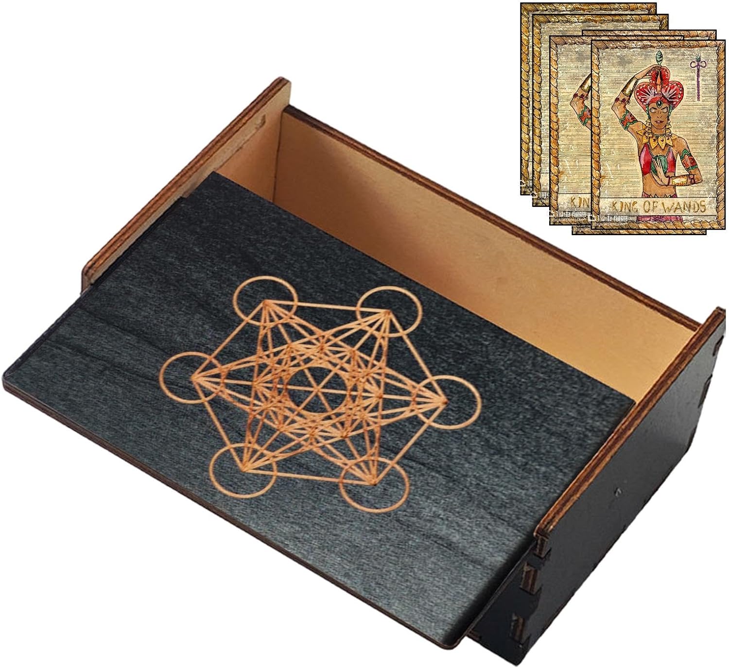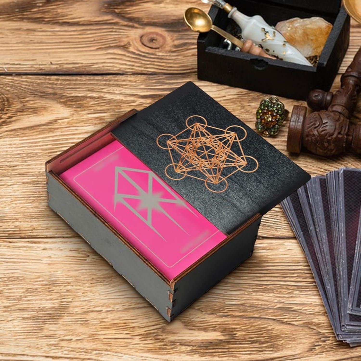 Custode del tesoro rustico: la nostra scatola per tarocchi in legno presenta un'estetica vintage e antica, perfetta per esporre la tua collezione in modo elegante e affascinante. Conservazione di lunga durata: realizzata in legno robusto, la nostra scatola per tarocchi offre una protezione affidabile per le tue carte. La sua struttura robusta assicura che le tue carte rimangano intatte e inalterate per anni. Trasporto senza sforzo: trasportare le tue carte dei tarocchi è senza problemi con la nostra scatola in legno per tarocchi. Il suo design piccolo e leggero lo rende facile da riporre e rimuovere, garantendo una facile accessibilità per le letture in movimento. Uso versatile: la nostra scatola in legno per tarocchi offre una vasta gamma di possibilità di archiviazione non solo per carte dei tarocchi, ma anche per gioielli e bigiotteria. Mantieni i tuoi strumenti spirituali organizzati e in un luogo! Tesoro regalo: mantieni i tuoi preziosi mazzi di tarocchi al sicuro in questa scatola di legno artigianale. Perfetto per regalare vacanze, compleanni o qualsiasi occasione, questo pezzo decorativo unico migliora il rituale quotidiano della lettura dei tarocchi.