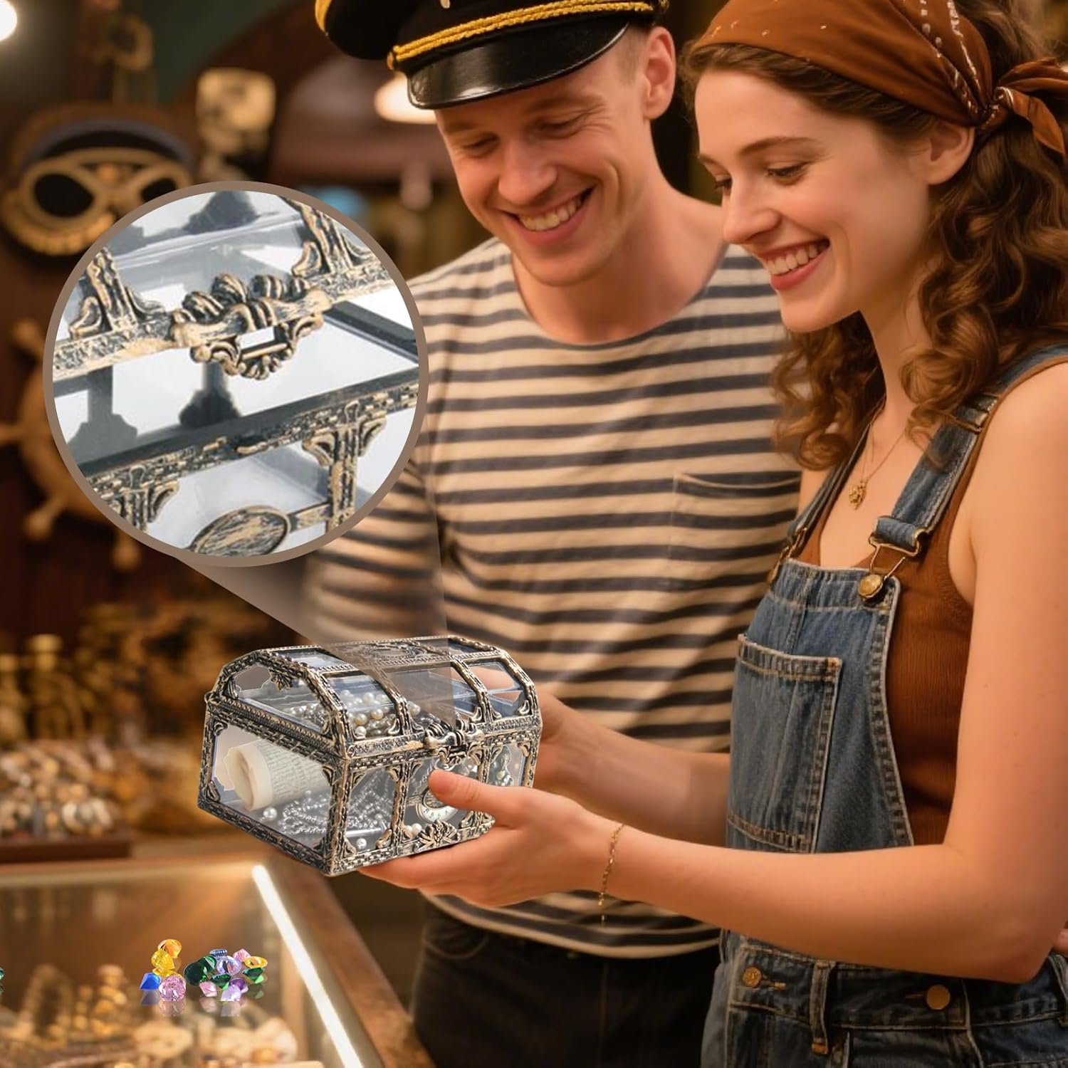 Visibilità Immediata Contenuti: Grazie al design trasparente e visibile, la scatola giocattolo garantisce accesso rapido a monete, cristalli e oggetti da collezione, mantenendo tutto facilmente identificabile e organizzato senza sforzo Stile Pirata Decorativo: Aggiunge personalità e fascino come pezzo decorativo con un tema pirata elegante, creando atmosfere divertenti in qualsiasi spazio attraverso dettagli di design giocosi ma sofisticati ispirati all'universo piratesco Durata prolungata: Progettata con materiale ABS robusto che previene deformazioni e protegge efficacemente i gioielli, garantendo un utilizzo duraturo senza comprometterne l'integrità Praticità e Leggerezza: La leggerezza e le dimensioni compatte di questa scatola dei tesori mantengono piccoli oggetti ordinati durante gli spostamenti, migliorando l'esperienza di viaggio grazie alla facilità d'uso e alla portabilità quotidiana Organizzatore Pratico: Unità di archiviazione multiuso capace di contenere monete di , ciondoli, materiale da cancelleria e oltre, garantendo un'organizzazione in spazi residenziali o contesti lavorativi con accessibilità immediata