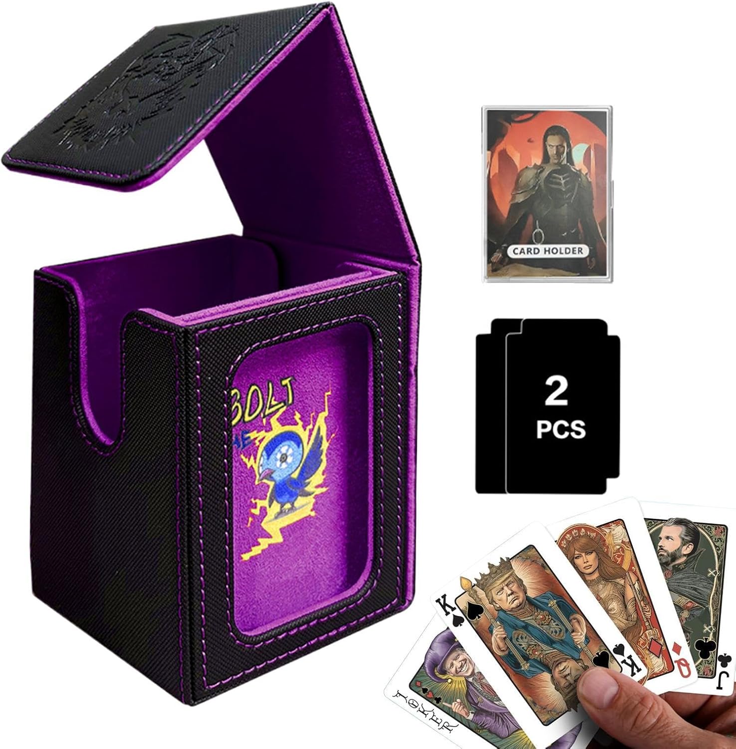 Design accattivante: con una superficie dal design artistico, questa custodia per ponte protegge i tuoi oggetti da collezione presentandoli in modo esteticamente gradevole. La perfetta combinazione di stile e funzionalità per i collezionisti più esigenti che desiderano tenere al sicuro le loro preziose carte e mostrarle in modo impressionante. Spazio generoso: con protezione antigraffio e ampia capacità di archiviazione per più di 100 carte, questo portamazzo semplifica l'organizzazione quotidiana ed è progettato per essere adatto ai viaggi. Offre una soluzione affidabile per proteggere le tue carte durante il trasporto o la conservazione a lungo termine. Usabilità flessibile: il design accurato dell'apertura garantisce un accesso semplice alle carte fornendo allo stesso tempo protezione. Maneggevolezza ottimizzata per serate di gioco o attività all'aperto, completata da base antiscivolo e chiusure sicure per una maggiore tranquillità. Conservazione delle carte a lungo termine: grazie alla combinazione di coperchio rinforzato e imbottitura interna, questa scatola protegge le carte da gioco dall'usura. Garantisce che le tue carte saranno mantenute in ottime condizioni sia al momento dell'emissione che quando vengono conservate per un uso futuro. Durevole e sicuro: questa scatola per mazzi di carte offre una protezione a lungo termine grazie a materiali delicati sulla pelle con una sensazione morbida e una formulazione inodore, protegge in modo affidabile le carte collezionabili da eventuali danni e mantiene i mazzi perfettamente organizzati sia durante il trasporto che durante la presentazione