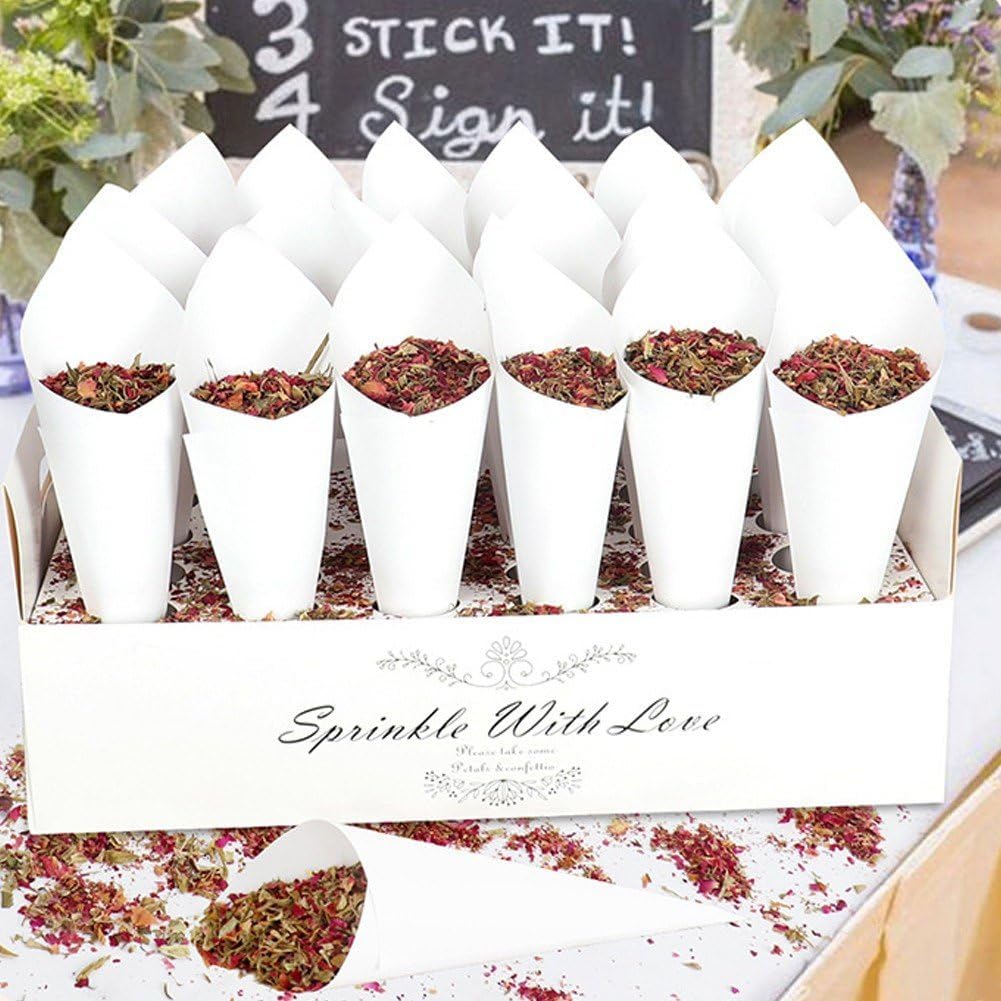 Design stabile: la scatola porta coni di coriandoli ha un design affidabile e stabile con una struttura a due strati che fissa saldamente i coni di carta in posizione, impedendo loro di cadere. Qualità Premium - Questi coni per coriandoli nuziali sono realizzati in carta kraft di alta qualità, garantendo una lunga durata. I coni vengono forniti con una robusta scatola di trasporto, che facilita lo stoccaggio e il trasporto. Elegante e romantico: riempire questi coni di coriandoli con i nostri petali di rosa di coriandoli aggiunge un tocco elegante alla cerimonia o alla celebrazione del tuo matrimonio. Il profumo naturale dei petali aggiungerà un'atmosfera romantica al tuo giorno speciale. Ampia applicazione: questi coni di coriandoli sono perfetti per riempire petali, coriandoli, fiori, caramelle, cioccolatini, regali e altro ancora. Sono un'aggiunta ideale alla tua festa di matrimonio e possono essere utilizzati per una vasta gamma di eventi come compleanni, anniversari e altre celebrazioni. Value Pack - Questo set include 30 coni di coriandoli di carta Kraft, scatola porta coni di coriandoli