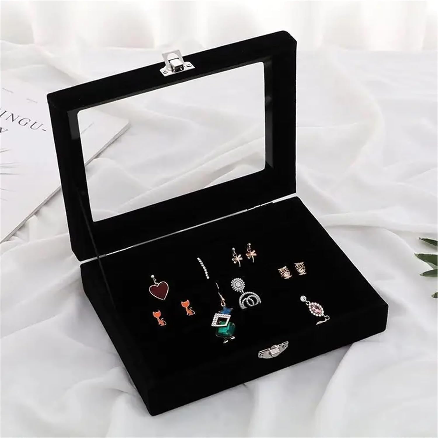 Scatola portagioielli for la casa con organizer for gioielli anello for collana coperto(Black)