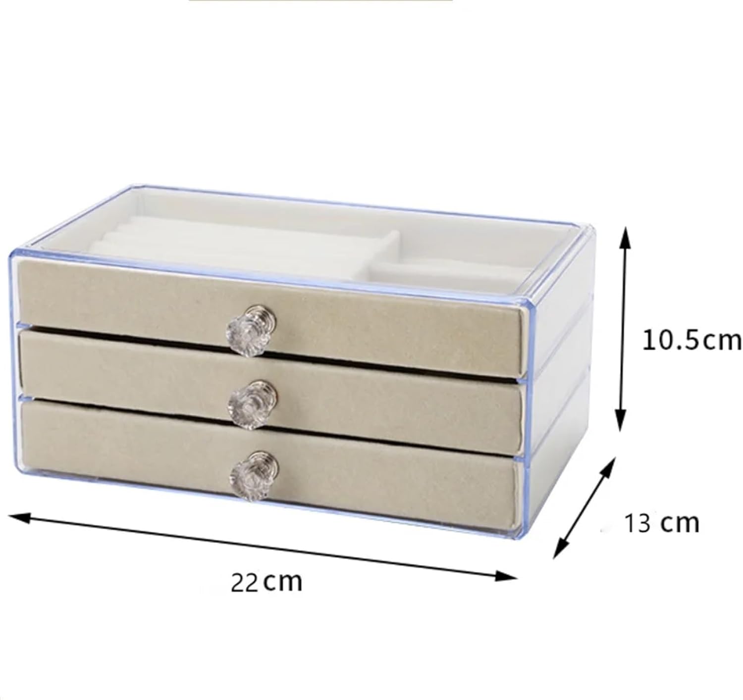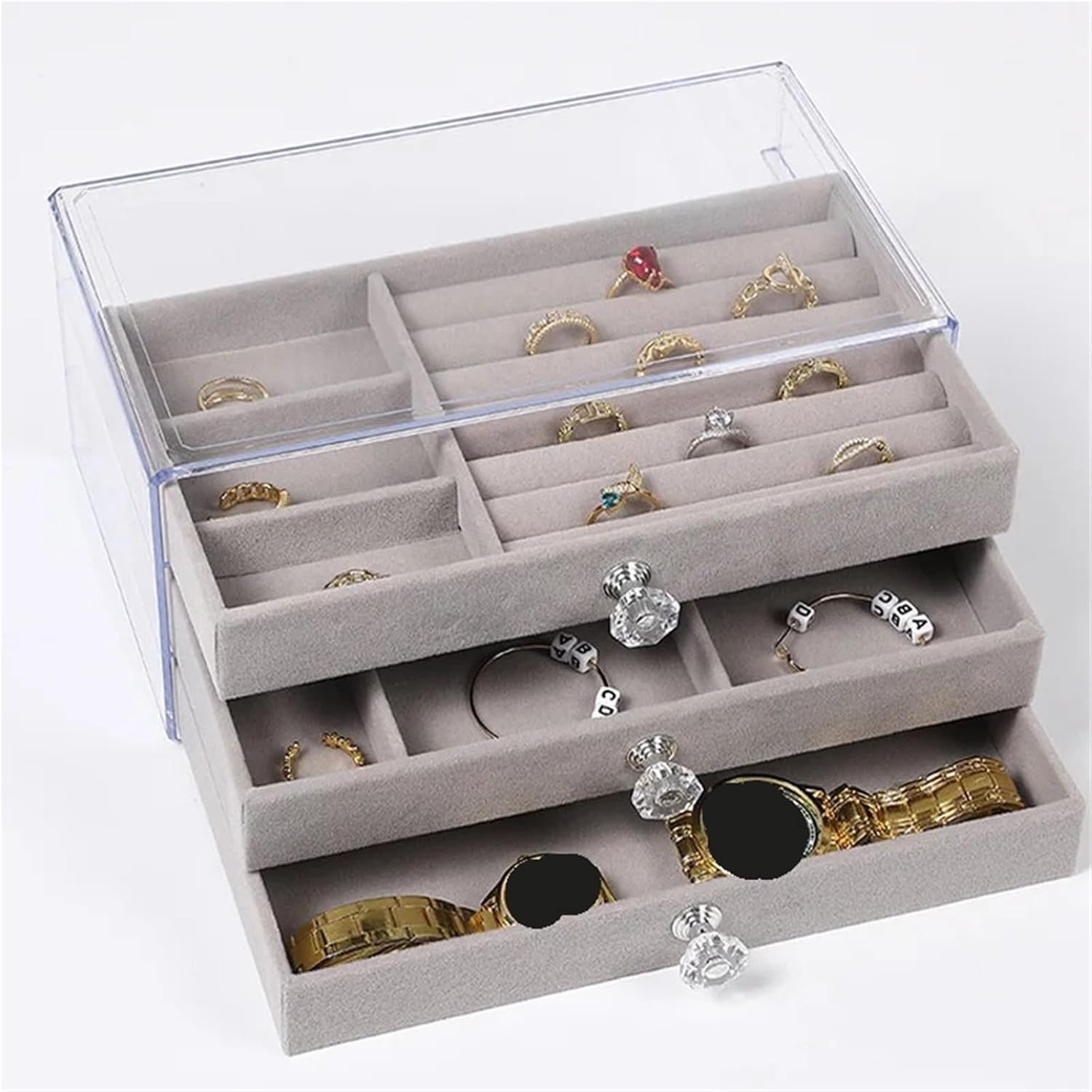 Scatola portagioielli for orecchini, bracciale trasparente, a tre strati, portagioie, anelli, gioielli(GRAY)