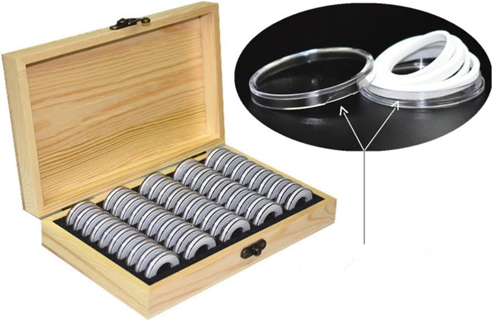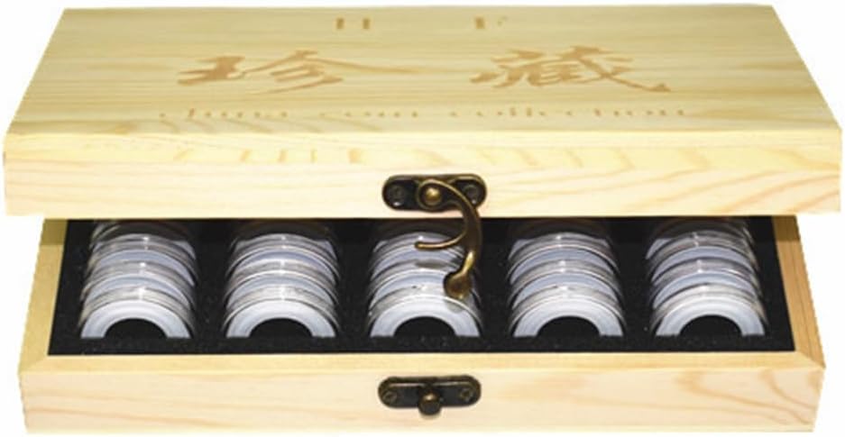 Usa l'anello interno rotondo in EVA: i tronchi sono lucidati per mostrare l'atmosfera e l'anello interno rotondo in EVA e resistente all'usura sono impostati senza danneggiare le monete. Serratura hardware in bronzo: la scatola per monete commemorativa utilizza una serratura hardware in bronzo di alta qualità, che ne facilita l'apertura e la chiusura. L'hardware squisito può migliorare la trama del campo. Sicuro e liscio: poiché la nostra scatola per la raccolta di monete è realizzata in materiale di legno di alta qualità, è durevole, robusta, sicura, liscia e raffinata. Aspetto elegante: con una struttura in legno e un aspetto elegante, la nostra scatola portamonete rotonda può essere utilizzata come un grande ornamento sul tuo tavolo per creare uno stile retrò per la decorazione della tua casa. Comodo da usare: il coperchio della nostra scatola portamonete da 50 monete può essere chiuso ermeticamente per evitare che le monete cadano. È resistente all'umidità, alla polvere e all'ossidazione per conservare bene le tue monete.