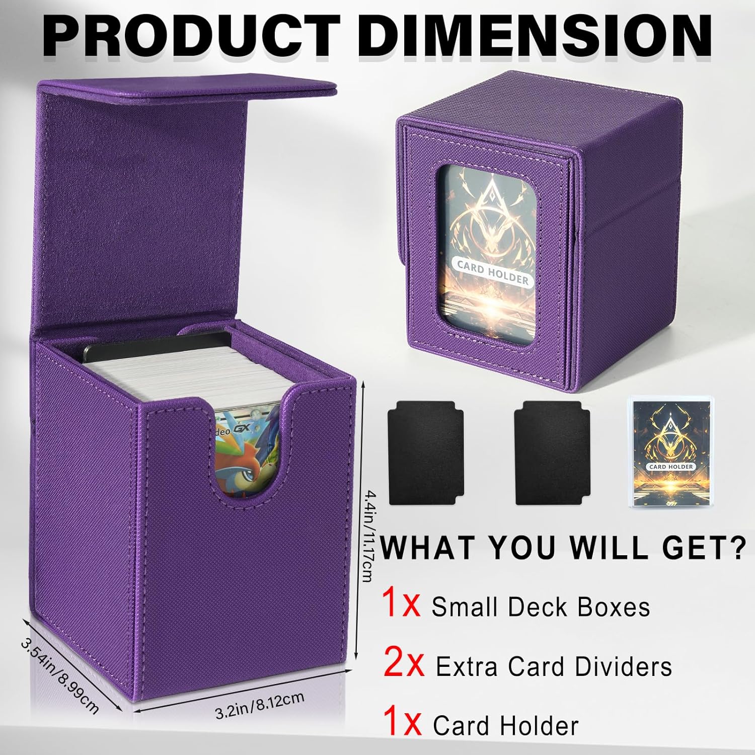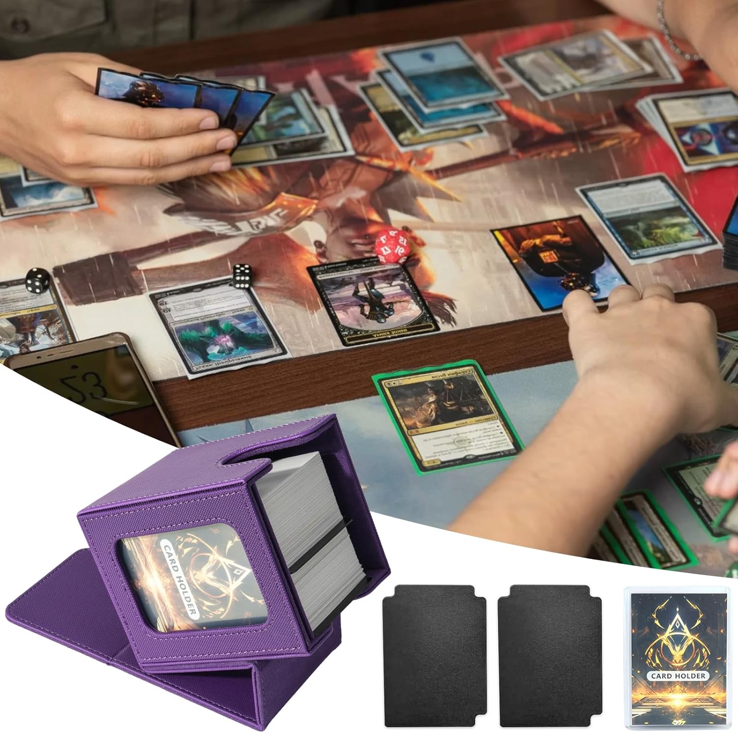 Design speciale: il portamazzo Commander con la finestra appositamente progettata per i giocatori Commander EDH, questo portamazzo premium è un must per ogni appassionato di MTG. Grande capacità: questa scatola per carte può contenere fino a 100 carte con busta doppia o più di 120 carte con busta singola o più di 200 carte senza maniche, offrendo ampio spazio per il tuo mazzo di carte. Dimensioni: 8,1 x 9 x 11,2 cm Facile accesso: progettata pensando alla comodità, la scatola porta carte utilizza un'ampia apertura a forma di U e un design ribaltabile per recuperare facilmente le tue carte, rendendo il gioco fluido e senza problemi. Protezione completa: la scatola del mazzo Commander è realizzata con una custodia in pelle PU ed è rinforzata con potenti magneti per una chiusura sicura. Puoi essere sicuro che le tue carte siano ben protette da danni esterni. Contenuto della confezione: ogni scatola da gioco di carte viene fornita con 2 divisori per carte e 1 porta carte. Che tu sia un MTG o qualsiasi altro appassionato di giochi di carte, questa scatola da gioco è un compagno affidabile per conservare e proteggere le tue amate carte.