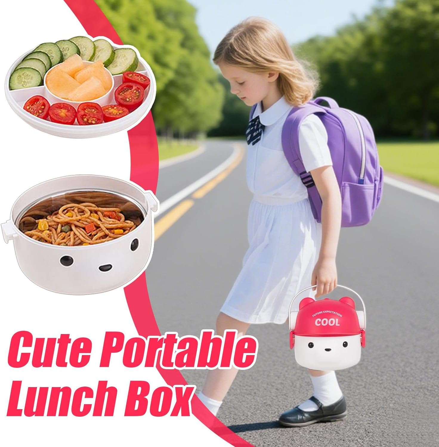 Tenuta Stagna Robusta: Progettata con guarnizione antiperdita e a scatto, assicura chiusura resistente agli urti per spostamenti sicuri, eliminando disordine a tavola ovunque Isolamento e Pulizia: Scatola pranzo termica con doppio strato isolante e nucleo in acciaio inox garantisce freschezza senza odori e facile pulizia grazie alle superfici lavabili con un panno Scaldamento Istantaneo:Funzionalità di riscaldamento immediato con praticità microonde diretta, perfetta per professionisti e studenti che cercano soluzioni rapide per il pranzo dei bambini Design Anti-Mescolanza: Include scomparti separati e un che assicura l'integrità di ogni alimento preparato per il bambino, mantenendo gusti e consistenze perfettamente distinti nel pranzo. Compagno di Pasti Divertente: Il design adorabile 'orsetto offre un tocco giocoso con il suo contenitore estetico e fascino personalizzato, per i pasti quotidiani dei più piccoli