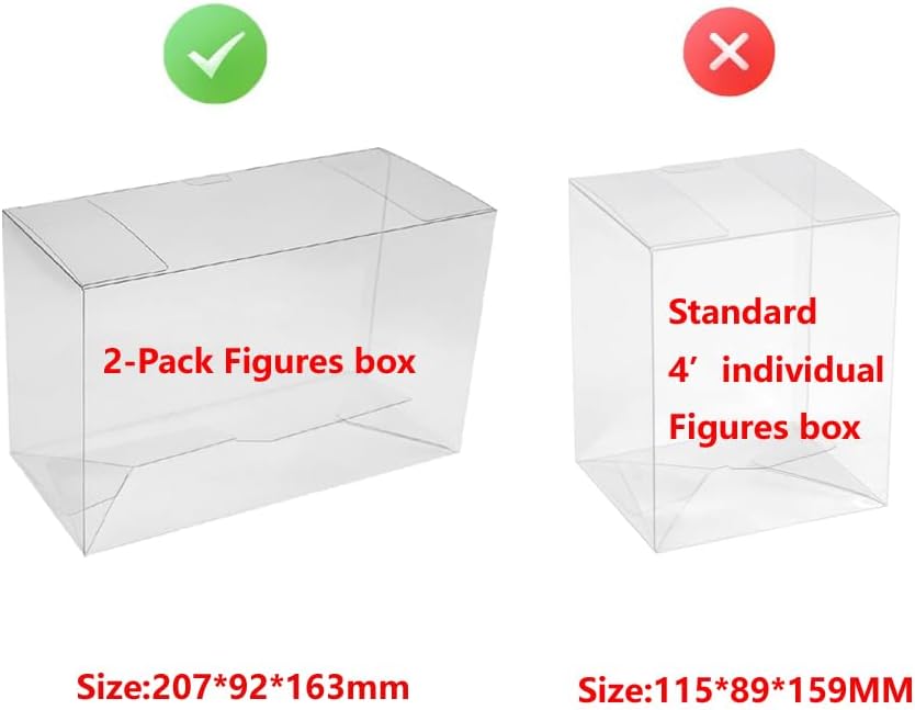 La custodia protettiva per 2 figure Ogni custodia viene spedita con la propria pellicola di imballaggio, non preoccuparti dei problemi di polvere e graffi prima di riceverla Soddisfa le esigenze di raccolta e visualizzazione: il materiale PET ha trasparenza e scorrevolezza, mantenendo le tue figure in condizioni incontaminate protette da polvere e impronte digitali Dimensioni del prodotto: 207 x 92 x 163 mm Questo è un prodotto di marca WICAREYO e non è originale