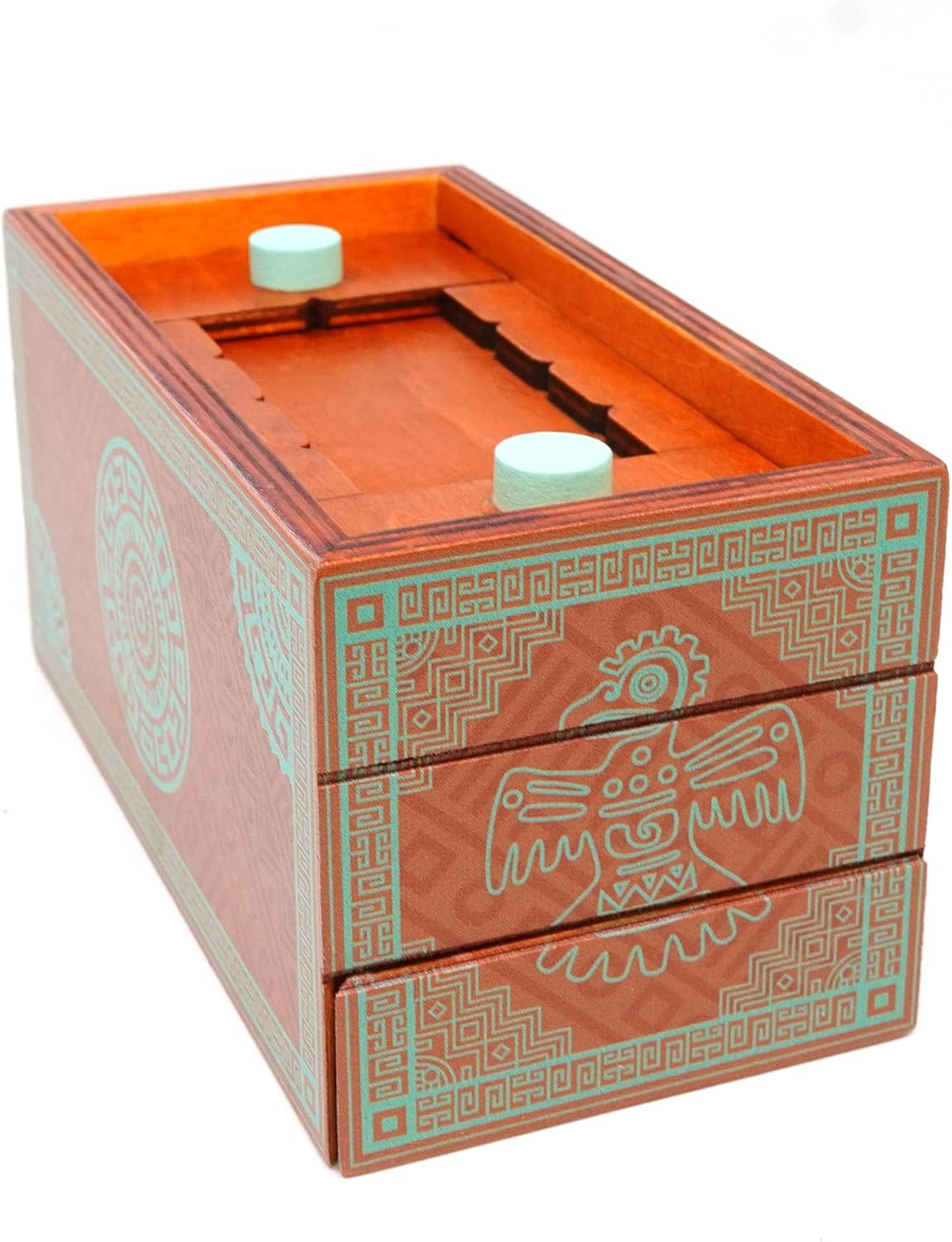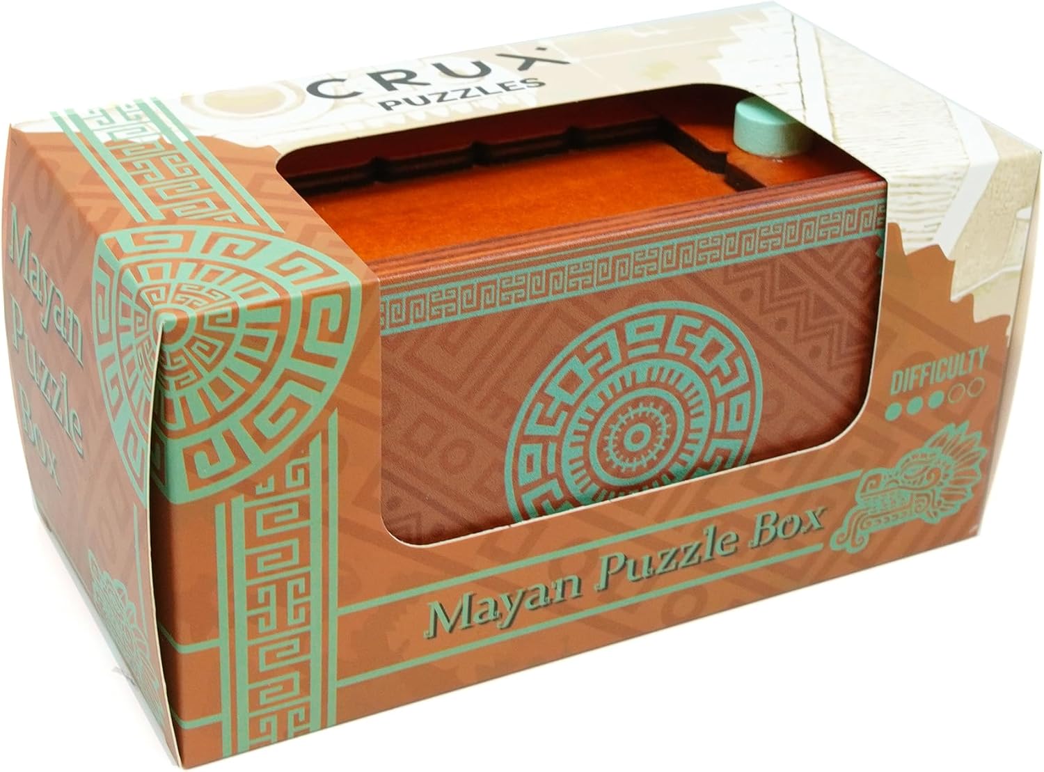 La scatola puzzle Maya è una bella e divertente scatola di puzzle in legno con due spazi nascosti all'interno. Puoi sbloccarli entrambi? ! Un ottimo modo per riporre alcuni oggetti di valore o per regalare qualcosa di piccolo. Gli spazi di archiviazione sono 130 x 66 x 30 mm e 118 x 51 x 19 mm Livello 4 su 10 sulla nostra scala di difficoltà Ispirato alle opere d'arte della civiltà Maya Viene fornito in una bella scatola di presentazione, la soluzione non è inclusa
