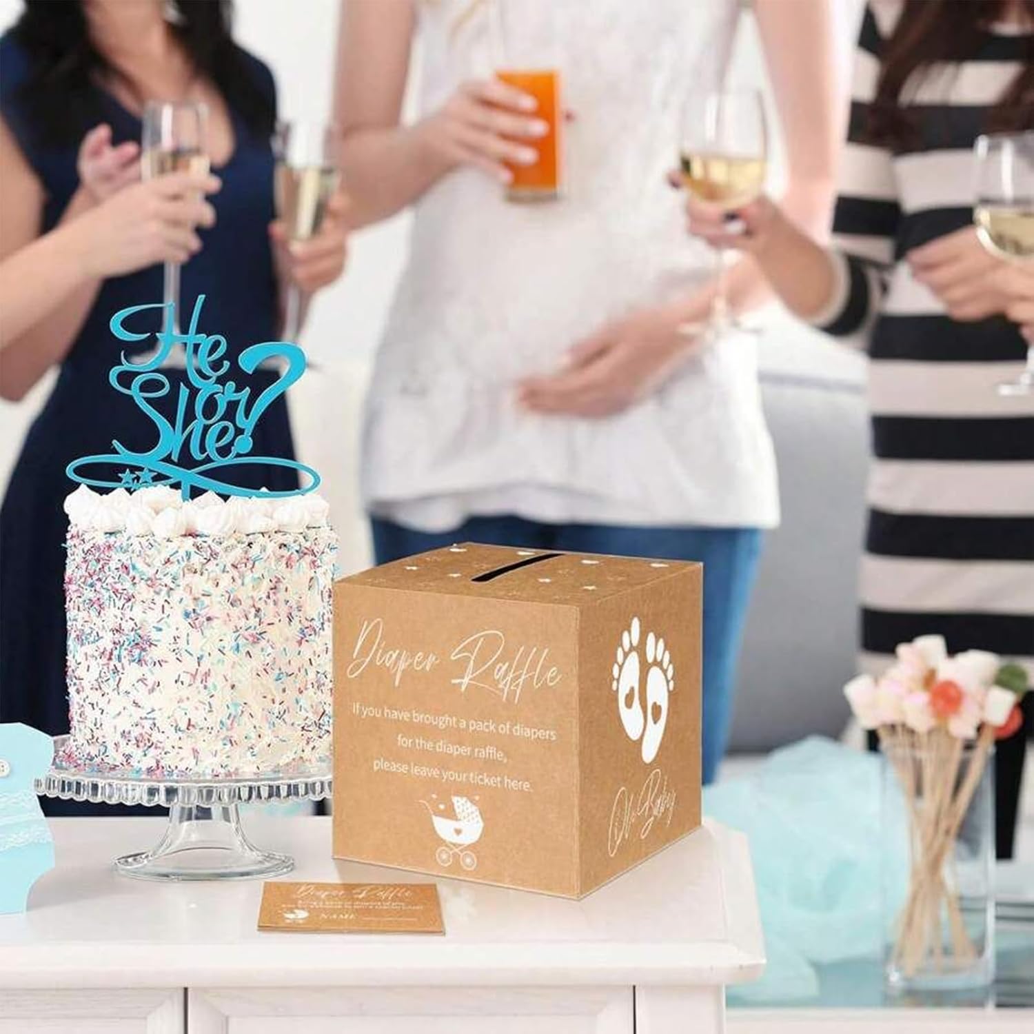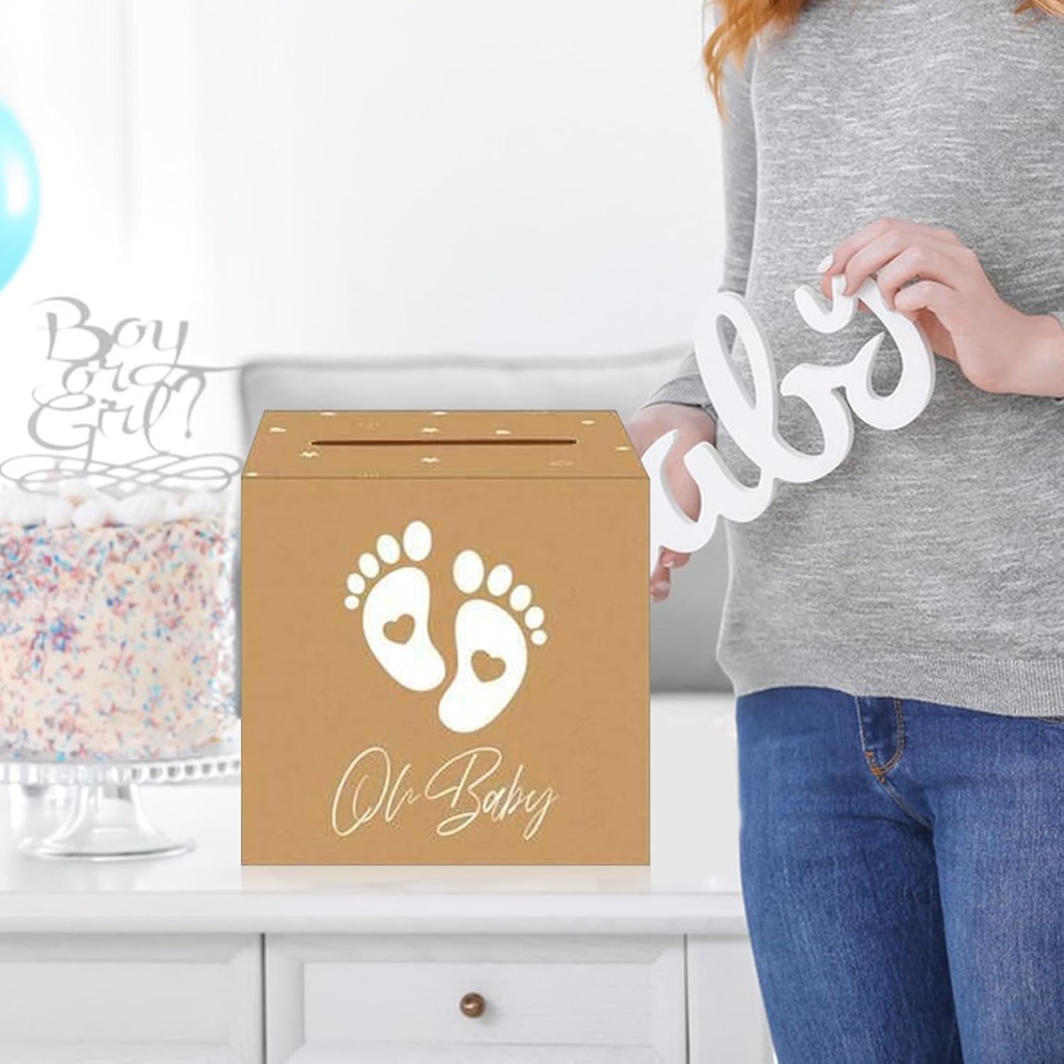 Spazio sufficiente: progettato con ampio spazio interno, questa scatola funge da porta ricordi per biglietti, lettere e altri oggetti cari, si fonde perfettamente in feste o esigenze quotidiane di archiviazione Uso senza sforzo: apri la scatola di rivelazione di genere senza sforzo per il tuo evento e piegala ordinatamente dopo senza bisogno di strumenti complessi, migliorando la comodità e risparmiando spazio Aumenta l'atmosfera: progettato per essere un centrotavola visivo, combina una tavolozza di colori morbidi e un look elegante, arricchendo la tua decorazione a tema e garantendo un'estetica coesa per la tua occasione speciale Resistente e robusta: realizzata con carta ispessita e tecnologia di stampa multistrato, questa scatola di rivelazione di genere non garantisce alcuna deformazione sotto carichi elevati mantenendo una struttura robusta per un uso affidabile durante il tuo evento speciale Applicazioni versatili: questa scatola di rivelazione di genere cattura i tempi preziosi della vita, fungendo da collezionista di benedizioni e custode del valore emotivo per ricordi senza tempo che le famiglie possono custodire per sempre