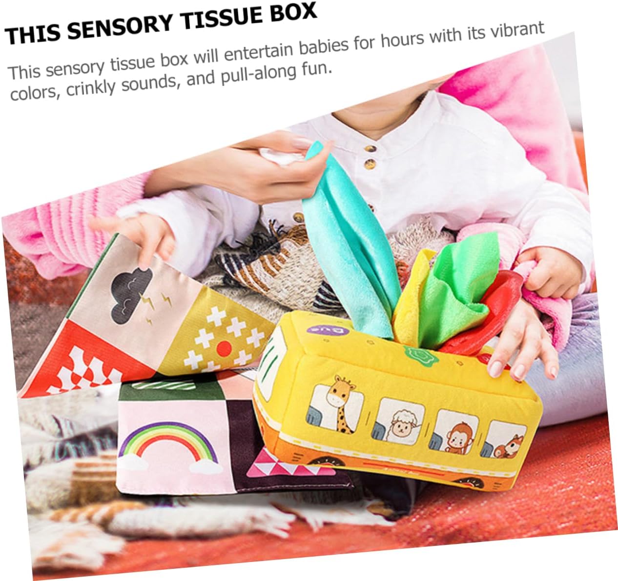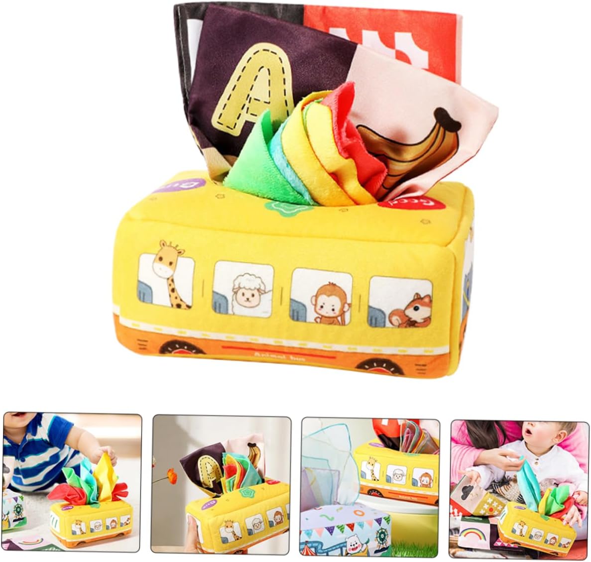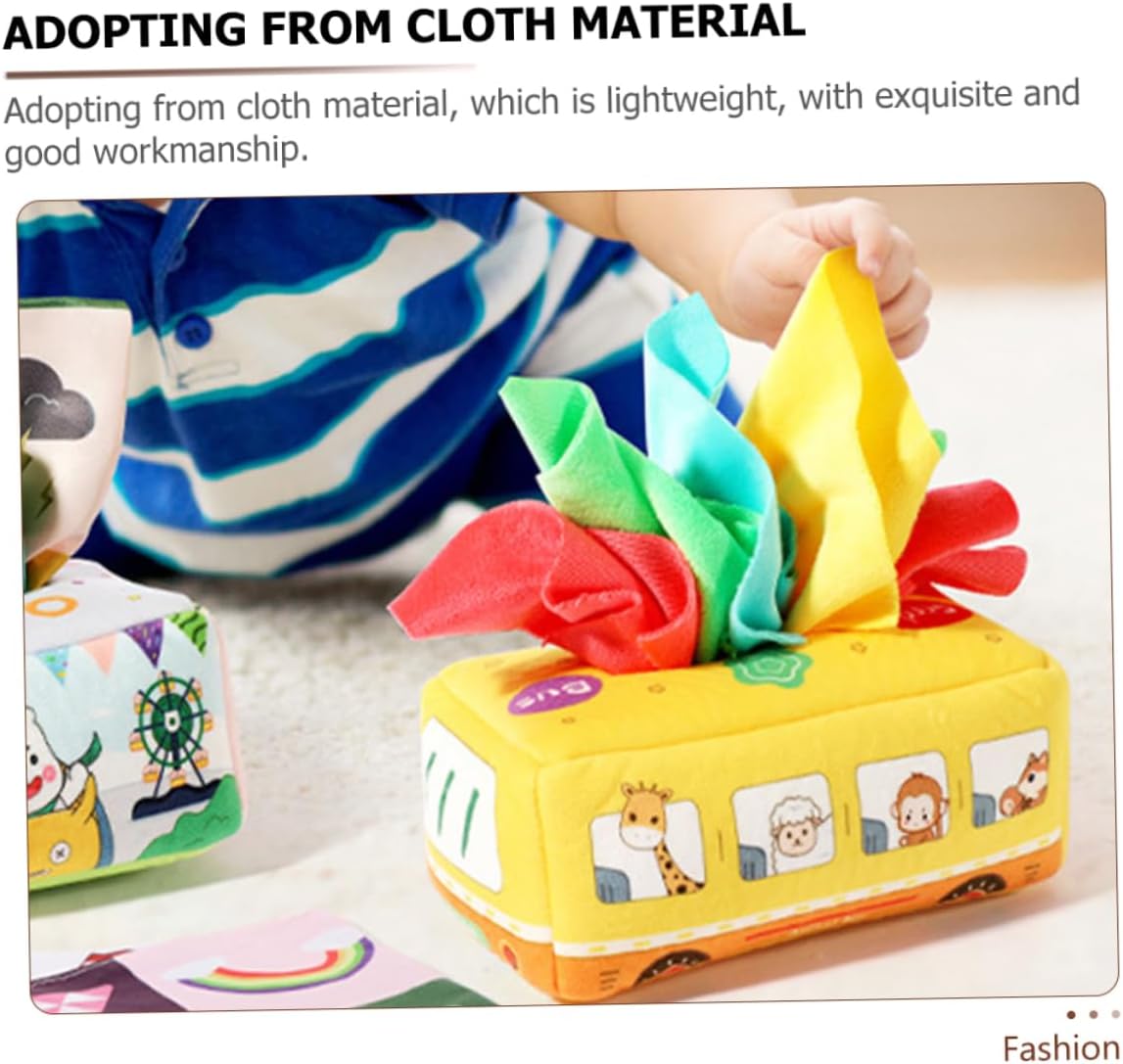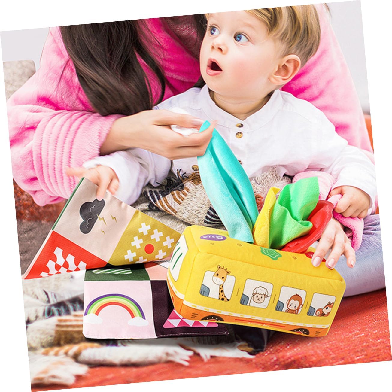 Giocattolo per estrarre fazzoletti per bambini - realizzato in tessuto, che è caratterizzato da stabilità e durata, molto liscio da usare, giocattolo sensoriale per tirare i fazzoletti per bambini - non solo ti rende felice ma promuove anche lo sviluppo dell'intelligenza, giocattolo per fazzoletti sensoriali indistruttibili - il materiale è sicuro e leggero, resistente all'usura e pratico per un uso duraturo, giocattolo per fazzoletti per neonati - scatola per fazzoletti - è flessibile e facilita i bambini Montessori - l'apertura è abbastanza grande da rendere il tessuto facile da estrarre e rimettere, giocattoli fazzoletto per neonati