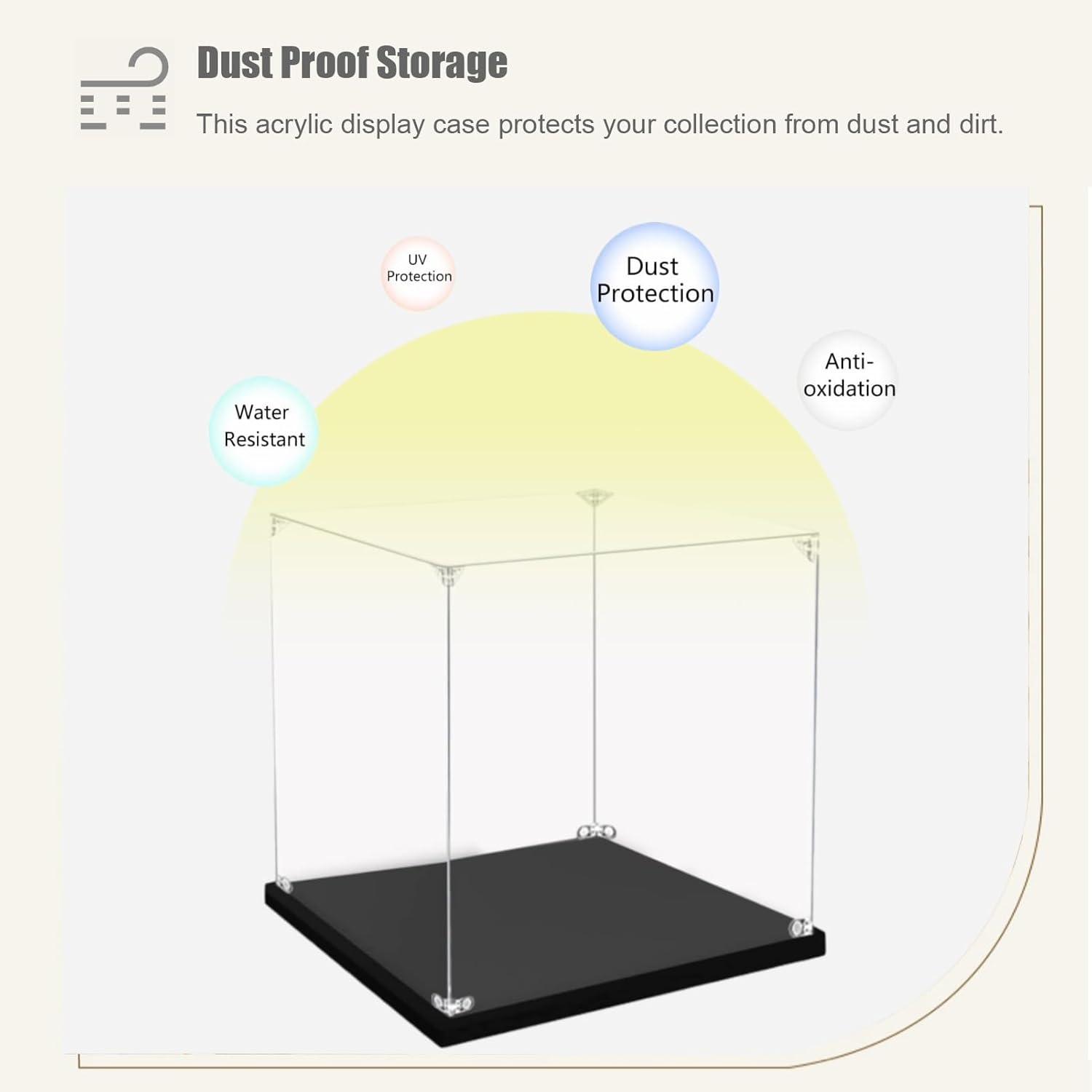【 Acrilico di qualità 】 Le nostre teche trasparenti sono realizzate con lastre acriliche trasparenti di alta qualità da 2 mm (1/16") di spessore e una base in PVC da 10 mm (3/8") di spessore. L'aspetto elegante e moderno ti aiuterà a esporre e organizzare meglio la tua collezione. 【Esponi e proteggi Questa vetrina in acrilico non solo protegge la tua collezione da polvere e sporco. Il materiale acrilico trasparente e robusto metterà in risalto la bellezza della tua collezione, rendendola l'aggiunta perfetta a qualsiasi stanza della tua casa. 【Facile da montare】 La struttura unica e innovativa della scatola in acrilico trasparente la rende molto facile da montare, con un design senza colla e pannelli tagliati con precisione che non richiedono alcuna abilità for aggiungere un'esperienza visivamente piacevole al tuo spazio. 【 Dimensioni del prodotto 】 La nostra vetrina è disponibile in diverse dimensioni, rendendola perfetta for qualsiasi articolo tu voglia esporre. NOTA: misura la lunghezza, la larghezza e l'altezza della tua collezione prima di ordinare, quindi ordina in base alle dimensioni desiderate. 【 Ampiamente applicabile 】 Queste scatole in acrilico for esposizione sono adatte for mettere in mostra oggetti da collezione, cimeli sportivi, giocattoli, statuette, bambole, action figure, souvenir, modelli, statue, sculture, ecc. Inoltre, questa vetrina può mettere in risalto la bellezza degli oggetti sopra menzionati e renderli più attraenti.
