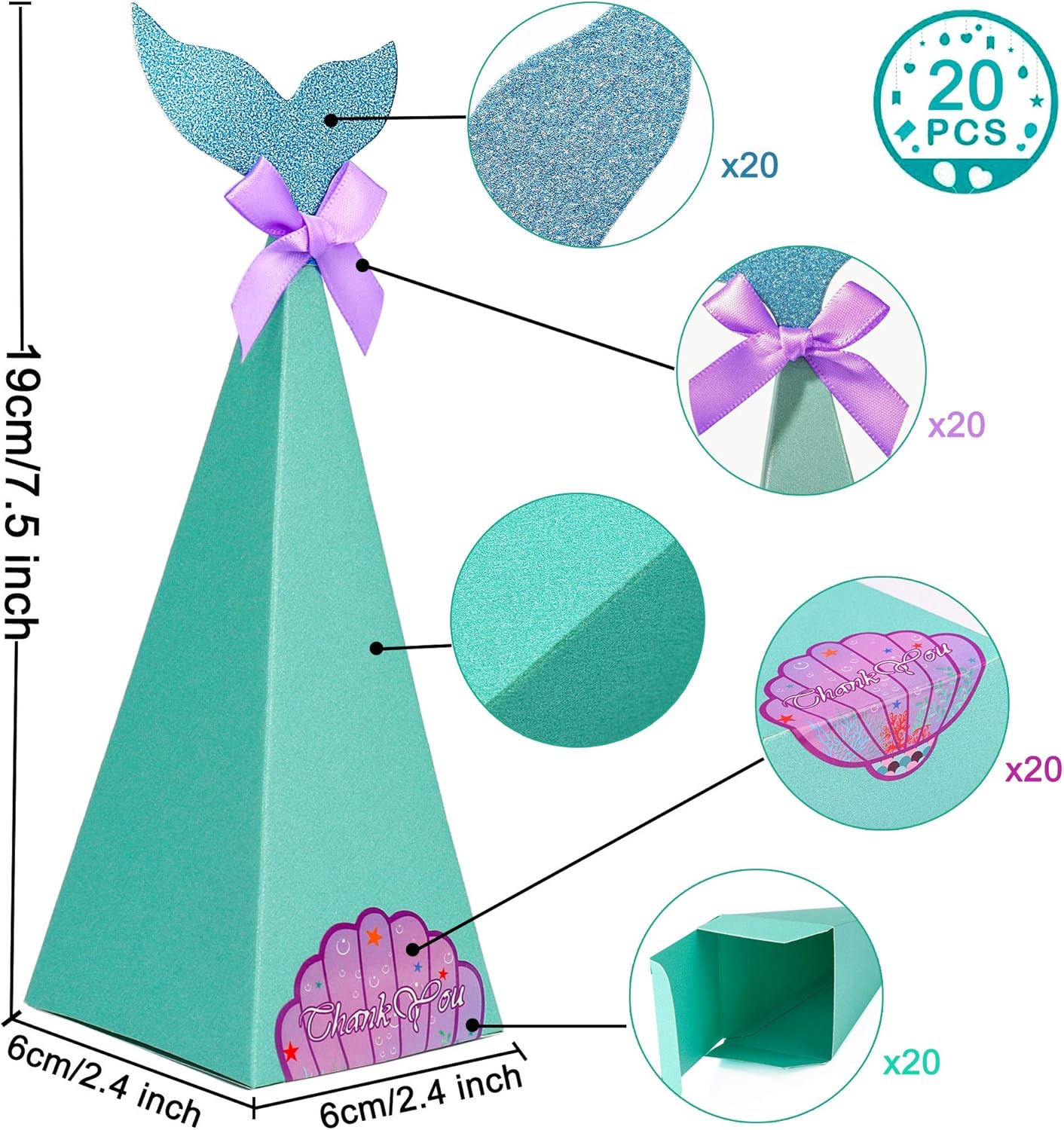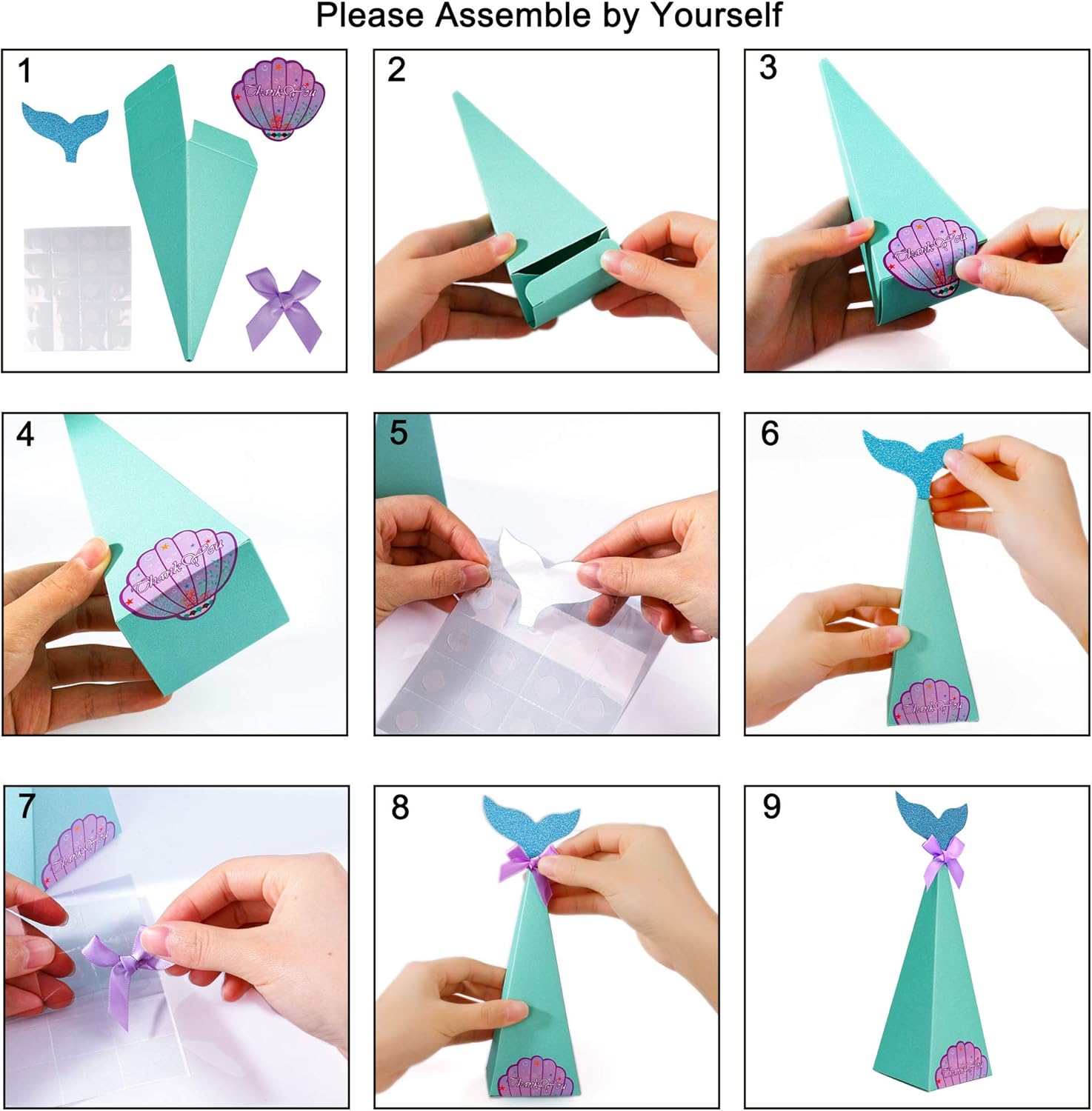 Design creativo ed elegante: la parte superiore della delicata confezione regalo per feste a sirena è incollata con fiocchi viola e coda di sirena scintillante e glitterata, ricoperta da uno strato di polvere leggera su entrambi i lati. La squisita fattura rende ogni modello chiaro e luminoso, così ricco e attraente, da farti sentire come se fossi sotto il mare. Ampia applicazione: puoi riempire la scatola dei dolci con bomboniere o piccoli regali come caramelle, noci, biscotti, snack, cioccolatini, piccoli giocattoli, gioielli e altri gadget per sorprendere i tuoi ospiti e amici. Le scatole di caramelle a forma di sirena sono ideali per feste di compleanno per bambini, baby shower, matrimoni, Natale, feste subacquee e qualsiasi altra festa a tema sirena. Bomboniere per feste di compleanno con sirene per bambini: realizza il sogno della tua sirenetta con una festa di compleanno sottomarina. Le nostre adorabili scatole per bomboniere con la Sirenetta sono perfette per il giorno speciale del tuo bambino. Quando si tratta di sorprese, i tuoi bambini adoreranno regalare questi graziosi sacchetti per bomboniere a forma di sirena ai loro amici, familiari e compagni di classe! Scatole regalo fai da te: le nostre scatole regalo a forma di sirena sono piatte e richiedono il montaggio. È facile e utile assemblare la scatola da soli. Il processo di installazione è molto semplice e richiede solo pochi minuti (vedi immagine). Questo può allenare le abilità pratiche di tuo figlio. Lavora semplicemente con tuo figlio per creare una scatola di bomboniere unica. Set di scatole per caramelle a sirena di grande valore: 20 scatole per caramelle a sirena con 20 code glitterate, 20 fiocchi viola, 20 adesivi di ringraziamento a forma di conchiglia, 40 punti di colla, quantità sufficiente per rifornire la tua festa. Puoi coordinarti con altre decorazioni per feste a tema sirena e forniture per feste per creare un'atmosfera completamente festosa.