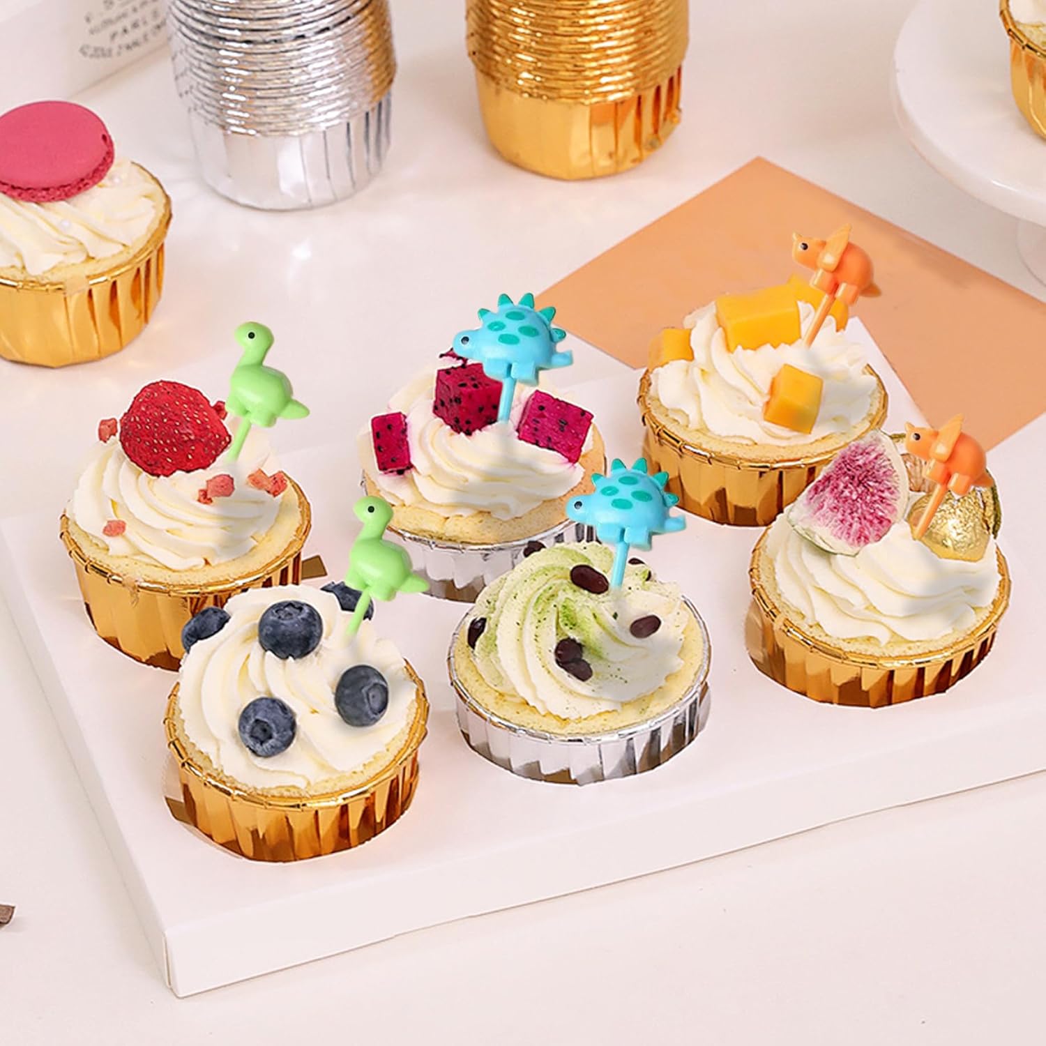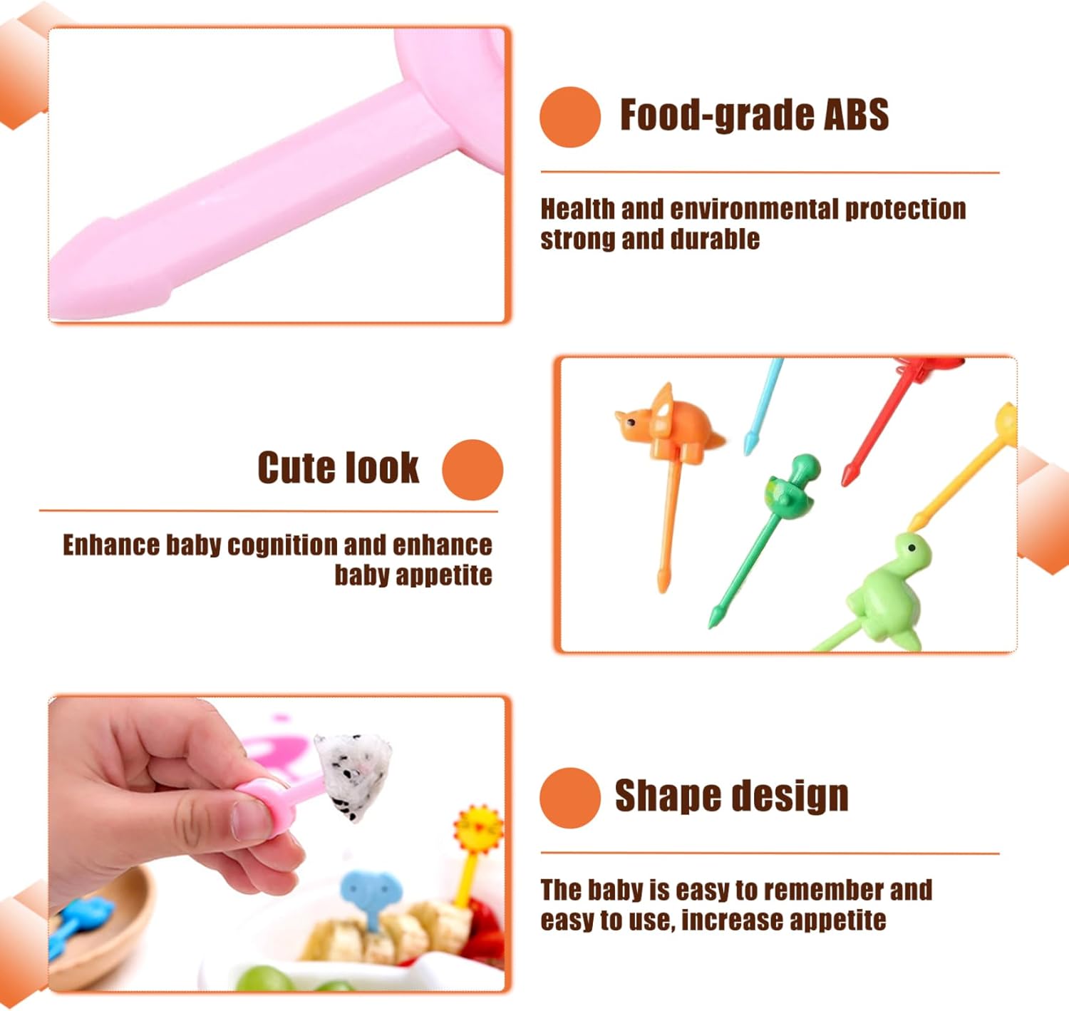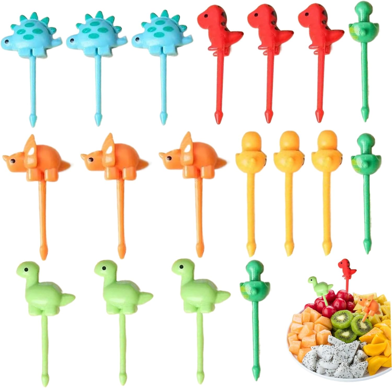 Design divertente e accattivante: gli adorabili design dei dinosauri cattureranno sicuramente l'attenzione di tuo figlio, rendendo più semplice incoraggiare abitudini alimentari sane..Queste scelte alimentari sono perfette per aggiungere entusiasmo a frutta, snack o pranzi al sacco. Facile da usare: con il loro design semplice e facile da impugnare, questi stuzzicadenti facilitano la presa e l'utilizzo per le mani dei più piccoli..Sono ideali per i bambini che imparano a mangiare in modo indipendente e possono essere utilizzati per una varietà di cibi. Materiale per uso alimentare: realizzati in ABS per uso alimentare, questi stuzzicadenti sono sicuri per neonati e bambini..Il materiale ABS garantisce che siano atossici e garantiscano tranquillità ai genitori. Stuzzicadenti da 18 pezzi: questo set include 18 stuzzicadenti carini e colorati, ciascuno dei quali misura 2,2 pollici di lunghezza, perfetti per rendere i pasti più divertenti per i bambini. Perfetto per scatole e snack: questi plettri di cibo per dinosauri sono un modo divertente per personalizzare il pranzo o lo spuntino di tuo figlio..Sono perfetti per panini, frutta, verdura o anche dessert, donando un tocco giocoso ad ogni pasto.