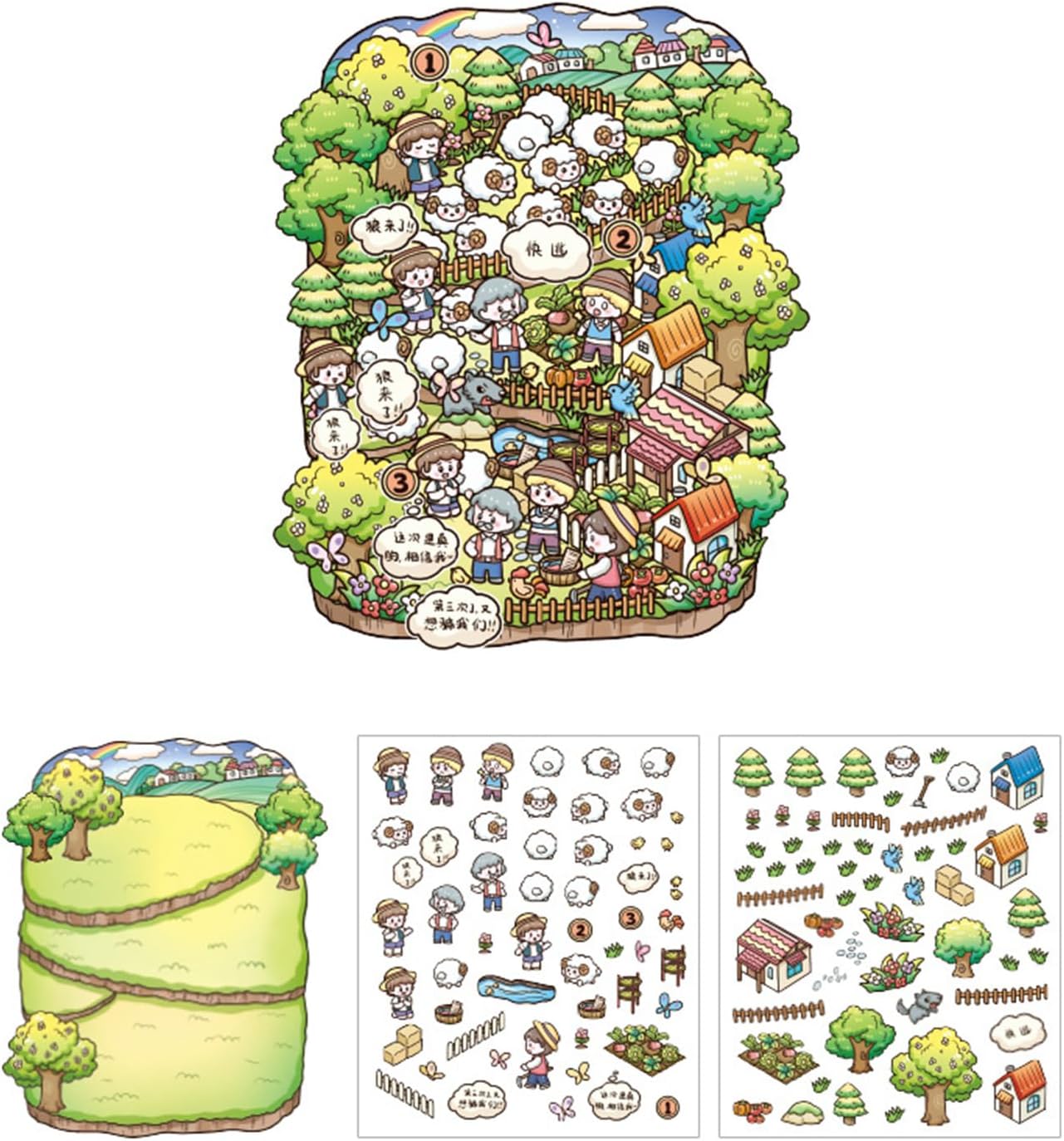 Sviluppa coordinazione pratica, consapevolezza cognitiva e immaginazione Un amante del diario, un amico di artigianato, studenti e materiale per il diario Stacca e posiziona l'adesivo in diverse scene per aiutare i bambini a sviluppare le capacità motorie, in un modo divertente e attraente L'adesivo della scena non è facile da sbiadire ed è piacevole al tatto L'adesivo con paesaggio della serie fiabe è leggero e portatile, il che lo rende ideale per i viaggi