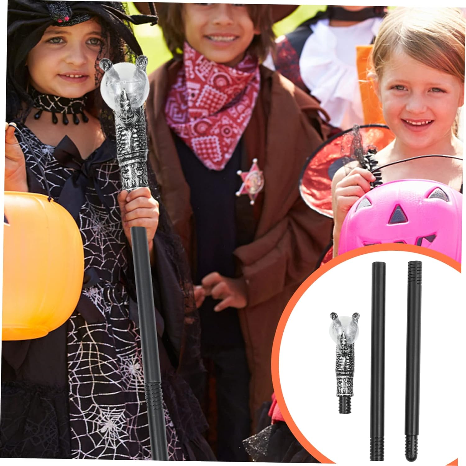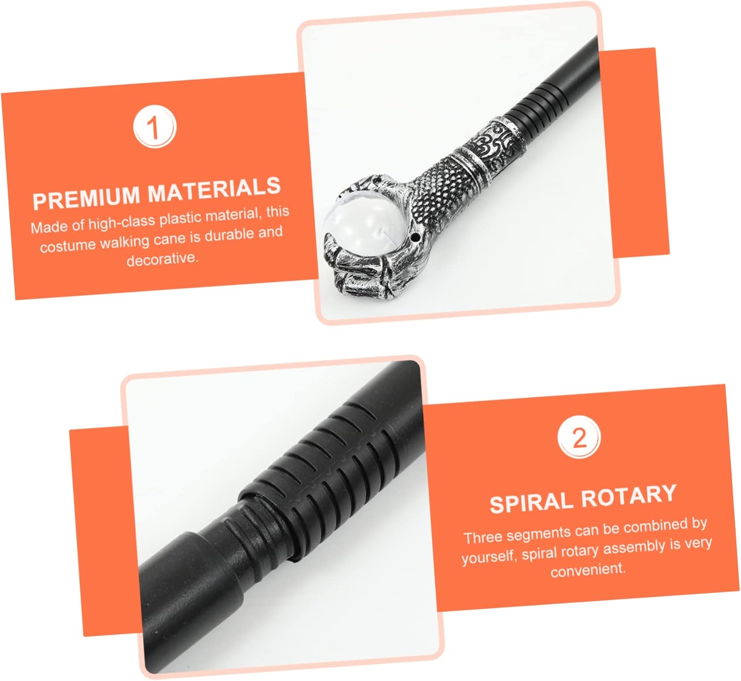 Accessori per costumi di Halloween: realizzati in materiale plastico di alta qualità e con pregevole fattura, sicuri e durevoli, accessori per costumi di Halloween Scettro giocattolo: può essere un Halloween creativo e unico per te o i tuoi amici, sarai molto felice, oggetti di scena per Halloween Oggetti di scena per Halloween: tre possono essere combinati da soli, il gruppo rotante a spirale è molto pratico, oggetti di scena per costumi di Halloween Oggetti di scena per cosplay: può essere usato come divertente accessorio fotografico per creare foto indimenticabili e scattare foto creative, bastone da passeggio in costume: adatto per feste di cosplay, Halloween, produzioni teatrali, spettacoli teatrali e altri, accessori per costumi di Halloween