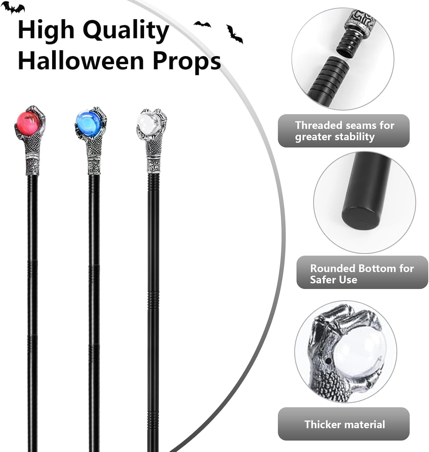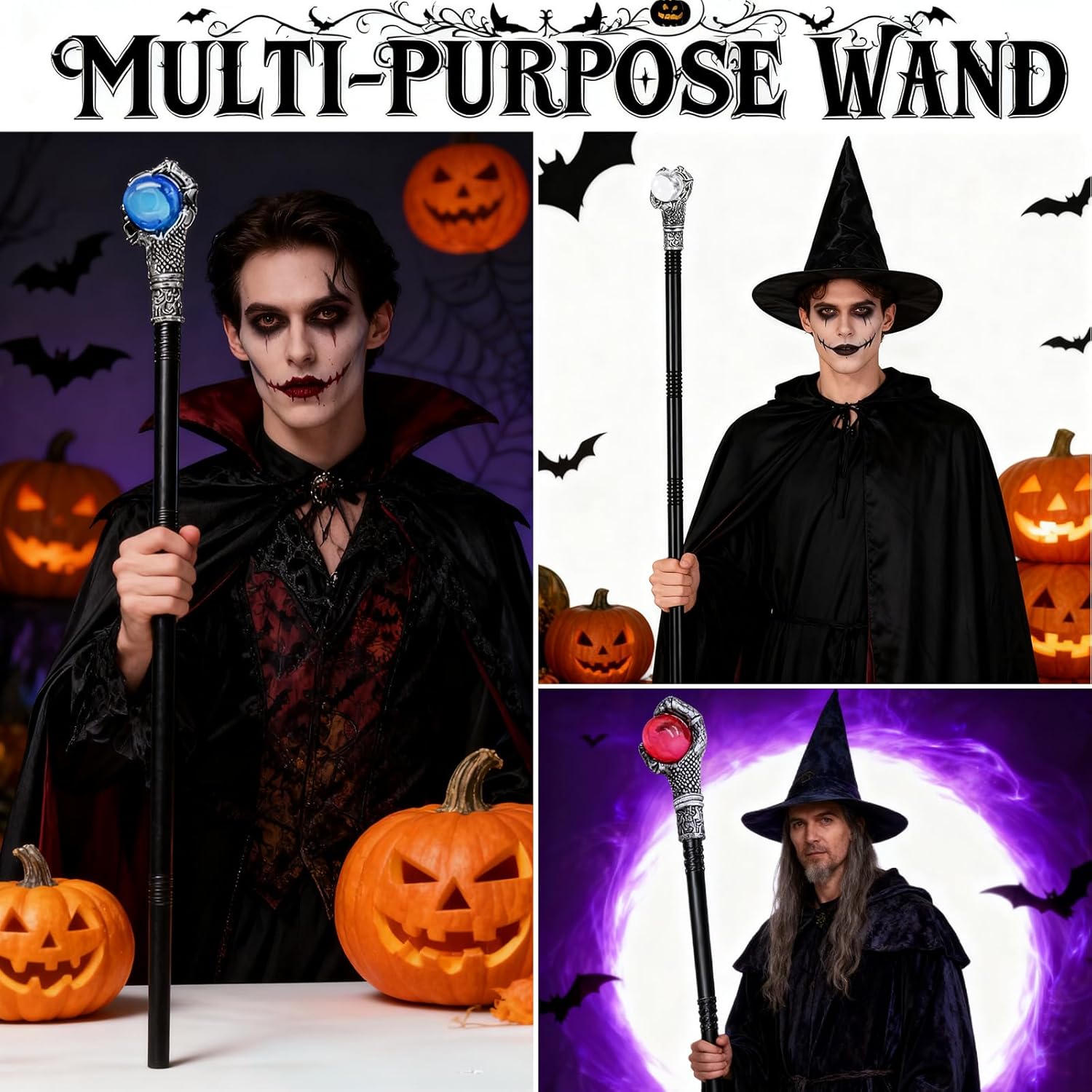 【Uso Universale】Scettro e Bastone da Strega per costumi da Vampiro, Faraone & Streghe – Accessorio perfetto per Halloween bastone da passeggio gotico, cosplay e carnevali! 【Design Modulare】Il Bastone da Strega ha sezioni staccabili (4 parti). Regolabile da 48 a 108 cm – perfetto per bambini e adulti! 【Materiale Premium】Bastone da Strega Halloween in plastica di alta qualità con artigli d'aquila in effetto metallico (regge sfera mistica). Leggero e sicuro: niente spigoli vivi! 【Cambio Scena Istantaneo】Trasformati: Scettro Vampiro per eleganza oscura, Scettro Faraone per aura regale, Bastone da Strega per rituali magici! 【Dichiarazione di Stile】L'essenziale Scettro & Bastone da Strega per ogni tema – la corona di ogni costume Halloween!