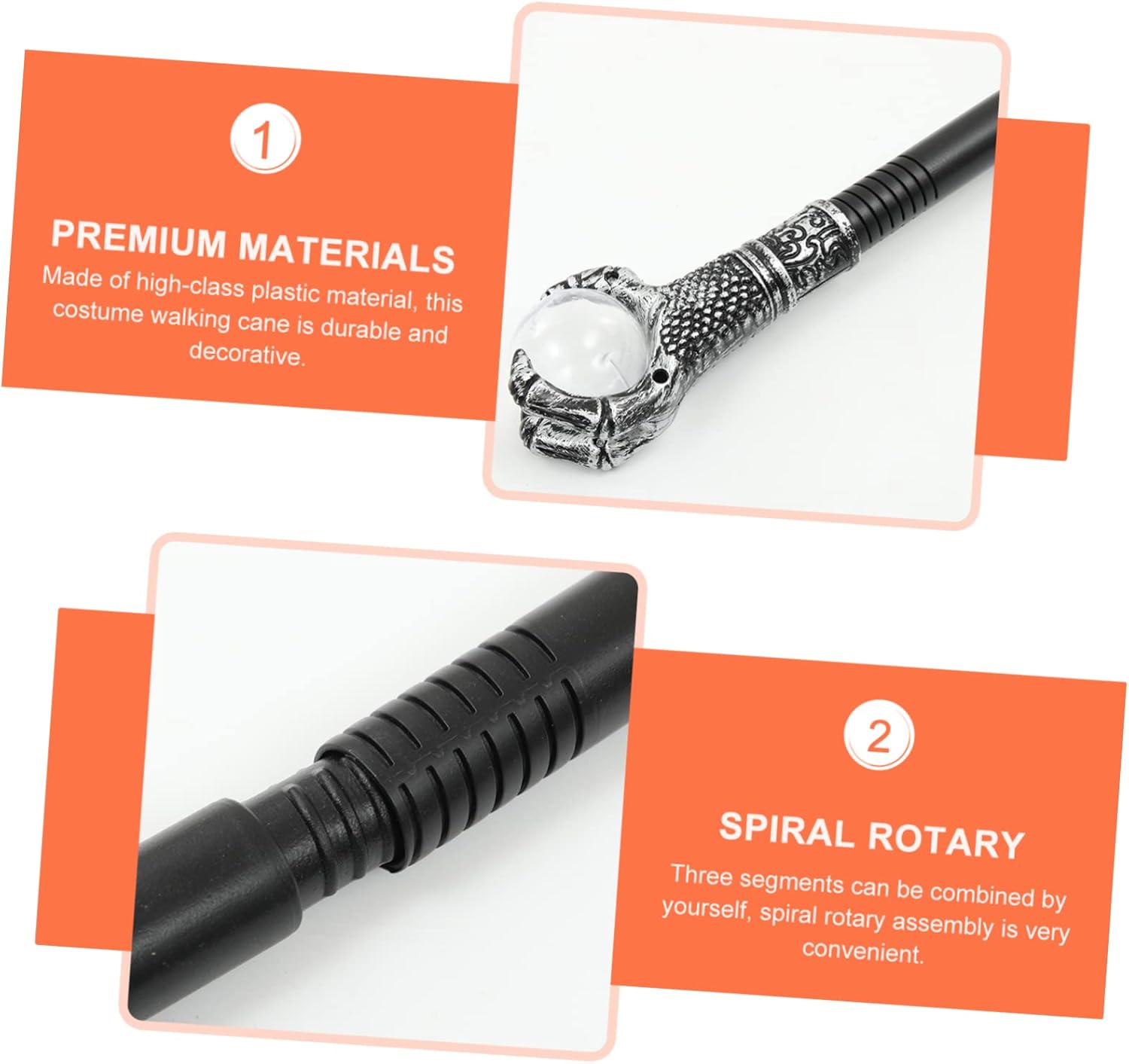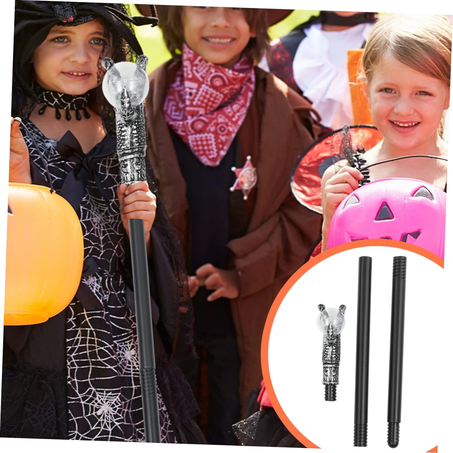 Giocattolo scettro per: Realizzato in materiale plastico di alta qualità e con pregevole fattura, sicuro e durevole, bacchetta magica di Halloween Oggetti di scena di Halloween: questo bastoncino dal design delicato è realizzato in plastica robusta, leggero, resistente e durevole, Accessori per costumi Bastone da passeggio per costumi: può essere usato come divertente supporto fotografico per scattare foto indimenticabili e creative, Accessori per costumi di Halloween Accessori per bacchette per costumi: tre possono essere combinati da soli, il gruppo rotante a forma di spirale è molto pratico, Bastone per scettro di Halloween: leggero, portatile, facile da trasportare e da usare, può offrirti grande comodità, Halloween