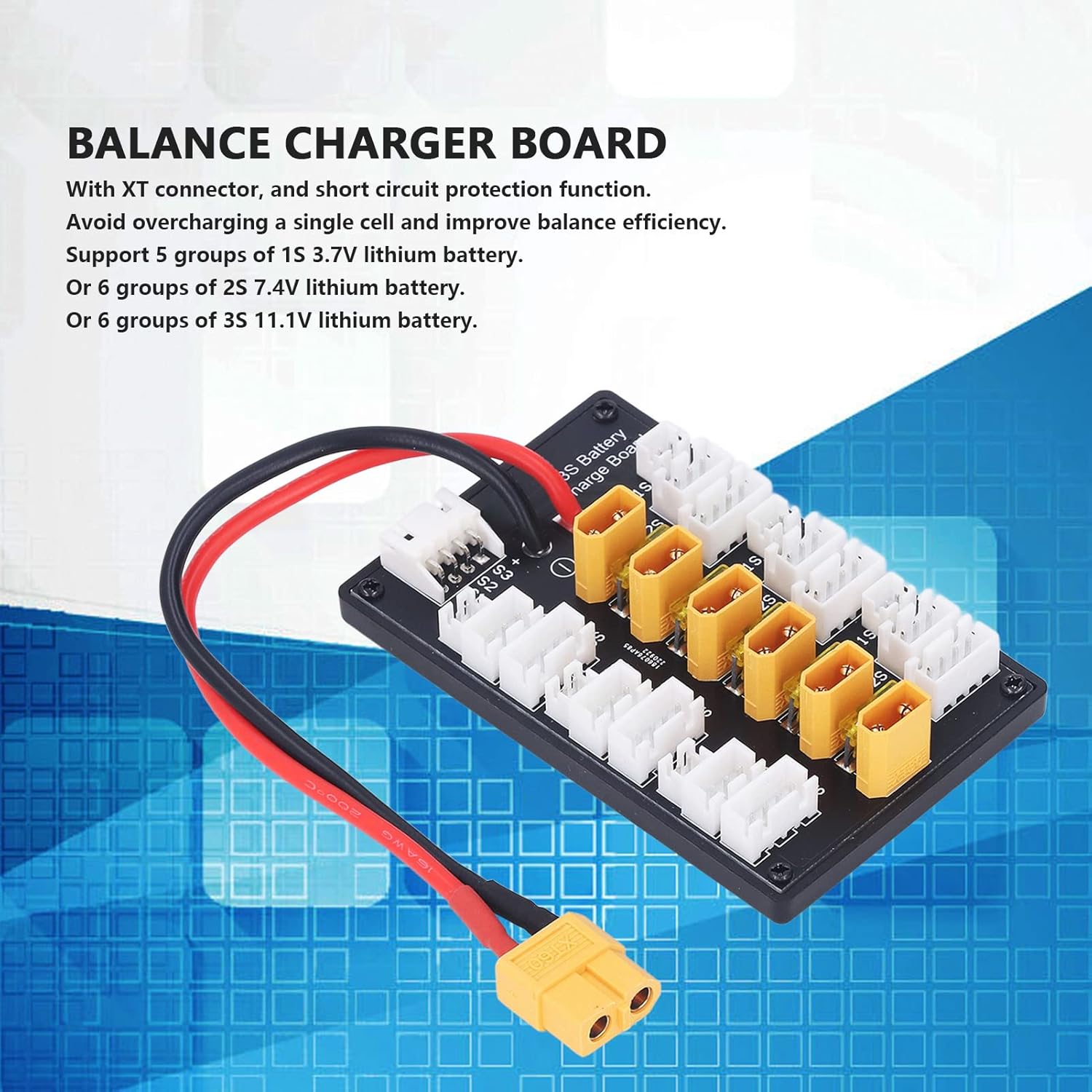 Caricatore parallelo: supporta la ricarica parallela e bilanciata di 5 gruppi 1S 3,7 V Batteria di litio o 6 gruppi 2S 2,4 V Batteria di litio o 6 gruppi 3S 11,1 V Batteria di litio. Sicuro nella ricarica: dotato di un foglio di rame spesso 20Z, la sche di ricarica parallela con protezione del corto circuito può resistere alla corrente di 80A. Ampia applicazione: ampiamente utilizzato nel settore dei macchinari, nell'industria automobilistica, nell'industria delle costruzioni, nella ferrovia, nell'industria elettronica e così via. PCB e silicone: combinando i materiali di PCB e silicone premium, la sche di espansione di ricarica non è probabile che non sia un malfunzionamento e molto resistente. Facile installare: progettato per avere una dimensione compatta e anche un peso leggero, la sche del caricatore del bilanciamento è molto facile installare in pochi minuti.