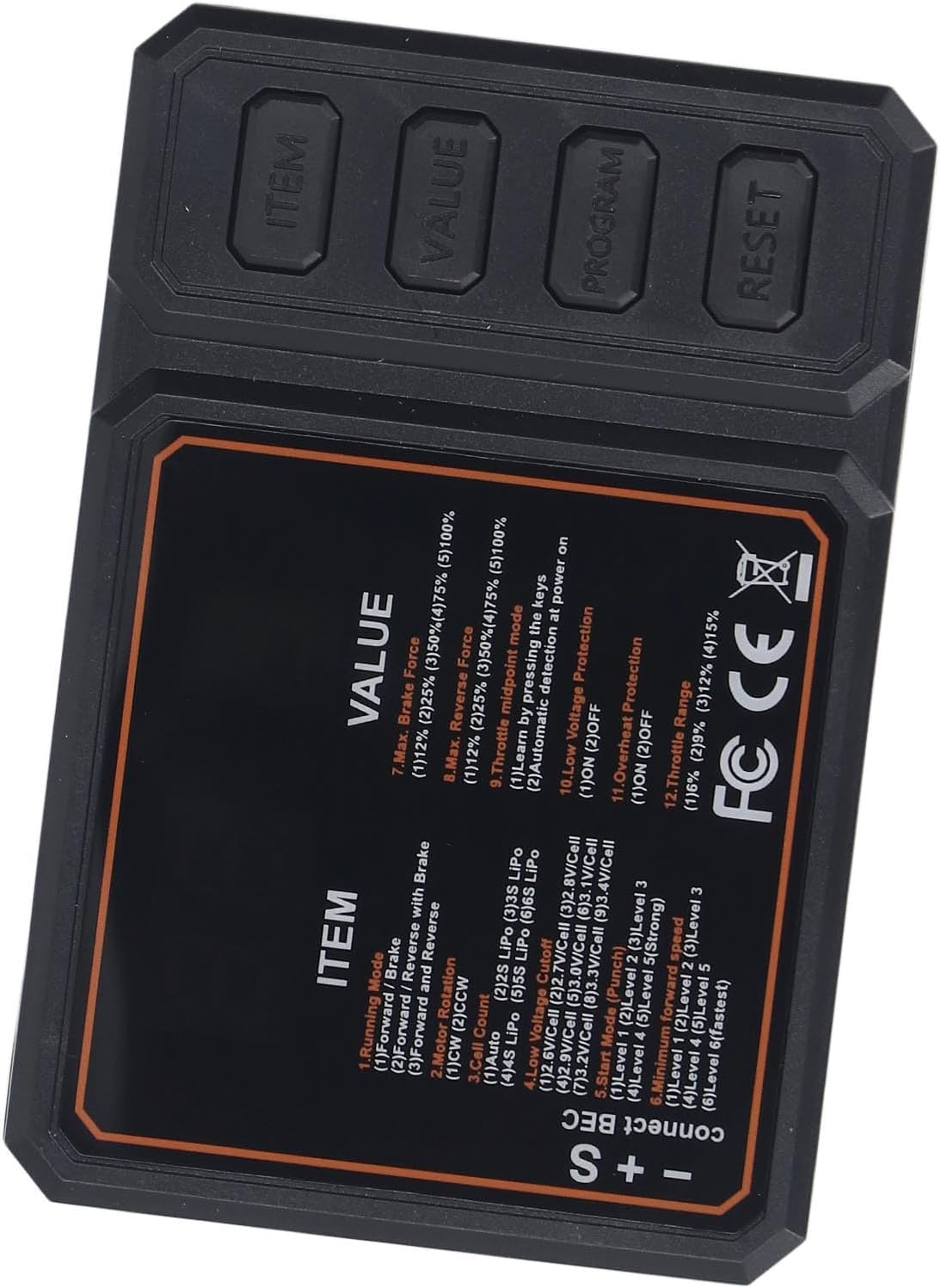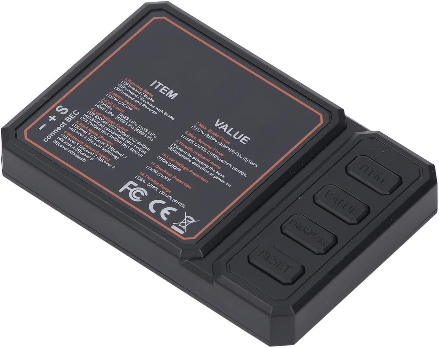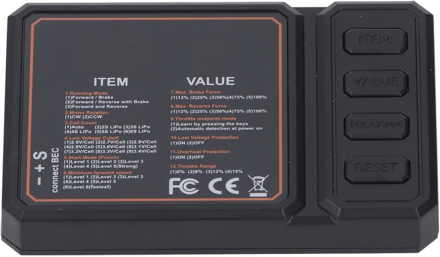 [Plug and Play rapido] Basta collegare la linea del segnale dell'ESC per semplificare la programmazione e consentire una facile regolazione per prestazioni ottimizzate. [Compatibilità versatile] Adatto per barche RC con ESC da 50 a 150 A, compatibile con modelli popolari come Axial SCX10, MST, CFX ed EX86100. [Prestazioni migliorate] Massimizza la tua esperienza con l'auto RC con regolazioni precise dei parametri ESC per un migliore controllo della velocità su qualsiasi terreno. [Costruzione robusta] Realizzato in plastica per prestazioni durature, migliora la funzionalità e la durata della tua auto RC. [Controllo facile della velocità regolabile] Imposta facilmente il controller della velocità sulla marcia desiderata con questa scheda di programmazione senza spazzole, consentendo una rapida regolazione dei parametri.
