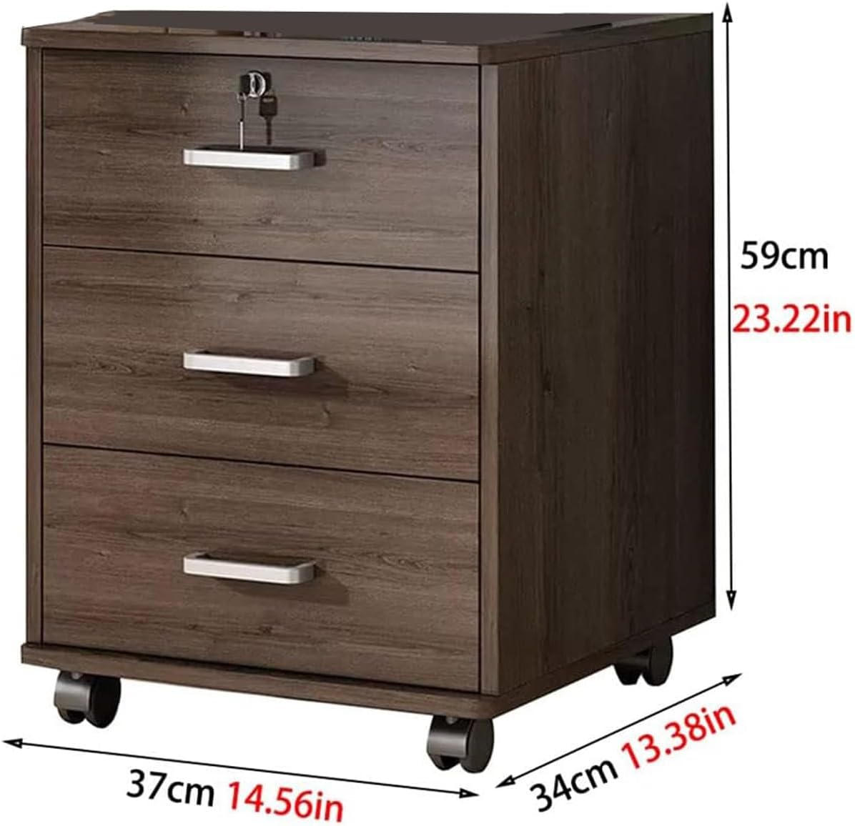 Robusta struttura del pannello a densità: realizzato con pannello a densità di alta qualità, questo schedario combina resistenza con un aspetto elegante e moderno, garantendo un utilizzo duraturo in qualsiasi ambiente di ufficio domestico. Cassetti con chiusura di sicurezza: include tre cassetti con chiusura a chiave, ciascuno con una capacità di carico di 44 libbre, che forniscono uno spazio sicuro e organizzato per riporre documenti importanti e oggetti personali Capacità per carichi pesanti: con una capacità di carico totale di 330 libbre, questo armadio è progettato per supportare un peso significativo, rendendolo adatto per riporre file pesanti e forniture per ufficio Mobilità migliorata: dotato di quattro ruote frenanti universali, l'armadio offre una mobilità fluida e può essere facilmente spostato o bloccato in posizione, fornendo flessibilità e stabilità nel tuo spazio di lavoro Compatto e funzionale: misurazione 37 cm (L) x 34 cm (L) x 59 cm (A), questo mobile compatto scivola facilmente sotto la maggior parte delle scrivanie, ottimizzando lo spazio di lavoro e fornendo ampio spazio di archiviazione.