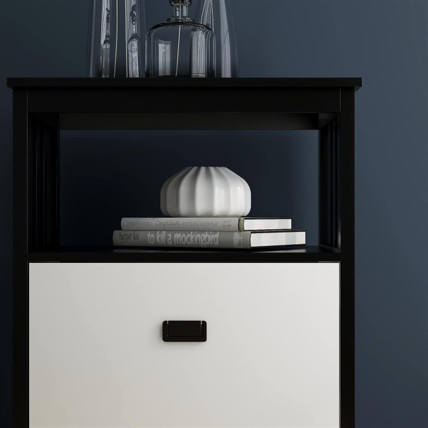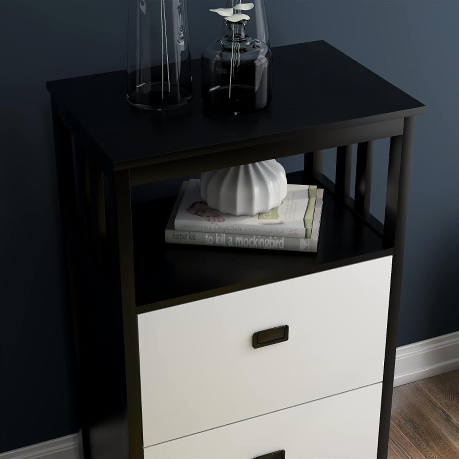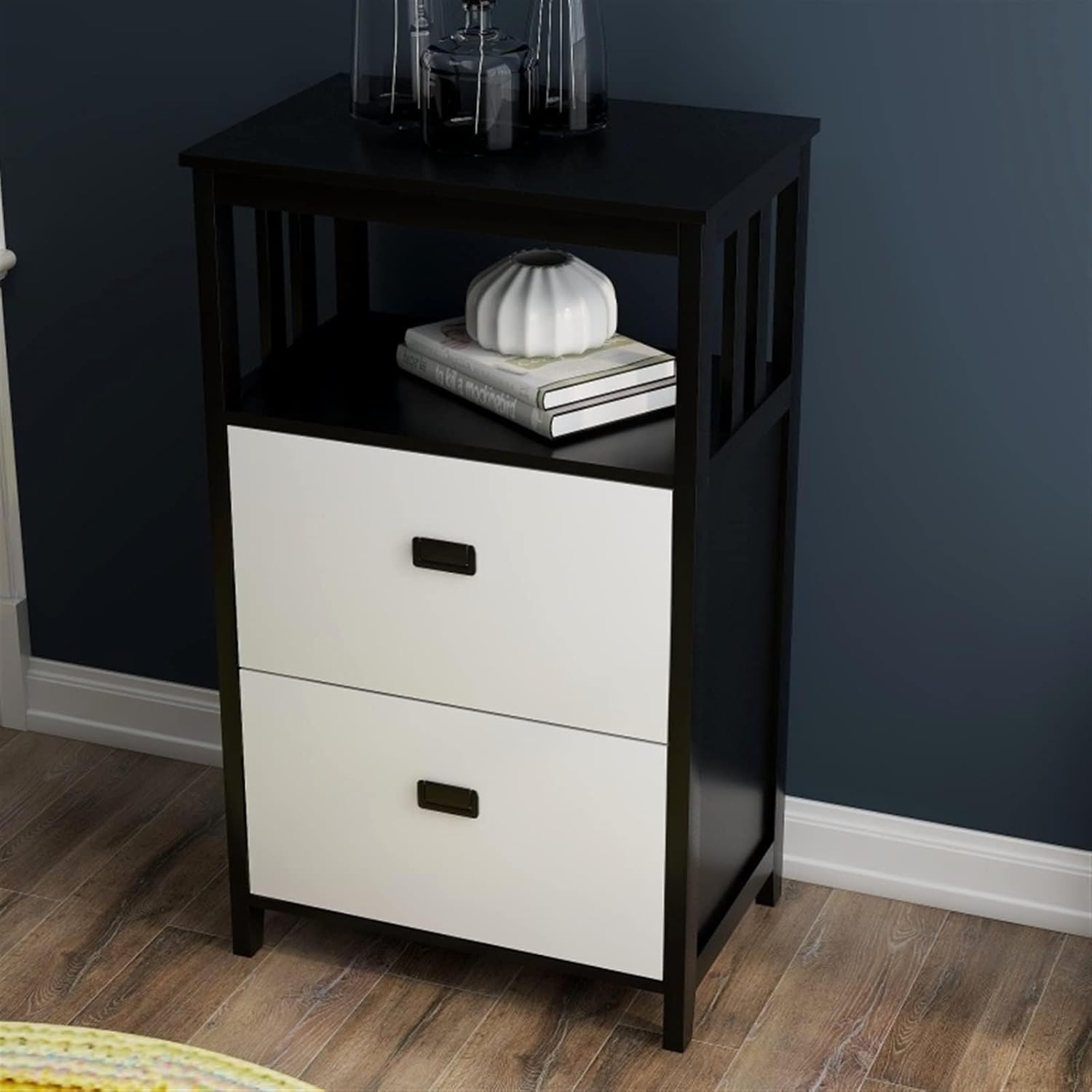 Portaoggetti a due cassetti: include due cassetti per l'archiviazione verticale organizzata, ideali per ordinare documenti e forniture per ufficio Ripiani aperti: include ripiani aperti per ulteriore spazio di archiviazione o spazio espositivo, offrendo versatilità e facile accesso agli oggetti usati di frequente Costruzione di qualità: Realizzato in MDF di grado E1 con finitura verniciata UV, garantisce durata e un look elegante e moderno che si abbina a qualsiasi arredamento per ufficio o casa Opzioni di colore: Disponibile nei classici bianco e nero, consente di scegliere il colore che meglio si adatta al design degli interni Assemblaggio richiesto: L'assemblaggio richiede circa 120 minuti. Tutte le parti e le istruzioni sono incluse per un semplice processo di installazione