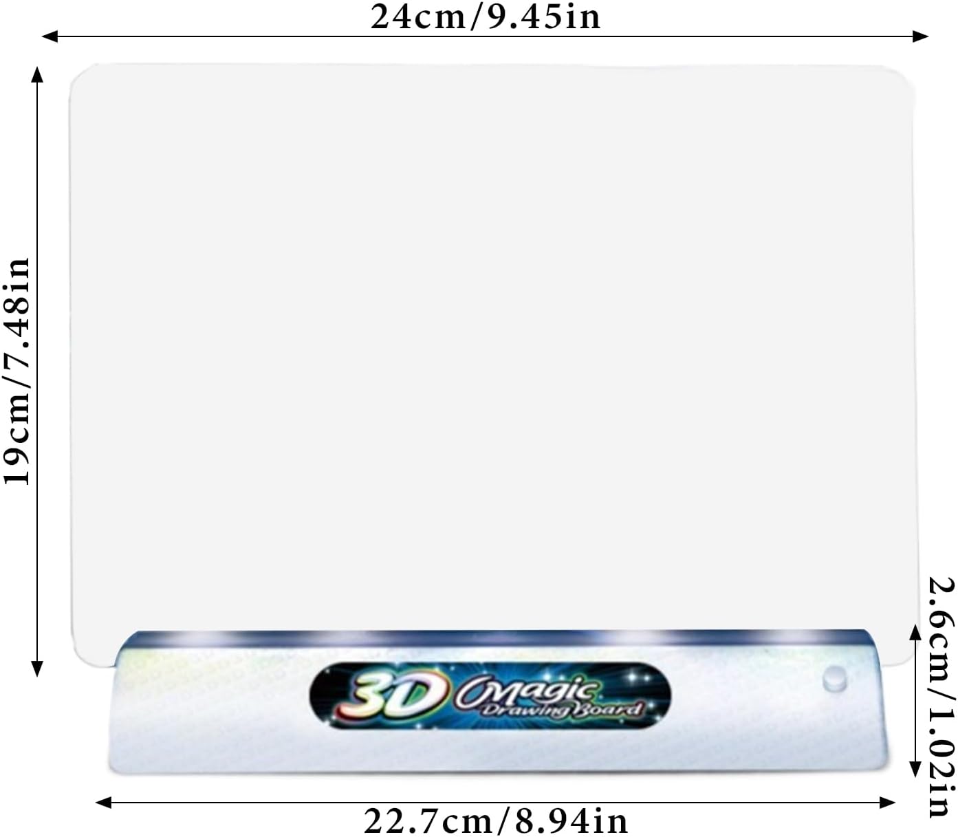 Sviluppare abilità creative: con il tampone di disegno a LED, gli utenti possono sviluppare ulteriormente il coordinamento degli occhi, la creatività e la capacità della mano. per aumentare i livelli di abilità e l'espressione artistica sia nei bambini che negli adulti Conveniente da trasportare: e leggero, questo tampone da disegno a LED non occupa spazio, adattando facilmente in una borsa, rendendo facile da trasportare ovunque la creatività colpisca Hyd to Clean: il pad di disegno a LED è costruito con un design appositamente rivestito, consentendo una pulizia senza sforzo. Basta pulire e risparmiare e fatica preziosi nel mantenere la pad di disegno Ampie applicazioni: il nostro pad di disegno a LED illumina l'apprendimento, rendendolo per la scrittura, l'ortografia, il disegno e il conteggio. Ampiamente applicabile nelle aule e nelle case, migliora l'espressione artistica e l'impegno per gli studenti di tutte le età Effetto fluorescente: aumenta la tua creatività con il pad di disegno a LED che utilizza una tecnologia fluorescente avanzata per emettere luce colorata al buio, producendo incredibili effetti visivi. per aggiungere un ulteriore livello di eccitazione alle tue opere d'arte e alle attività divertenti