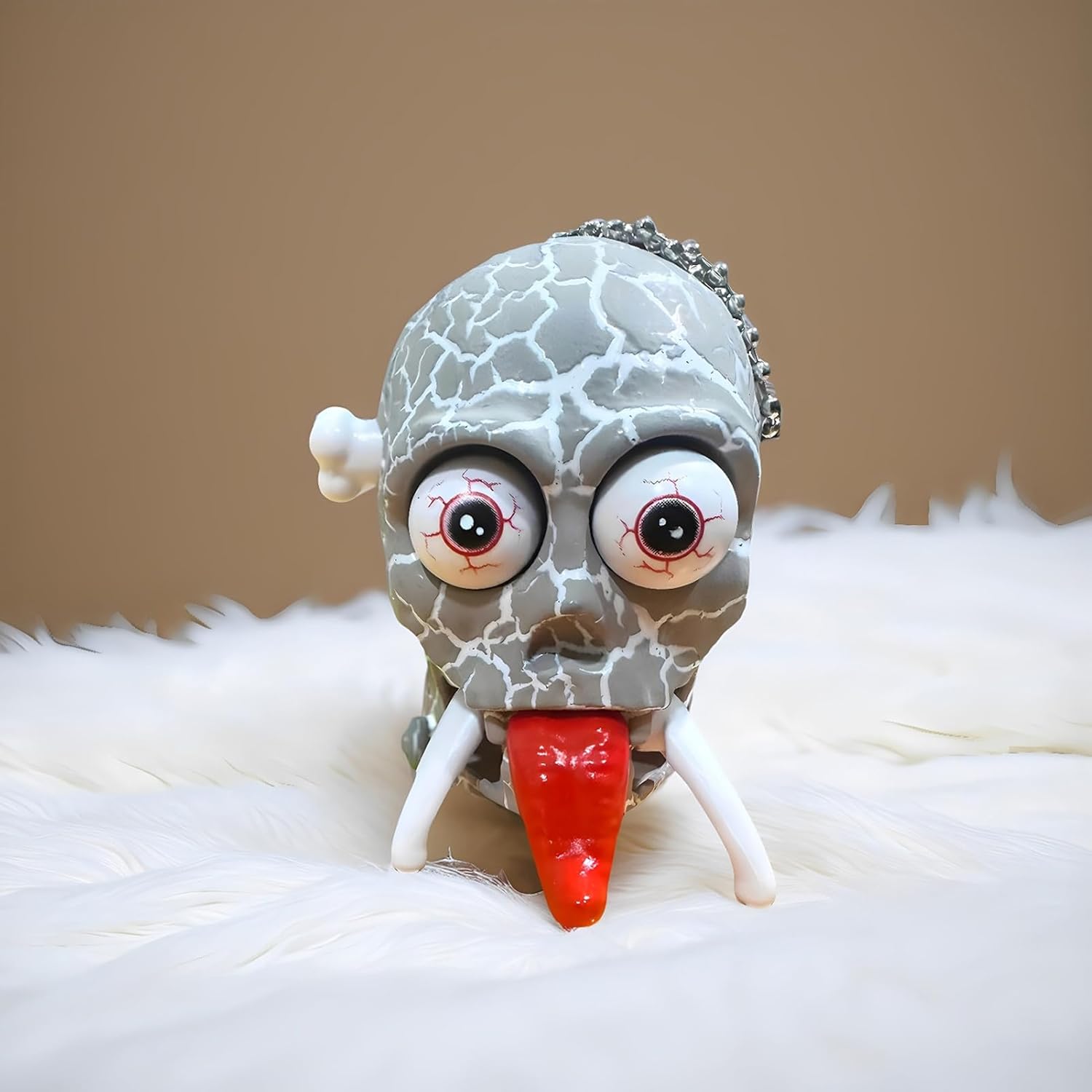 Multifunzionalità Pratica:come accessorio per zaini, elemento decorativo da scrivania o per portachiavi, offre versatilità giocosa in diversi ambienti mantenendo un'atmosfera vivace ovunque venga posizionato. Intrattenimento Scherzoso: Scheletrino carica per scherzi: cammina in modo buffo quando caricato. Il movimento unico e l'appeal spensierato catturano bambini e adulti con divertimento coinvolgente. Materiale Eccellente: Realizzato con materiali robusti, il modello scheletro a carica mantiene forma e resiste all'usura quotidiana per un utilizzo prolungato nel Design Angosciante: Combinazione di teschio autentico e lingua inquietante per atmosfere horror. Ideale per Halloween e collezionisti di oggetti misteriosi, crea un effetto agghiacciante. Per Feste: Giocattolo a molla a forma di scheletro per feste e riunioni, aggiunge divertimento ed entusiasmo alle celebrazioni, regalo unico che porta allegria a familiari e amici con la sua simpatica danza meccanica