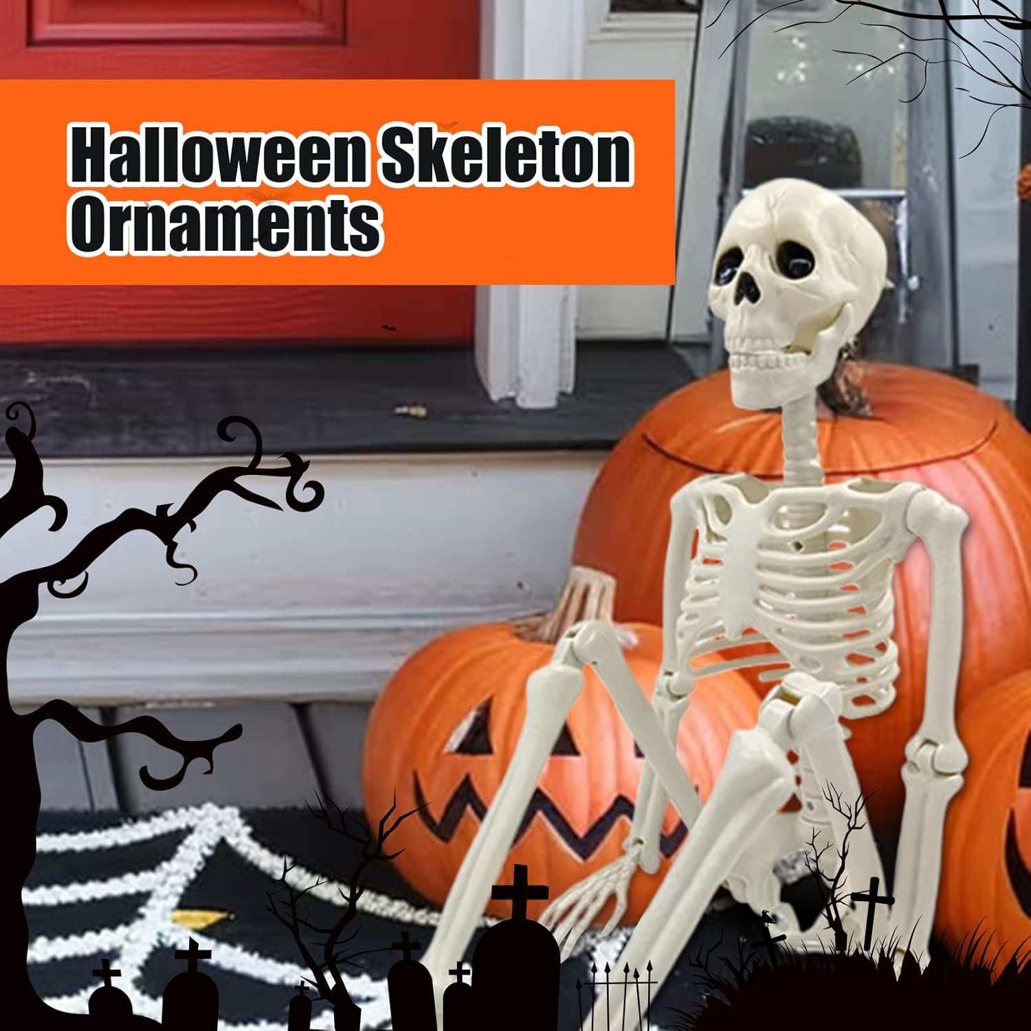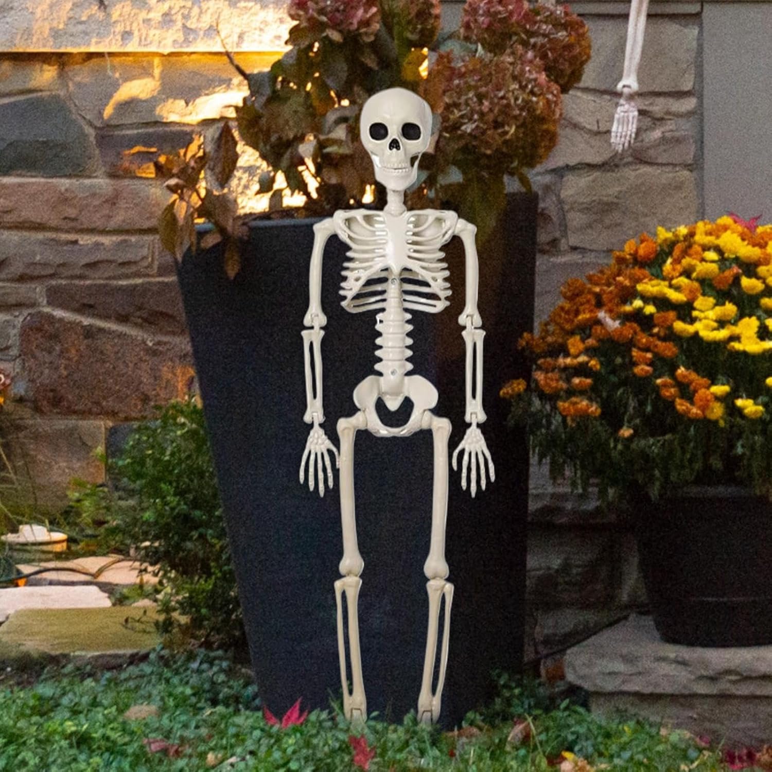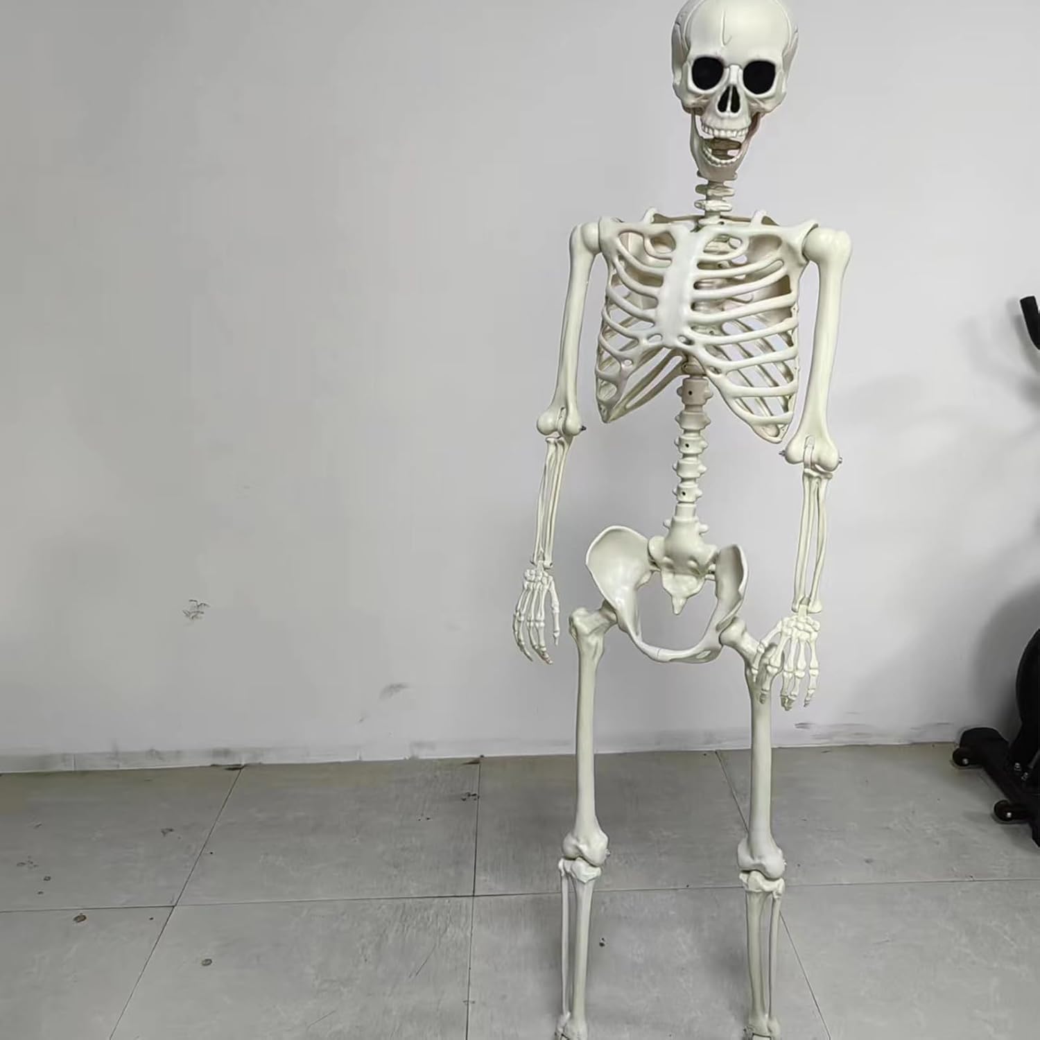 Design creativo delle scene: supporta la personalizzazione dello stile della stanza e l'uso multiplo, perfettamente compatibile con set cinematografici, arrangiamenti fotografici e vetrine di vendita al dettaglio Miglioratore dell'atmosfera: trasforma mostre spettrali con questo scheletro. La silhouette scura si fonde perfettamente con la riproduzione realistica. Combinabile in modo ottimale con altri elementi decorativi per effetti doccia intensi. Garanzia di longevità: combina la durabilità del materiale del composito con la stabilità ambientale per una resistenza strutturale duratura per anni senza compromettere il comfort o la durata. Dettagli ossei realistici: la combinazione di intaglio preciso e precisione anatomica consente di ottenere un aspetto scheletrico altamente dettagliato, arricchendo l'orrore con un realismo senza pari. 4. Libertà di movimento: attraverso una libertà di movimento mirata, lo scheletro consente la regolazione dinamica della posa per allestimenti versatili e spettrali ad Halloween o eventi a tema