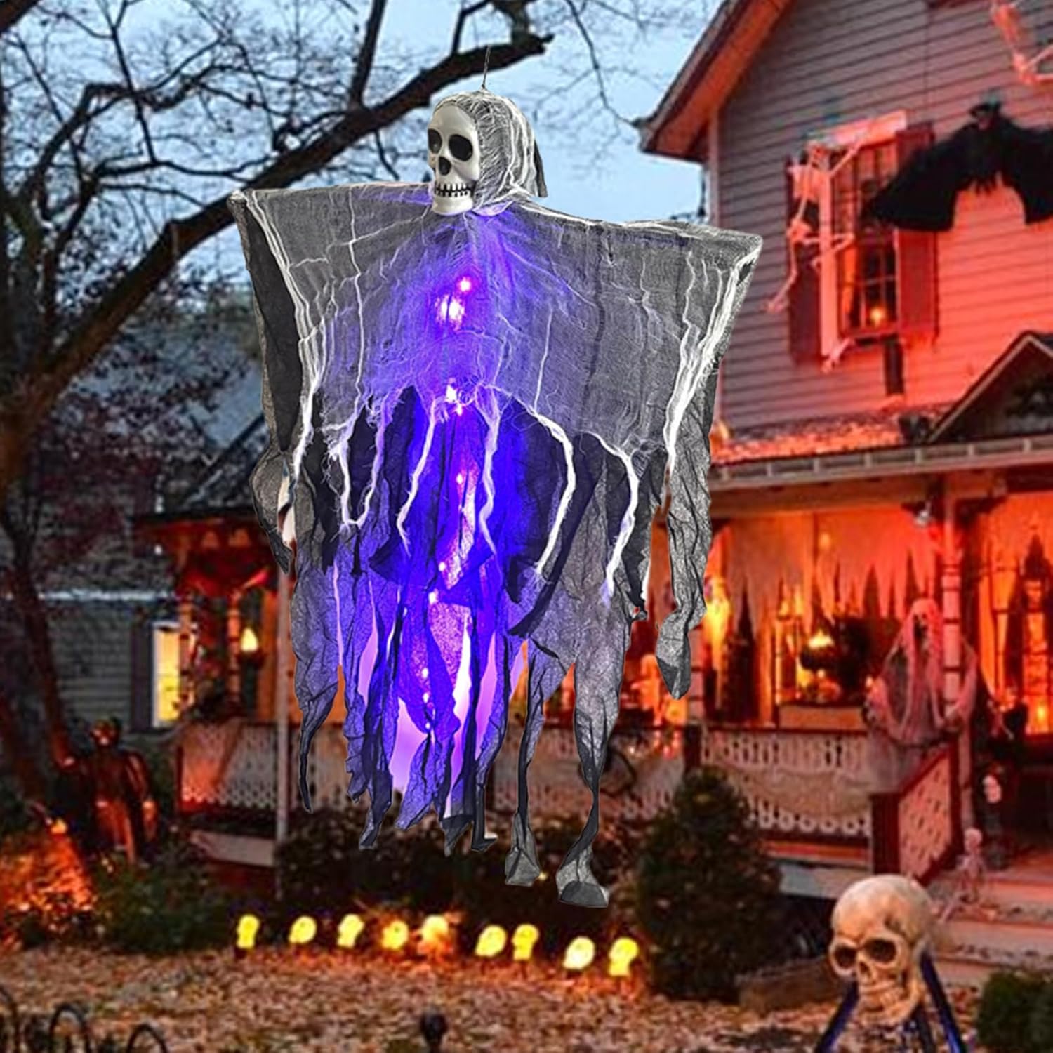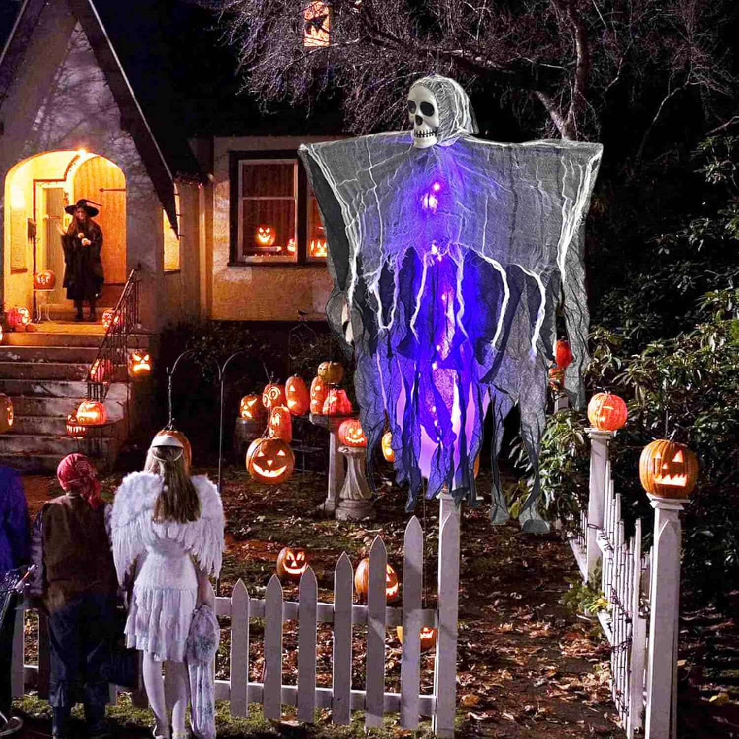 Instradamento dei cavi ottimizzato: facile da installare con sistema di sospensione regolabile per ringhiere, alberi e muri. Il collegamento di alimentazione invisibile garantisce una gestione ordinata dei cavi durante il funzionamento. Effetti di luce speciali: la funzione di sfarfallio simula il movimento spettrale, dona una profondità inquietante con effetti di luce dinamici e impressiona con un eccellente design di illuminazione multistrato per la decorazione di Halloween. Effetto nebbia coinvolgente: Sofisticati canali d'aria mescolano la nebbia con la luce per atmosfere mistiche senza sforzo in qualsiasi decorazione di Halloween Resistenza agli agenti atmosferici: Il rivestimento speciale fornisce un'eccellente protezione dal sole e dalla pioggia, mantiene forma e luminosità durante l'uso all'aperto a lungo termine Accattivante effetto notturno: Il luminoso aspetto fluttuante con effetto di profondità 3D conferisce alla tua casa un aspetto mistico. Particolarmente efficace per decorazioni esterne ed interne.