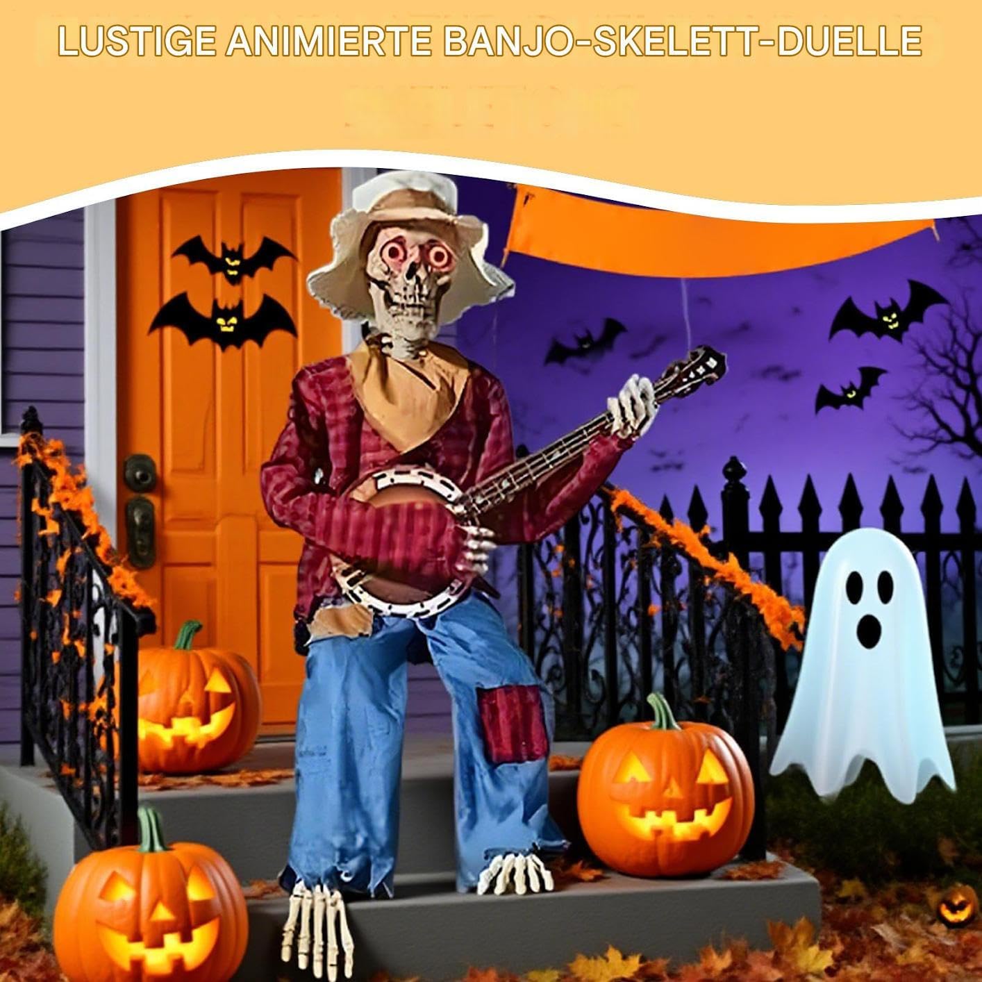 Giunti regolabili: grazie alle sue pratiche articolazioni, questo scheletro di Halloween ti consente di regolare facilmente qualsiasi postura per creare annunci visivamente attraenti e scenari inventivi che cattureranno il tuo pubblico durante gli eventi tematici Multiuso: una notevole sala centrale per le celebrazioni di Halloween, che viene anche utilizzata come accessorio perfetto per la casa infestata per creare ricordi stagionali sostenibili e migliorare la decorazione del piatto o del piatto durante gli eventi tematici. Questi elementi decorativi aggiungono un'atmosfera misteriosa. Festa: approfitta dell'atmosfera autunnale grazie a questo scheletro dal fascino rustico e offre opzioni decorative versatili per verande, fienili e set per festival stagionali. Musica festiva: dotata di melodie giocose e movimenti animati, questa decorazione scheletrica mette in risalto gli occhi luminosi e un incantesimo del raccolto che completa il tema autunnale con una notevole attrazione visiva Design creativo: offri uno spettacolo affascinante con movimenti realistici della testa e delle mani, perfetto per rappresentazioni dinamiche di duello per il banjo che incantano il pubblico e aggiungono fascino a qualsiasi ambiente progettato per memorabili mostre interattive e intrattenimento unico