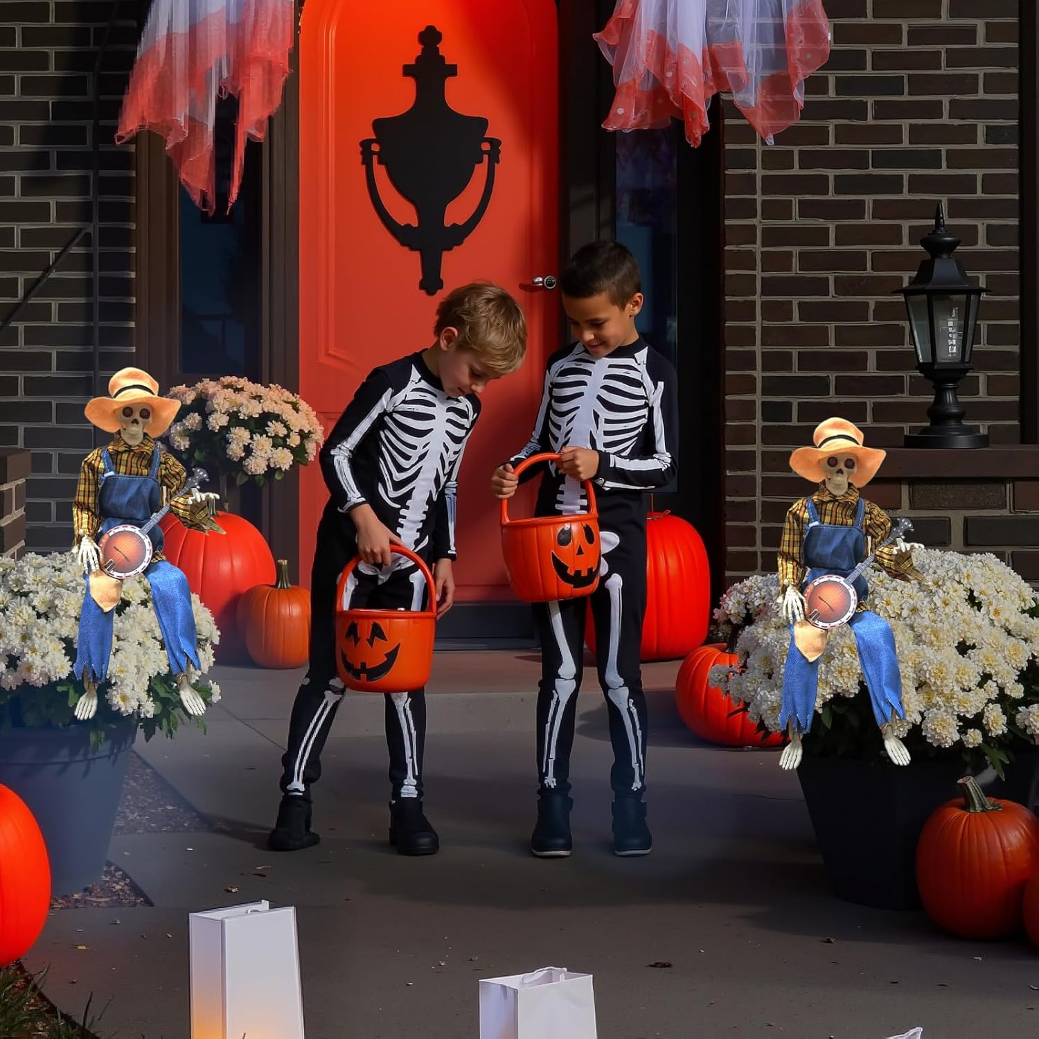 Suoni festivi rivitalizzanti: melodie festive con divertenti effetti sonori consentono un'interazione musicale divertente, creano un'atmosfera di festa coinvolgente per feste indimenticabili Regalo perfetto: questa decorazione a scheletro arricchisce le feste di famiglia e diffonde facilmente l'atmosfera festiva come regalo significativo per amici e parenti durante le festività Funzione musicale: questo scheletro musicale mobile attira l'attenzione sugli eventi. Ideale per feste di famiglia dove i bambini amano l'animazione vivace e contribuisce dinamicamente all'atmosfera festiva. Atmosfera festosa: combina musica e movimento per il Ringraziamento e le decorazioni di Halloween, arricchisce le decorazioni autunnali e si armonizza con il fienile o la casa durante le feste stagionali. Posizionamento dinamico: il design articolato con collegamenti regolabili per posizioni mobili o dormienti consente il posizionamento flessibile in scene divertenti o decorazioni creative.