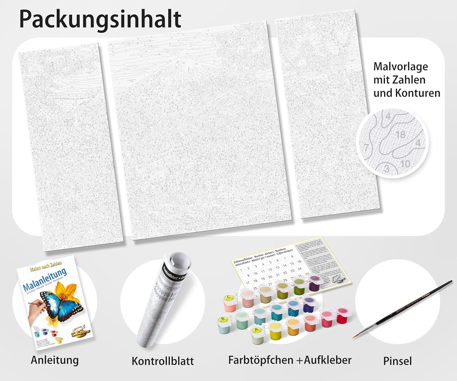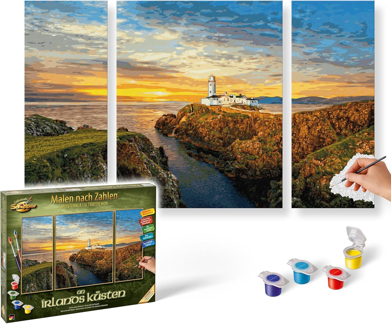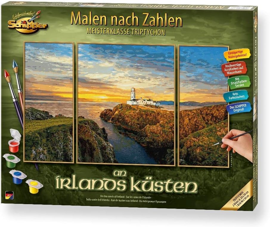 Fantastico modello: con la pagina da colorare Schipper per adulti, ogni pittore amatoriale e principiante ottiene un'opera d'arte sulla tela, che funziona senza alcuna conoscenza preliminare del tema della pittura Dipinto – Portate questo splendido motivo nel vostro salotto. I fantastici colori garantiscono una piacevole atmosfera nelle vostre quattro pareti Effetto olio su tela: la tela finemente prestampata ha una struttura in lino visibile e visibile. Ciò evidenzia ancora una volta il carattere autodipinto dell'immagine dopo il completamento Set completo - La confezione include 36 colori acrilici a base d'acqua, un pennello da pittura, istruzioni (lingua italiana non garantita), un modello e 3 tele: 1 schermo medio: 50 x 40 cm, 2 immagini pagine: 50 x 20 cm Produttore tedesco: Schipper offre un'ampia scelta di motivi per adulti e bambini. La qualità viene portata al livello successivo e la tecnica della pittura è quasi impossibile da vedere