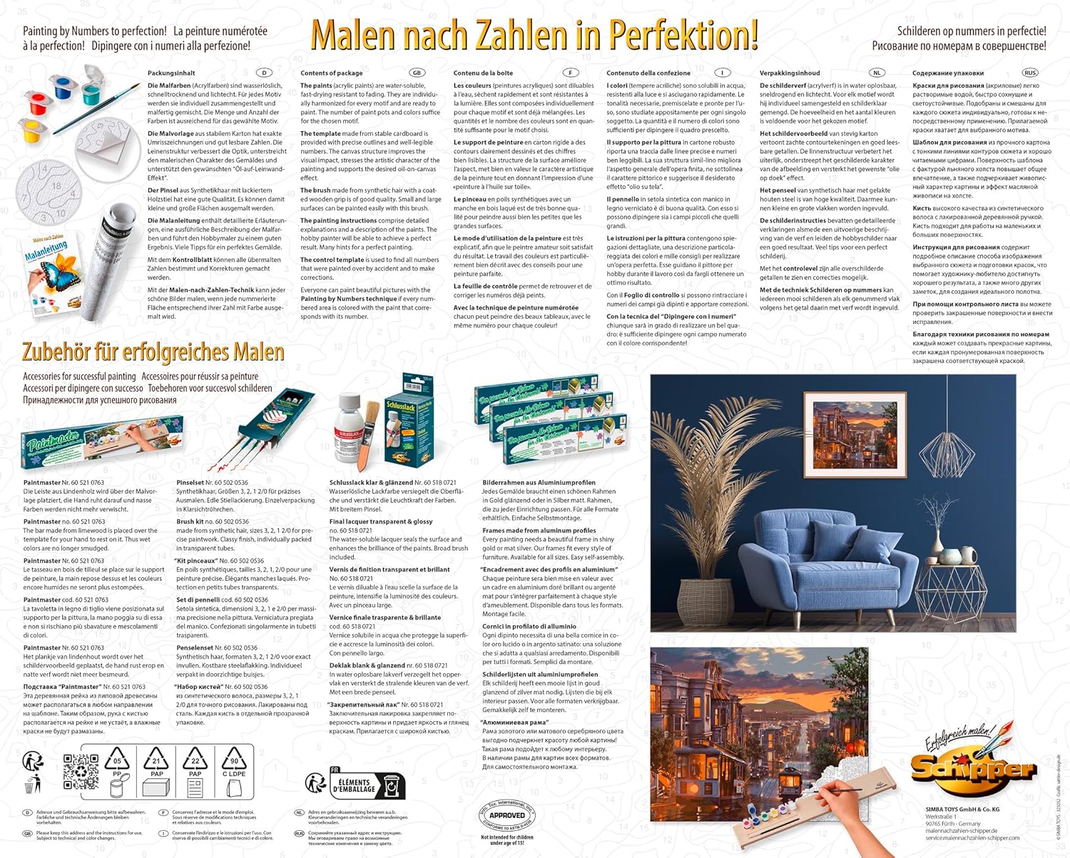 Fantastico modello: con la pagina da colorare Schipper per adulti, ogni pittore amatoriale e principiante ottiene un'opera d'arte sulla tela, che funziona senza alcuna conoscenza preliminare del tema della pittura Dipinto – Portate questo splendido motivo nel vostro salotto. I fantastici colori garantiscono una piacevole atmosfera nelle vostre quattro pareti Effetto olio su tela: la tela finemente prestampata ha una struttura in lino visibile e visibile. Ciò evidenzia ancora una volta il carattere autodipinto dell'immagine dopo il completamento Set completo – La confezione include 35 colori acrilici a base d'acqua, un pennello da pittura, un modello di istruzioni e 1 tela con le seguenti dimensioni: 40 x 50 cm Produttore tedesco: Schipper offre un'ampia scelta di motivi per adulti e bambini. La qualità viene portata al livello successivo e la tecnica della pittura è quasi impossibile da vedere
