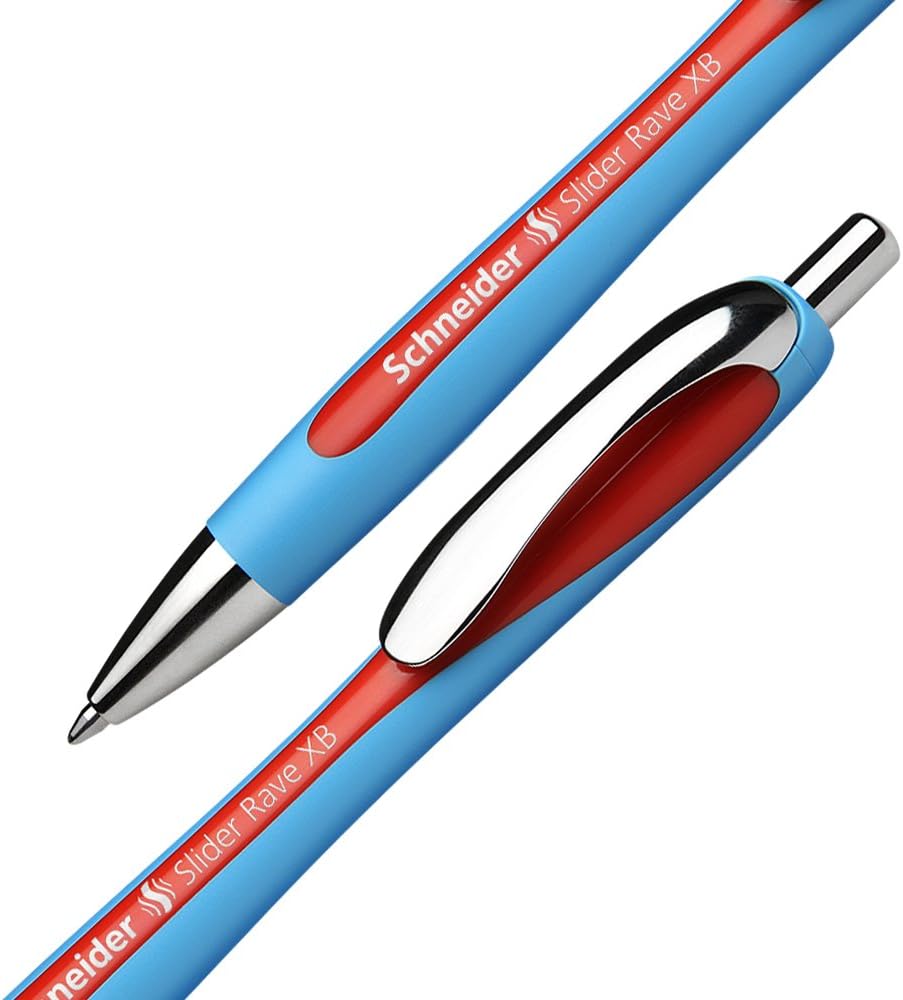 Penna a sfera con tecnologia Viscoglide per una scrittura leggera e scorrevole con spessore del tratto extralarge (XB); colore dell’inchiostro rosso Il refill gigante sostituibile Slider 755 XB con punta in acciaio inox resistente all’usura assicura un utilizzo completo della ampia riserva d’inchiostro, senza residui né sbavature; l’inchiostro si asciuga rapidamente, persino su carta liscia, e resiste anche al successivo passaggio con l’evidenziatore; grazie all’ingegnoso sistema Plug+Play Slider Rave è ricaricabile con diversi formati di refill; il fusto dalla forma ergonomica con ampio rivestimento in gomma consente una posizione di scrittura rilassata che non affatica la mano Clip in solido metallo