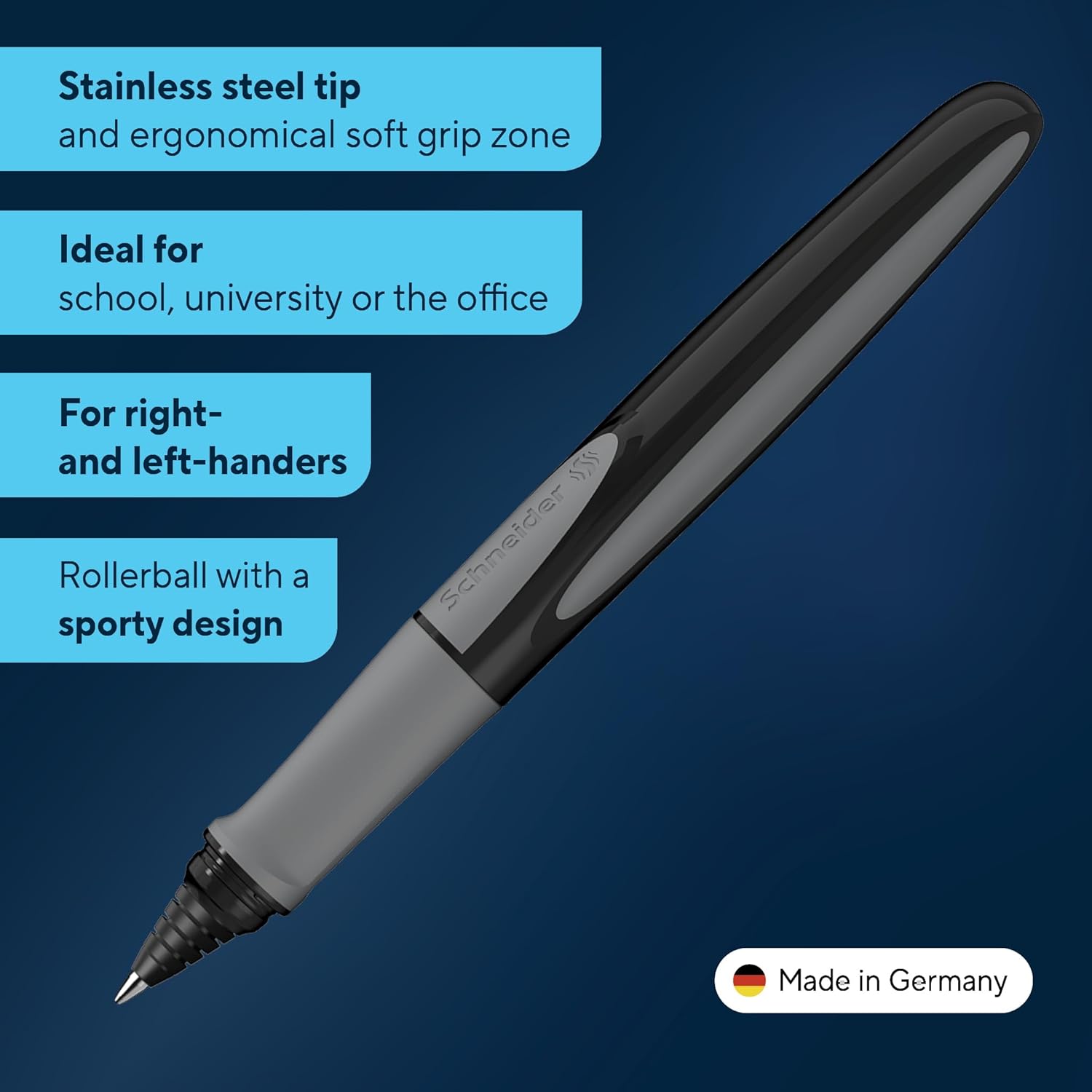 Colore celeste Impugnatura ergonomica gommata Pennino in acciaio inox con punta in iridio Cancellabile con cancellino Corry o equivalente Cartucce d'inchiostro standard blu reale