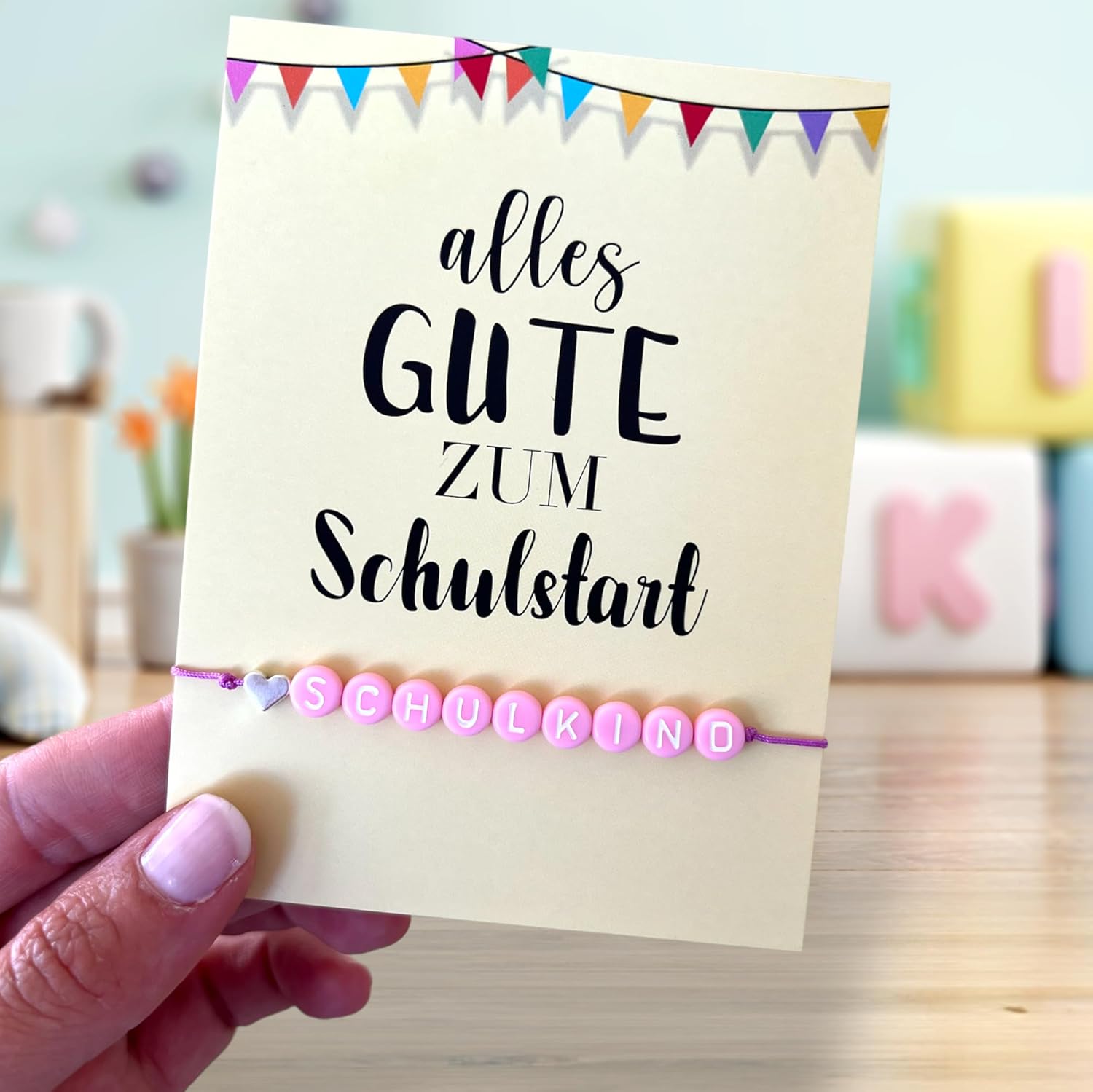 Das Armband ist ein tolles Geschenk für alle Schulkinder, die dieses Jahr in die Schule kommen. Ob in die Schultüte oder als Accessoire zum Outfit am 1. Schultag. Es ist schön gestaltet und sehr stabil. Toller Shop, Daumen hoch ????